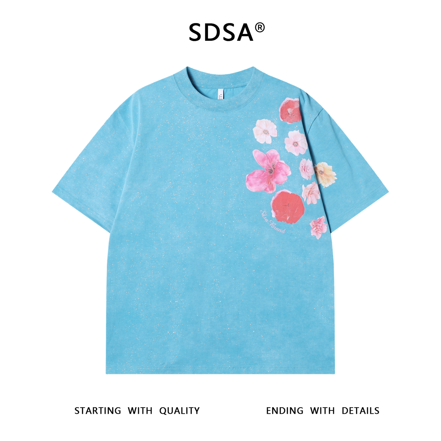 夏季高级感新款男士满天星字母花卉印花短袖T恤时尚情侣圆领上衣
