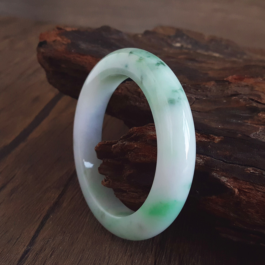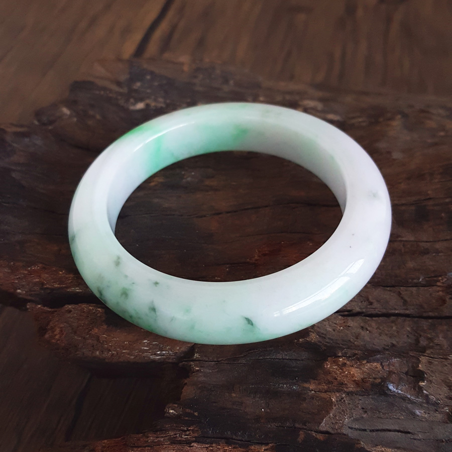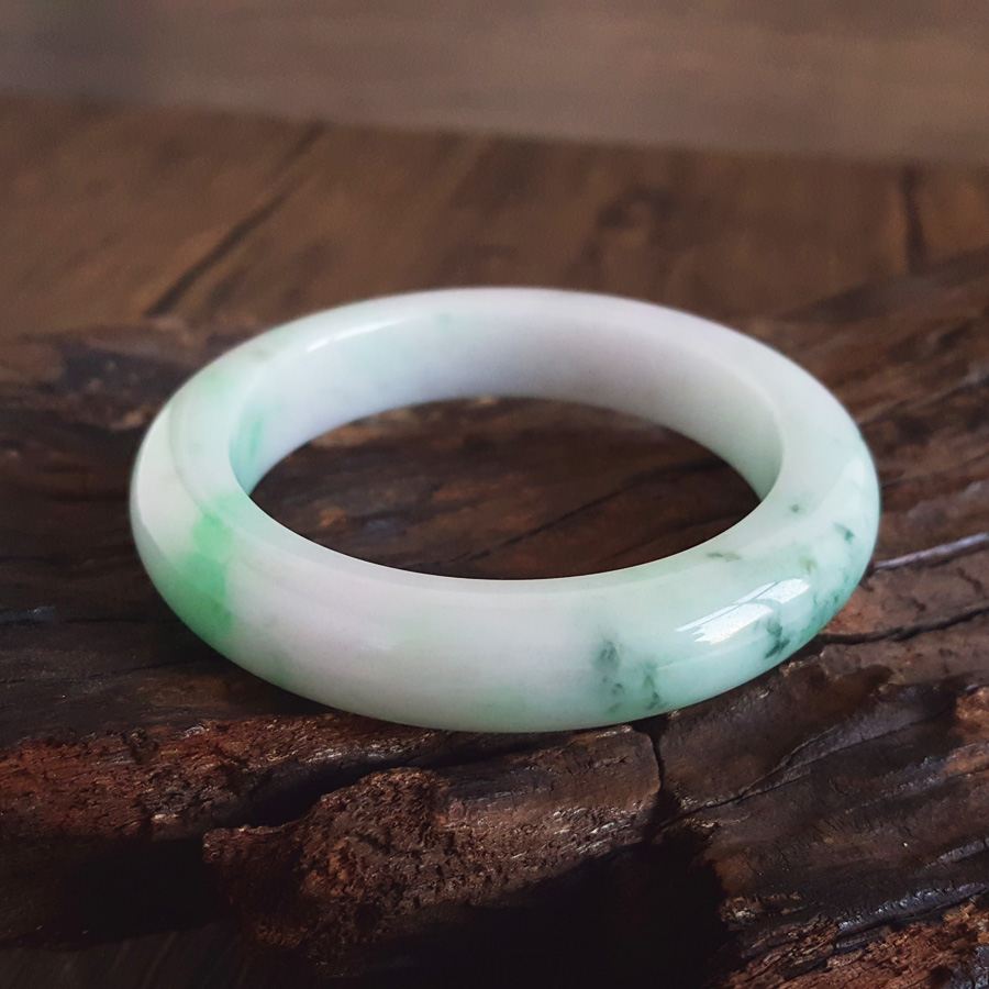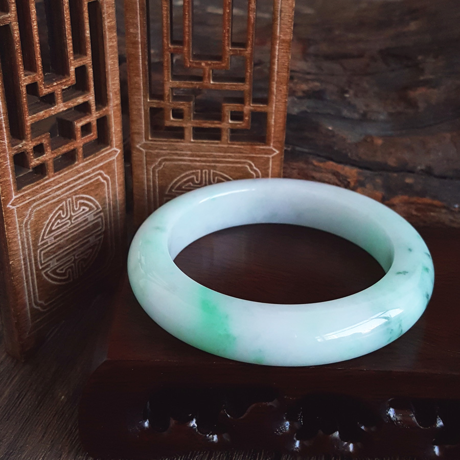 名称 | 天然精品细腻无杂裂糯种飘绿54.5号翡翠手镯 |