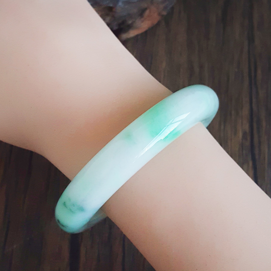 【天然正品】A货翡翠天然精品细腻无杂裂糯种飘绿54.5号翡翠手镯54.5MM女士131025JJ20