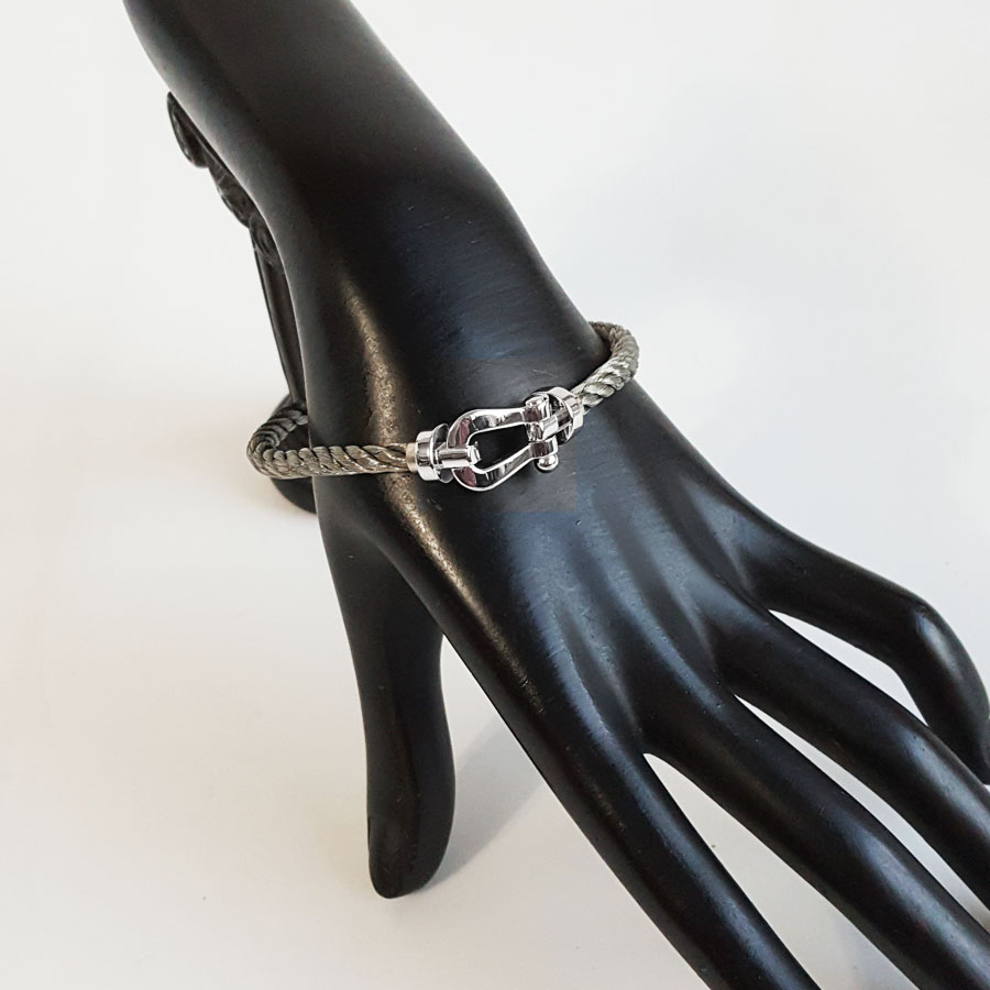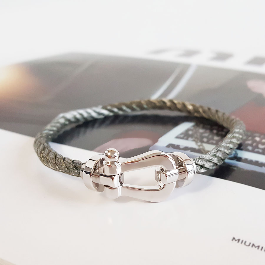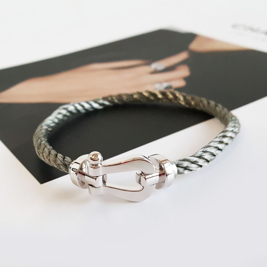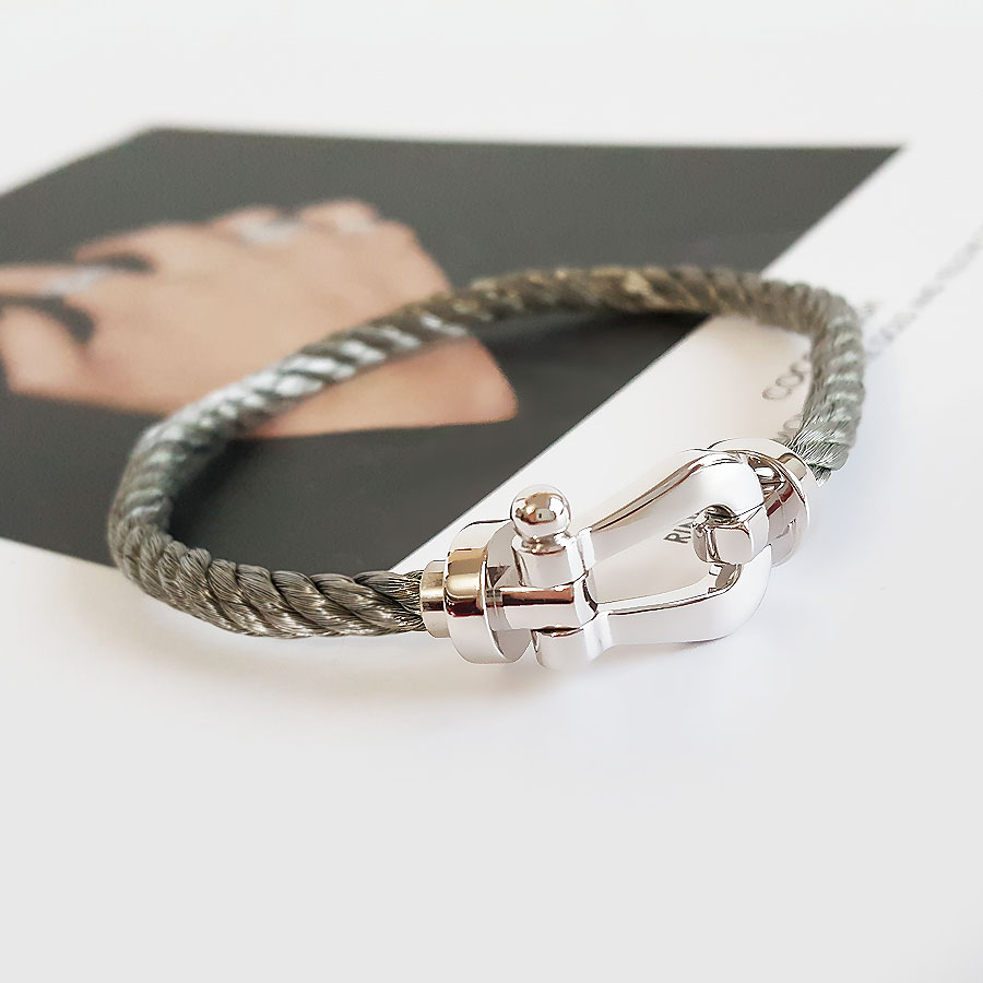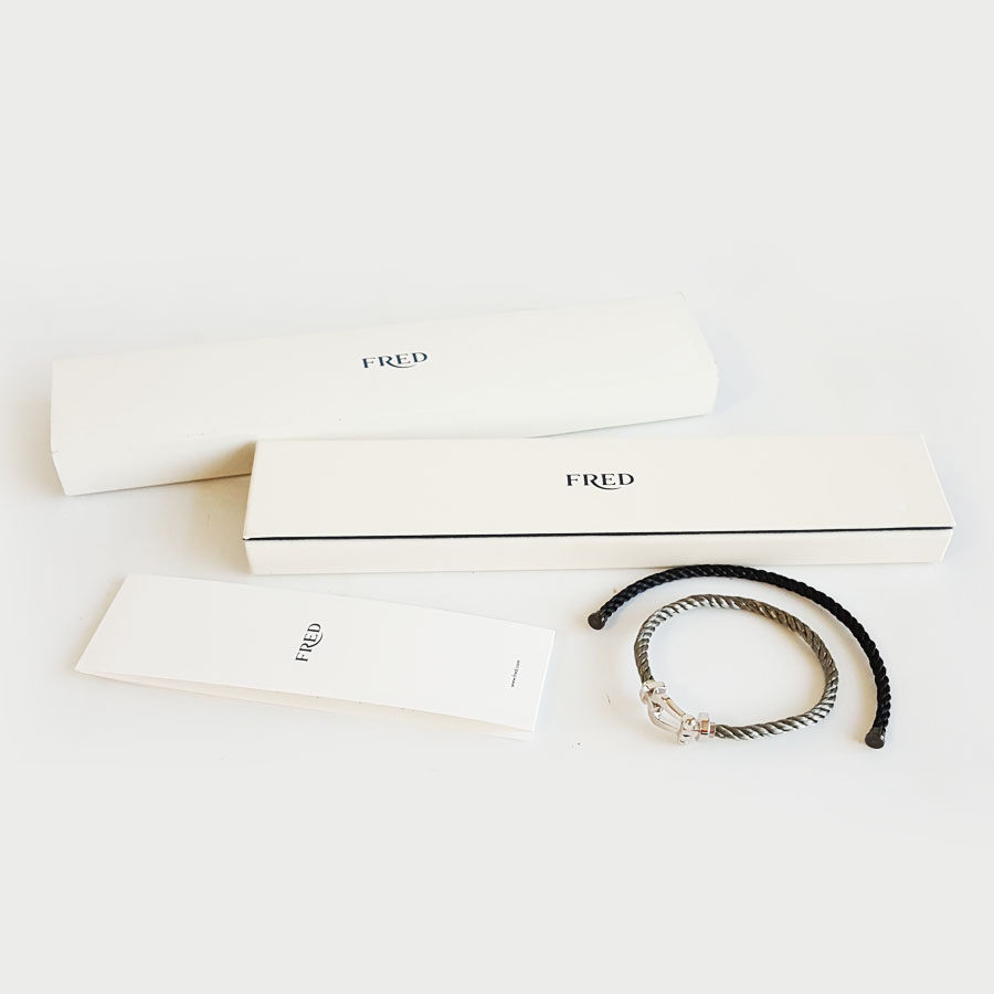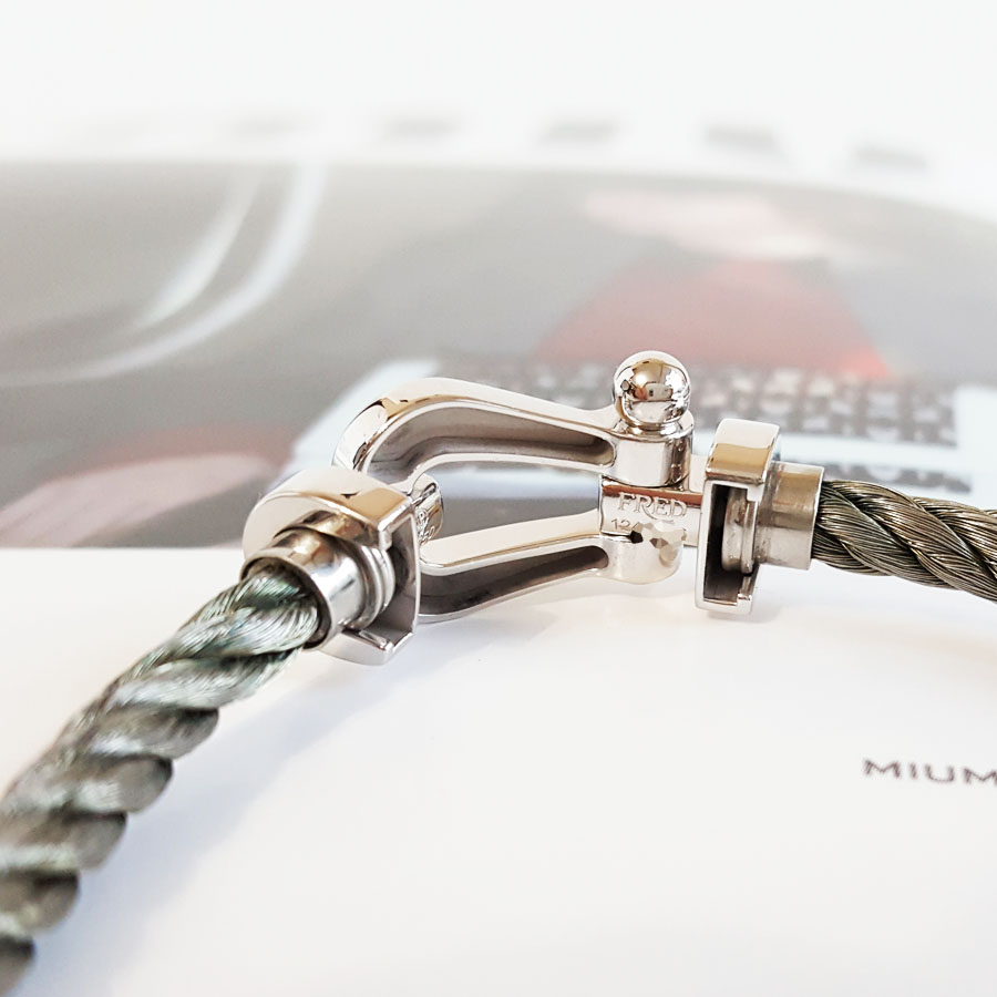 【95新】FRED斐登Force 10系列0B0005大号18K白金Force 10马蹄扣手链链扣约26*14mm。灰色链绳19号/黑色链绳17号中性款301025NJS12