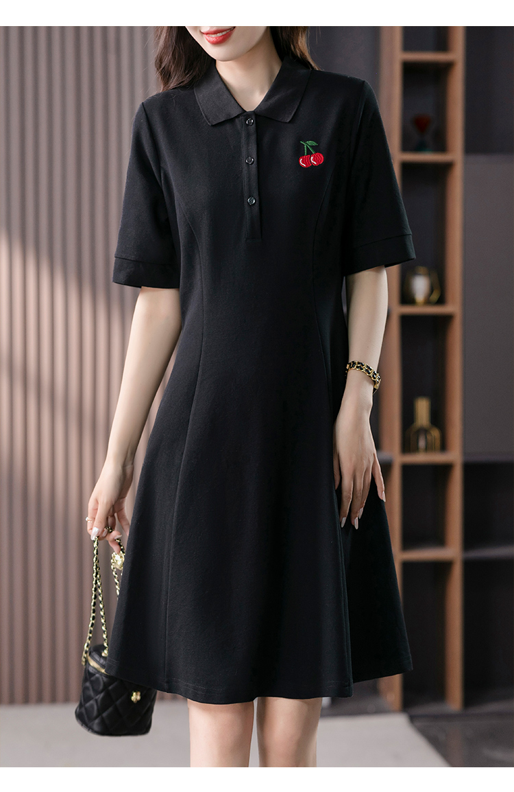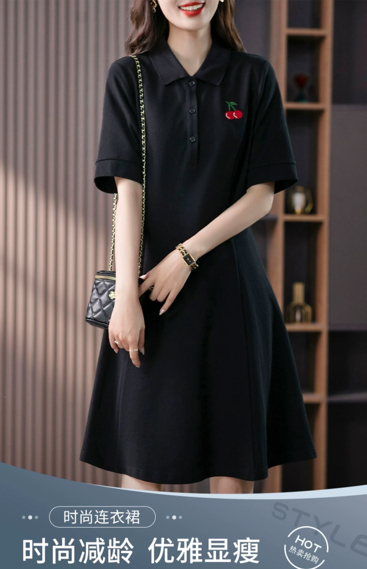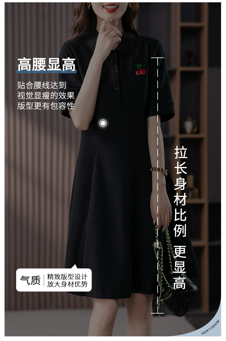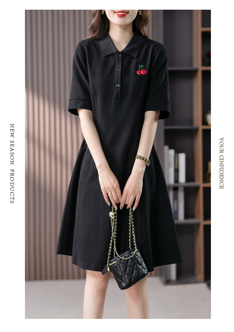 YX【现货7天】设计感刺绣减龄短袖连衣裙女2023夏季新款韩版高腰显瘦a字裙