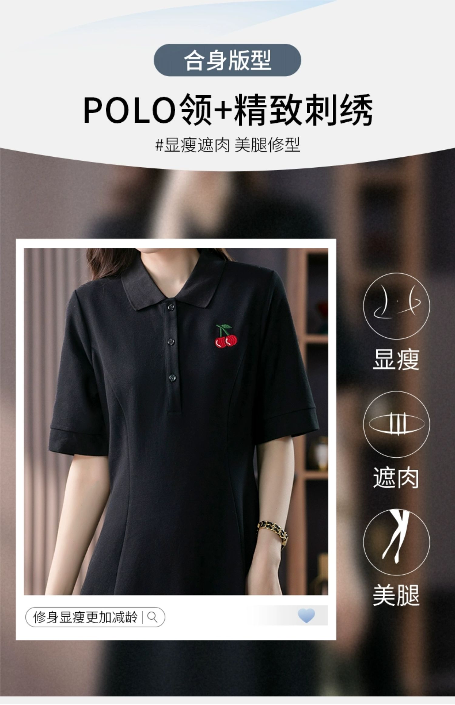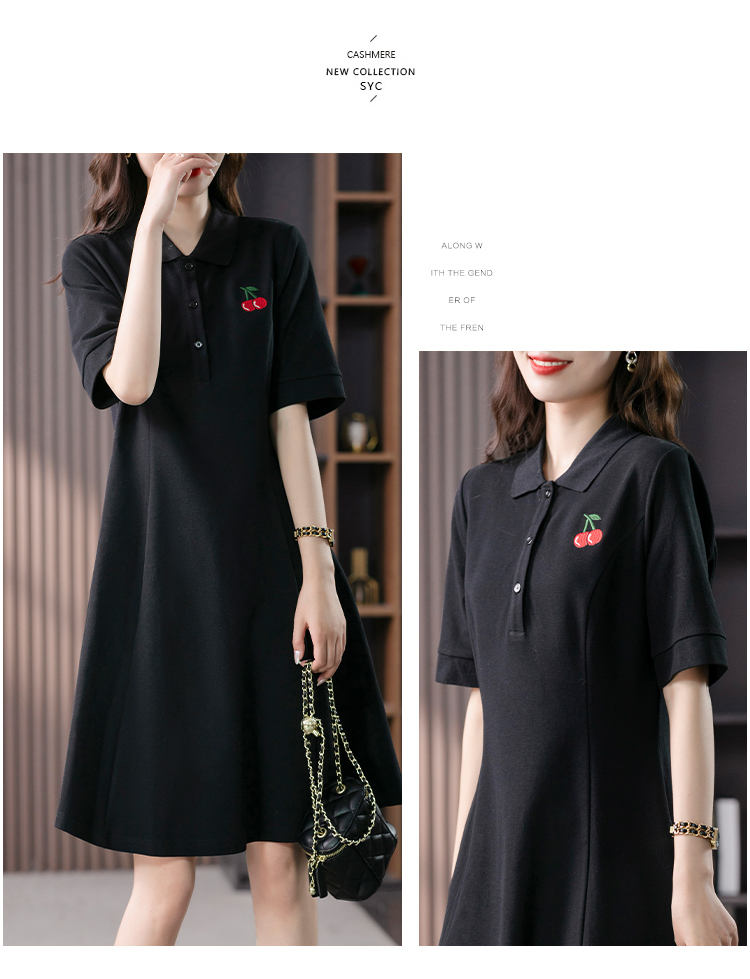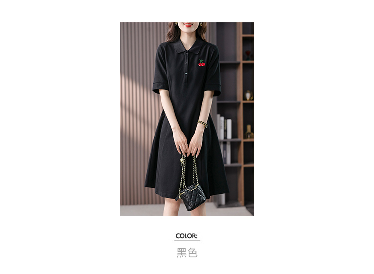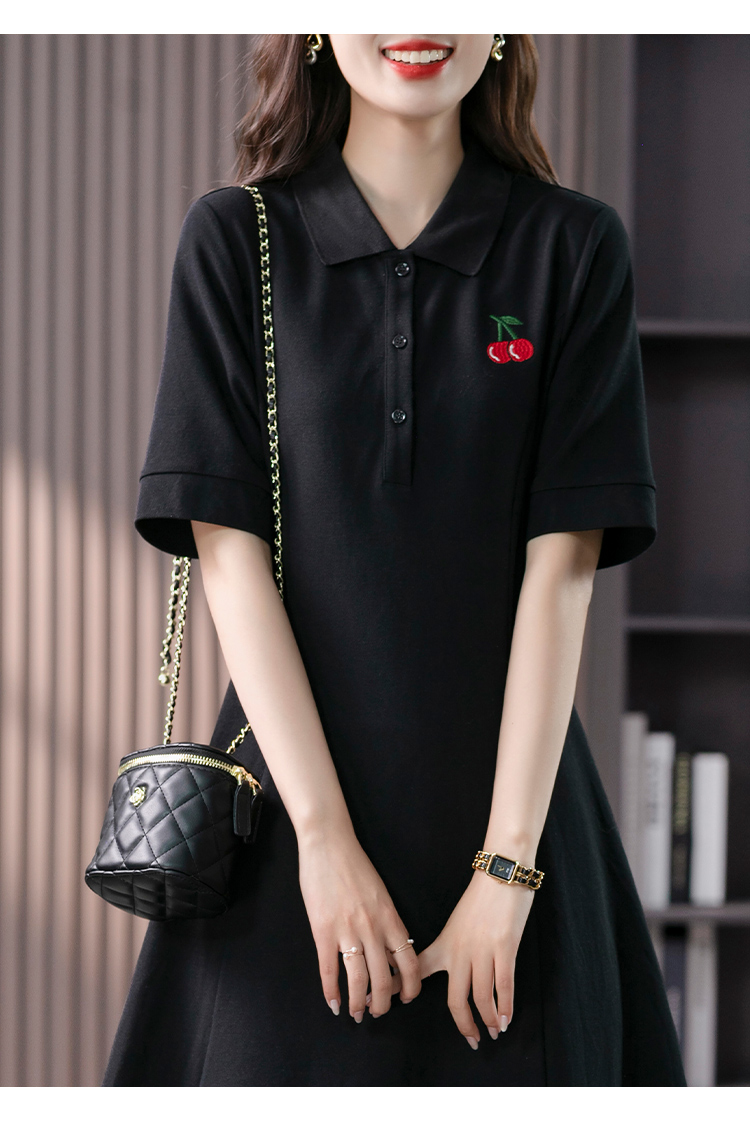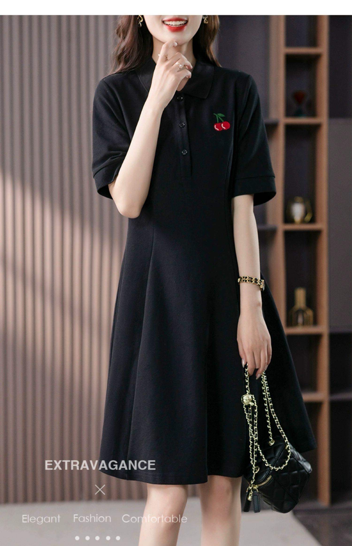 YX【现货7天】设计感刺绣减龄短袖连衣裙女2023夏季新款韩版高腰显瘦a字裙