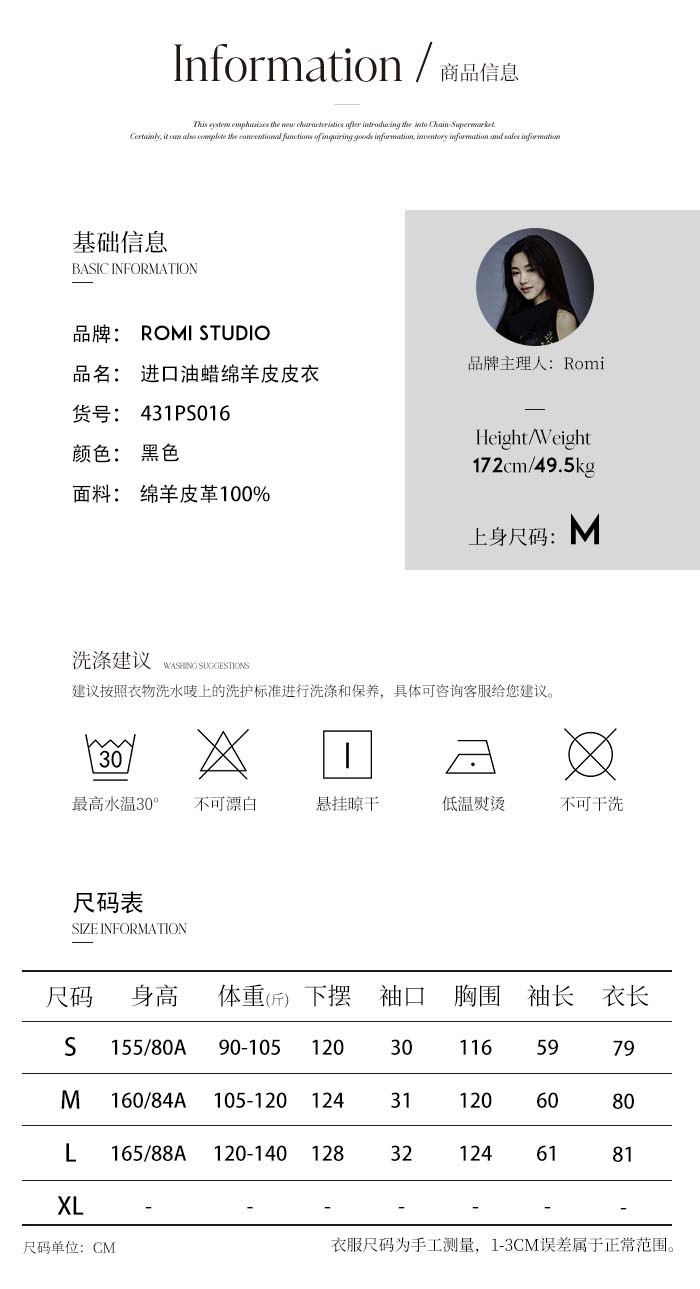 ROMI STUDIO“棕标甄选”英国轻涂油蜡绵羊皮肌理纹路皮衣 431PS016【微瑕】