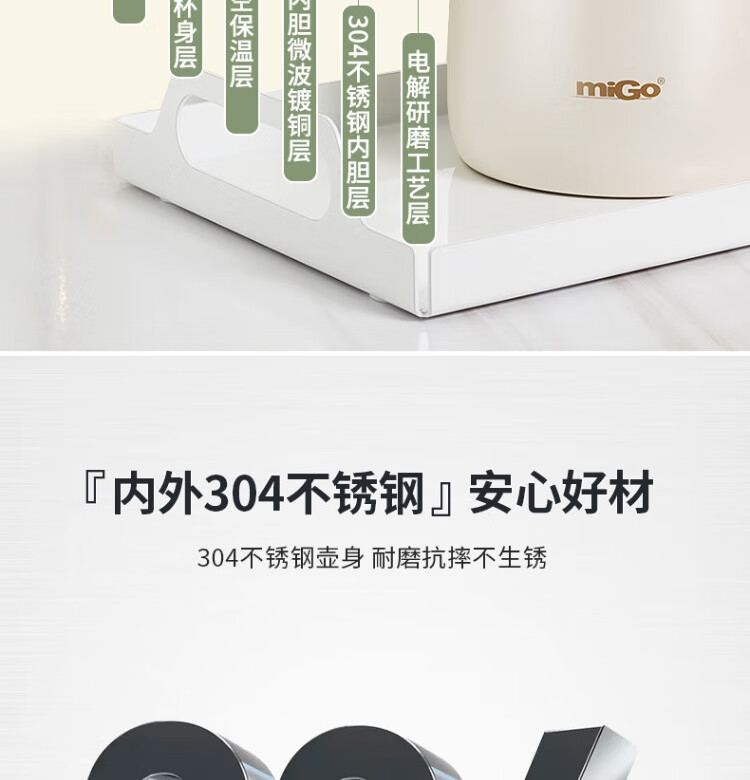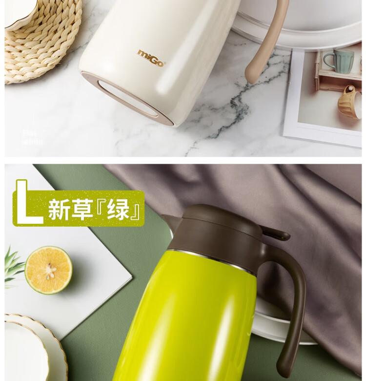 miGo 保温壶 热水瓶保温瓶暖水壶 2L星环·家居壶 新草绿S20003VH