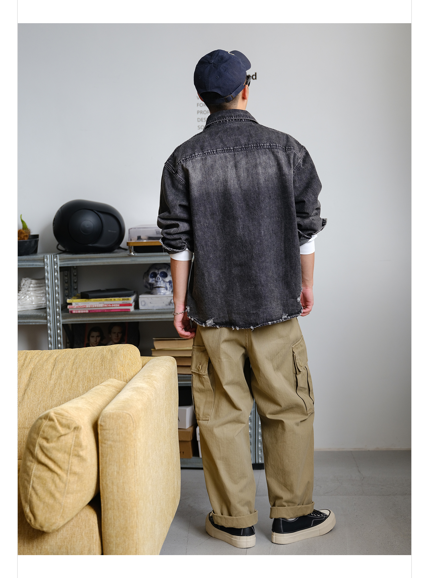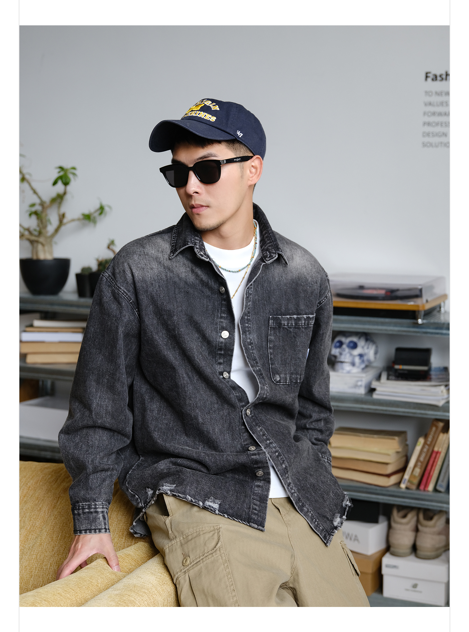 徐太浪400g做旧刮烂水洗牛仔长袖衬衫男2025新款春秋痞帅通勤衬衣