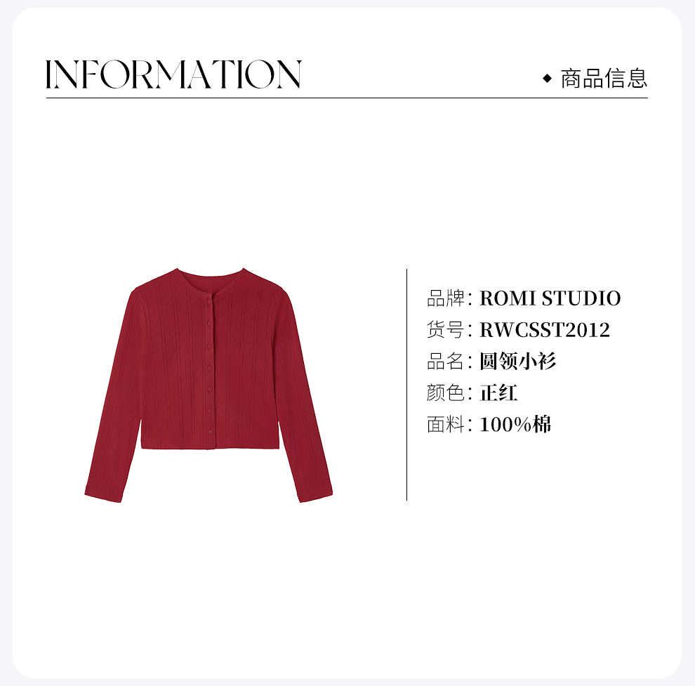 ROMI STUDIO可爱居家系列 舒适全棉多色坑条针织开衫RWCSST2012