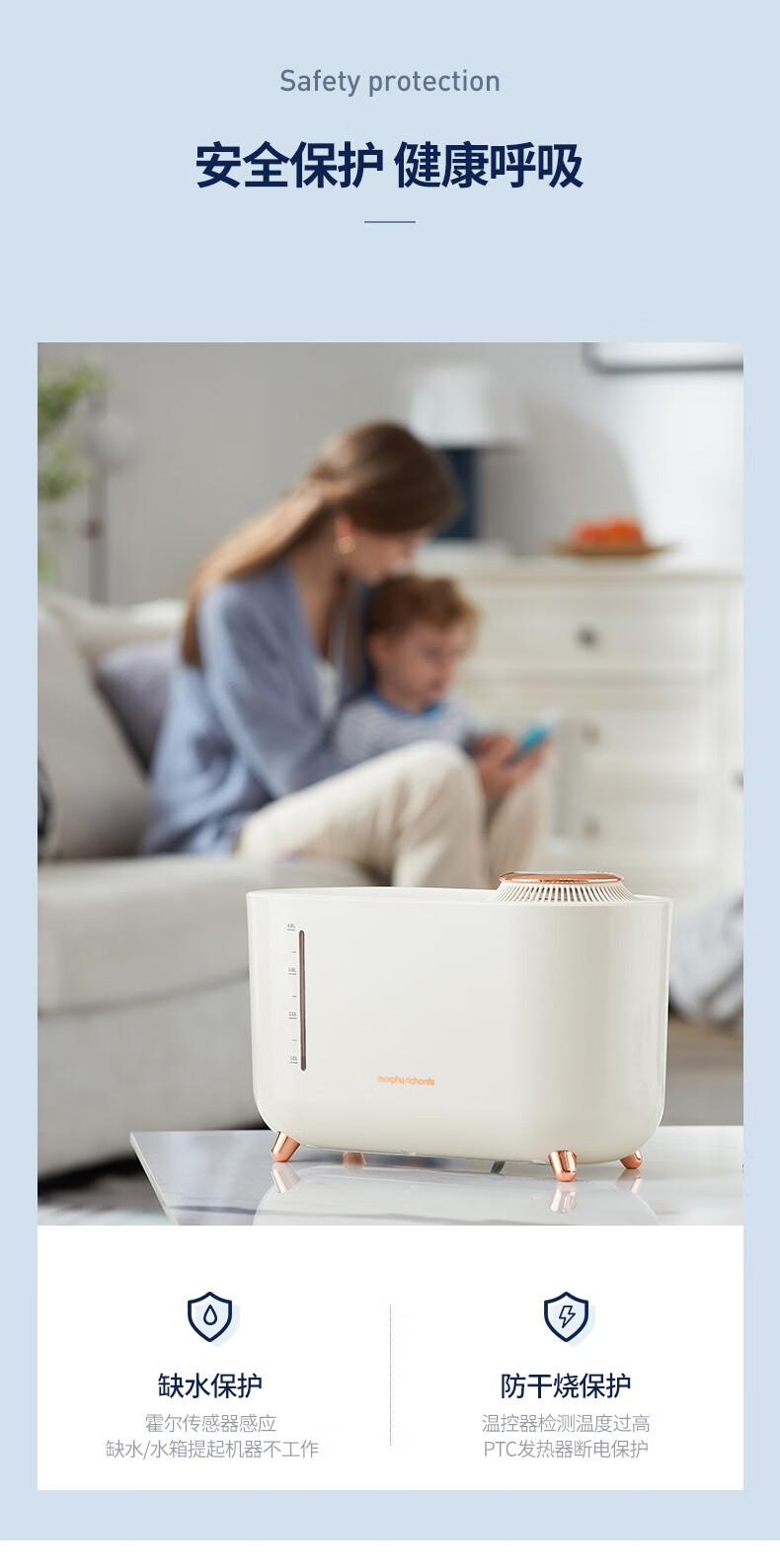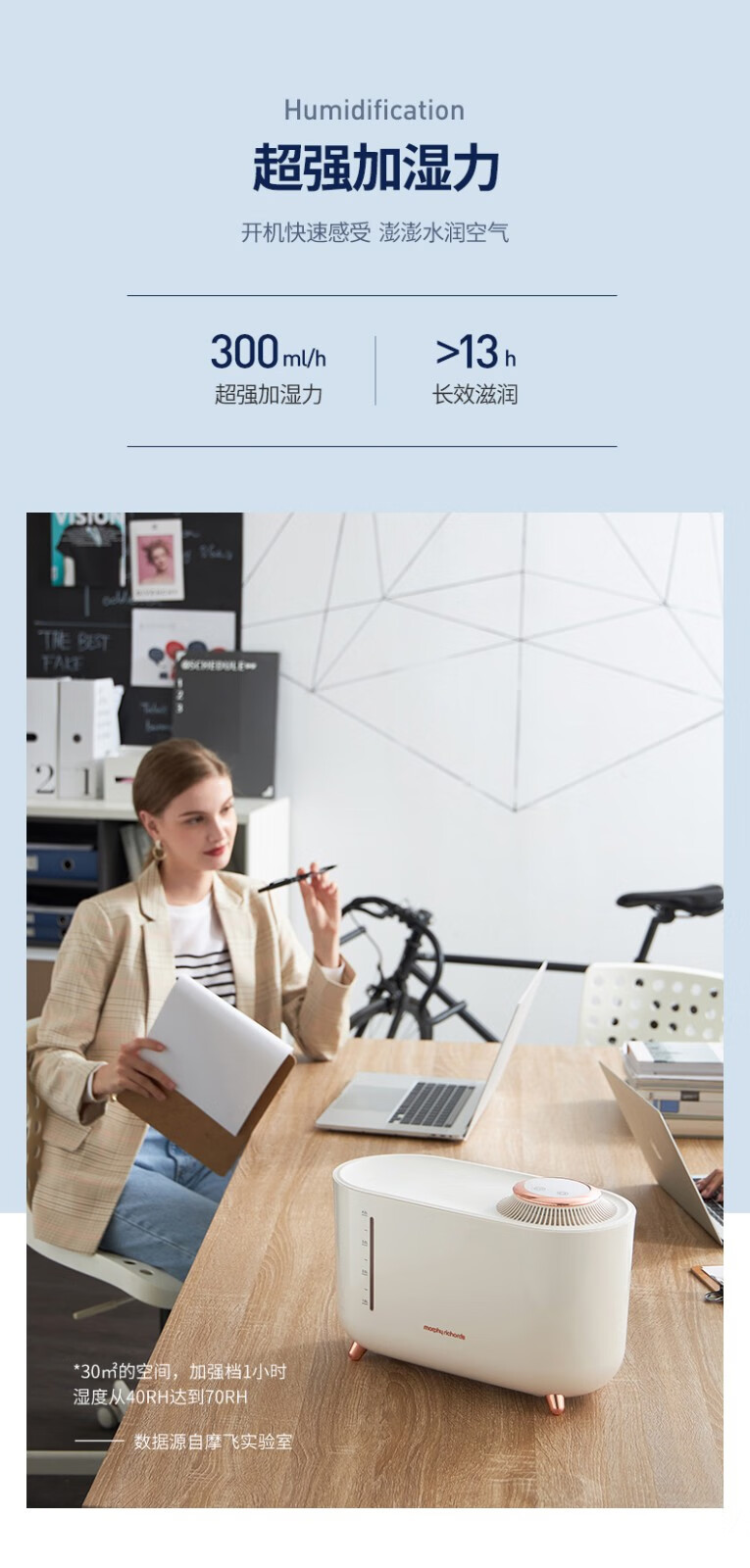 摩飞电器(Morphyrichards) 无雾加湿器卧室婴儿用大容量家用蒸发式办公室桌面空气加湿器 遥控升级版 MR2081