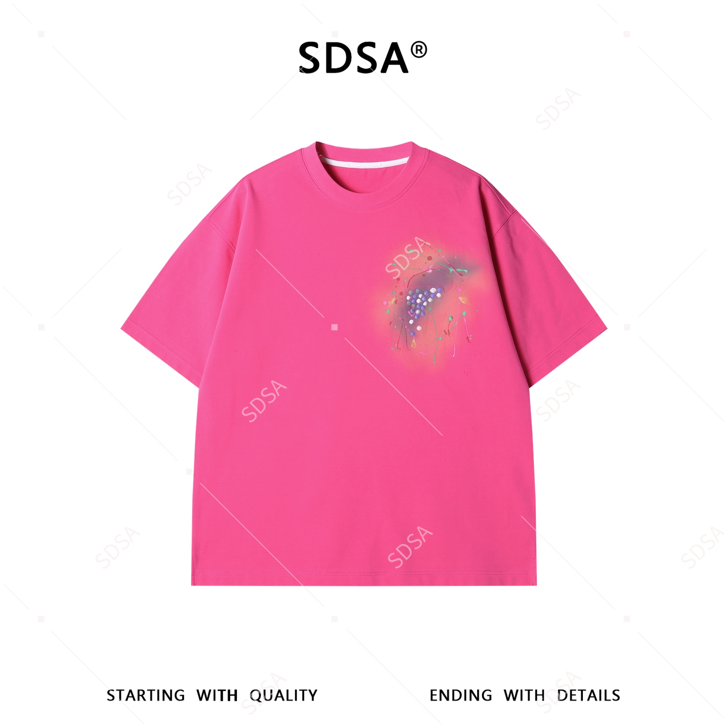 26T68SDSA男装2026新款潮牌多巴胺风短袖t恤彩珠喷绘宽松半袖上衣