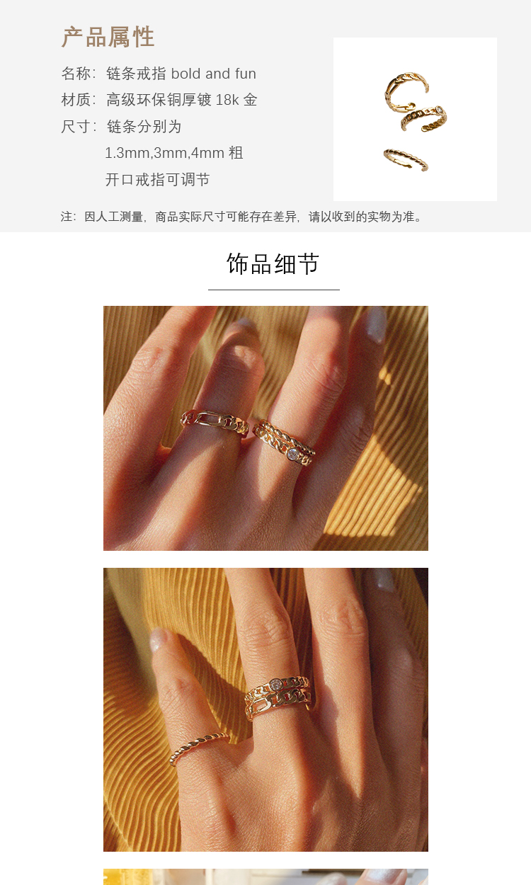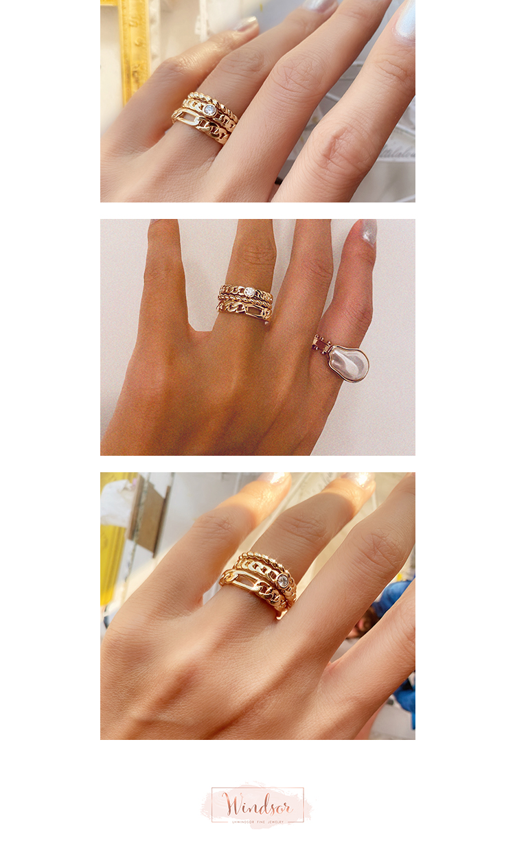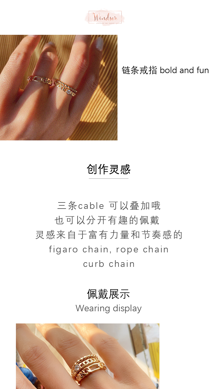 LHWINDSOR 链条戒指 bold and fun三条cable自由叠加简约个性指环