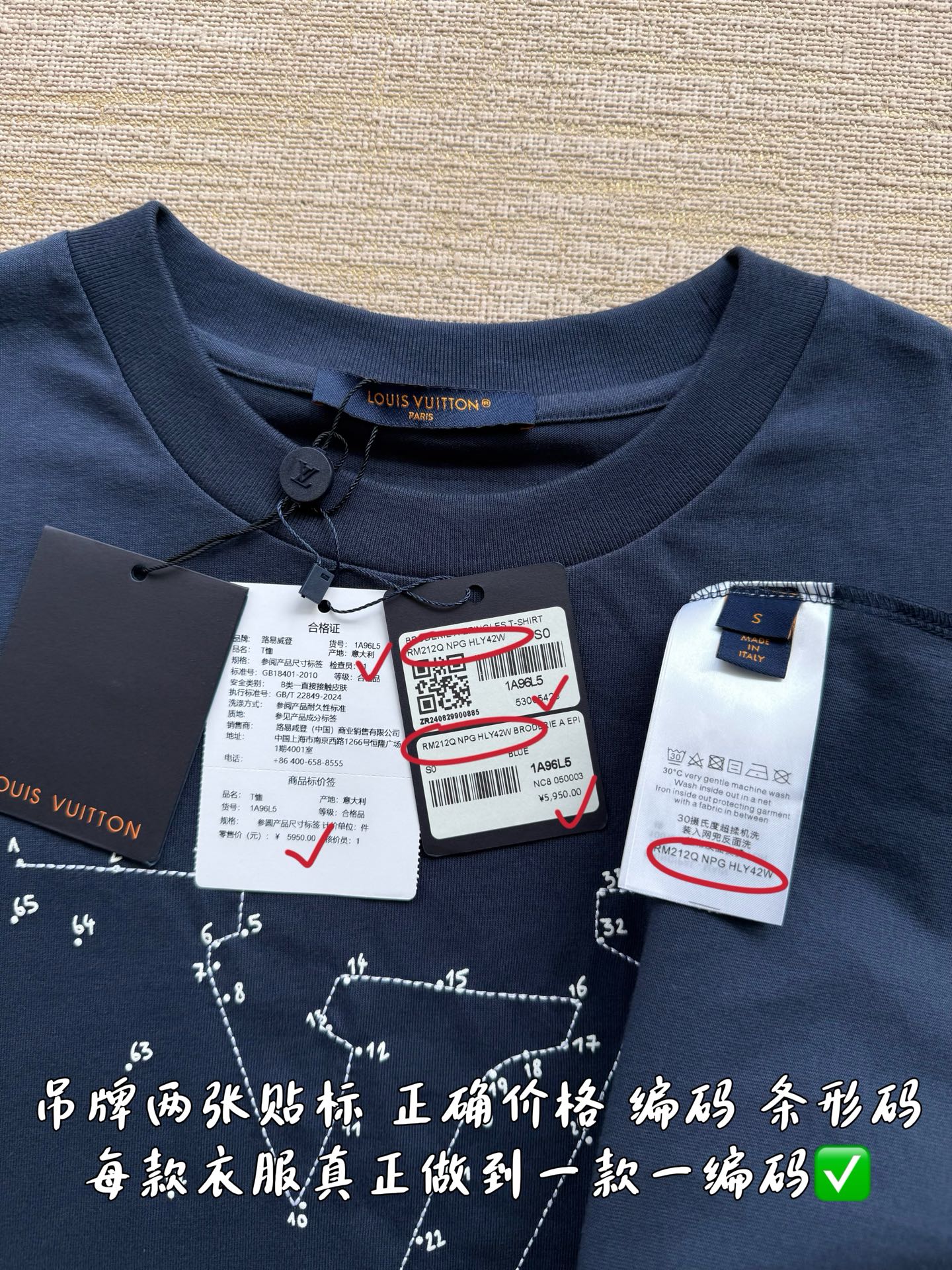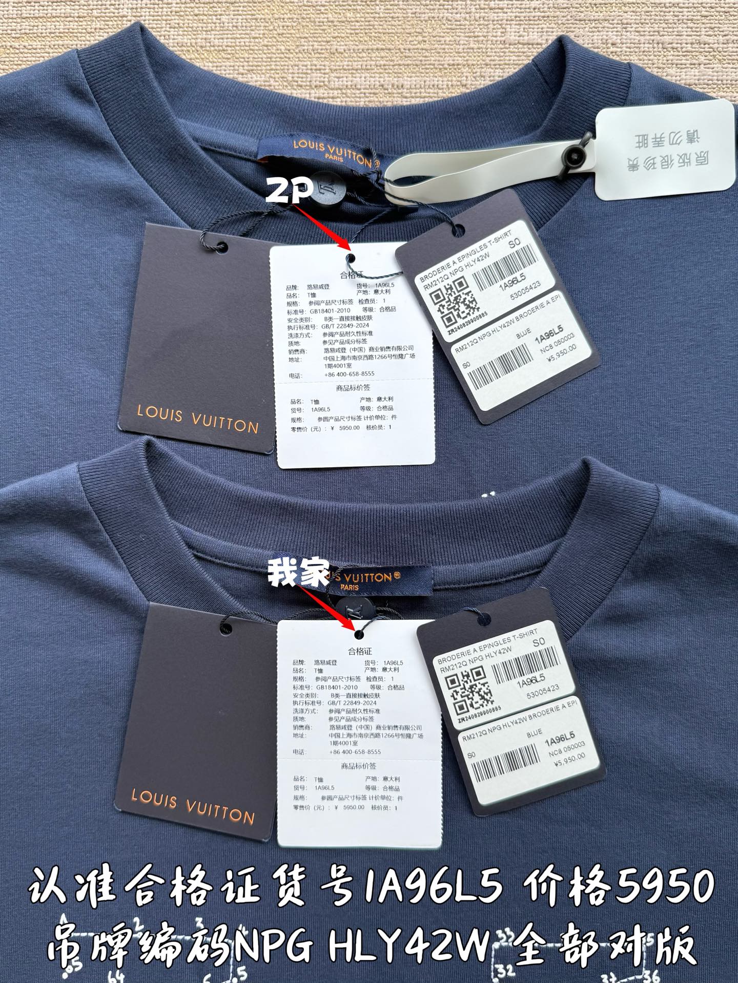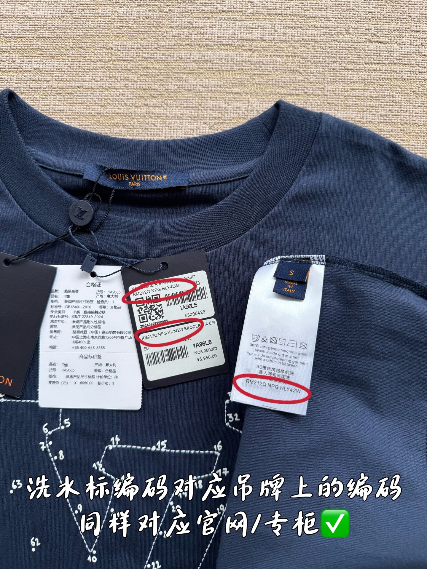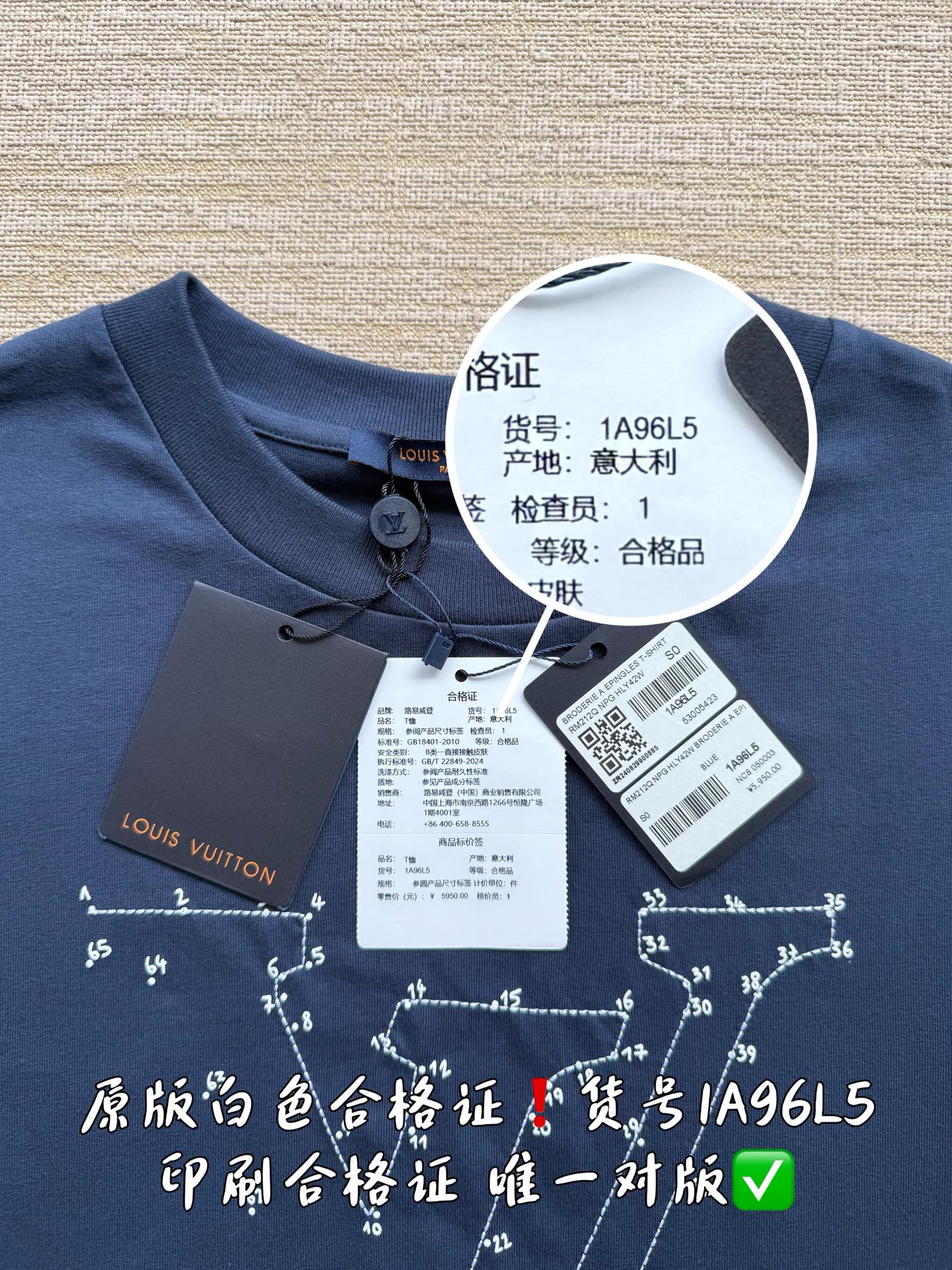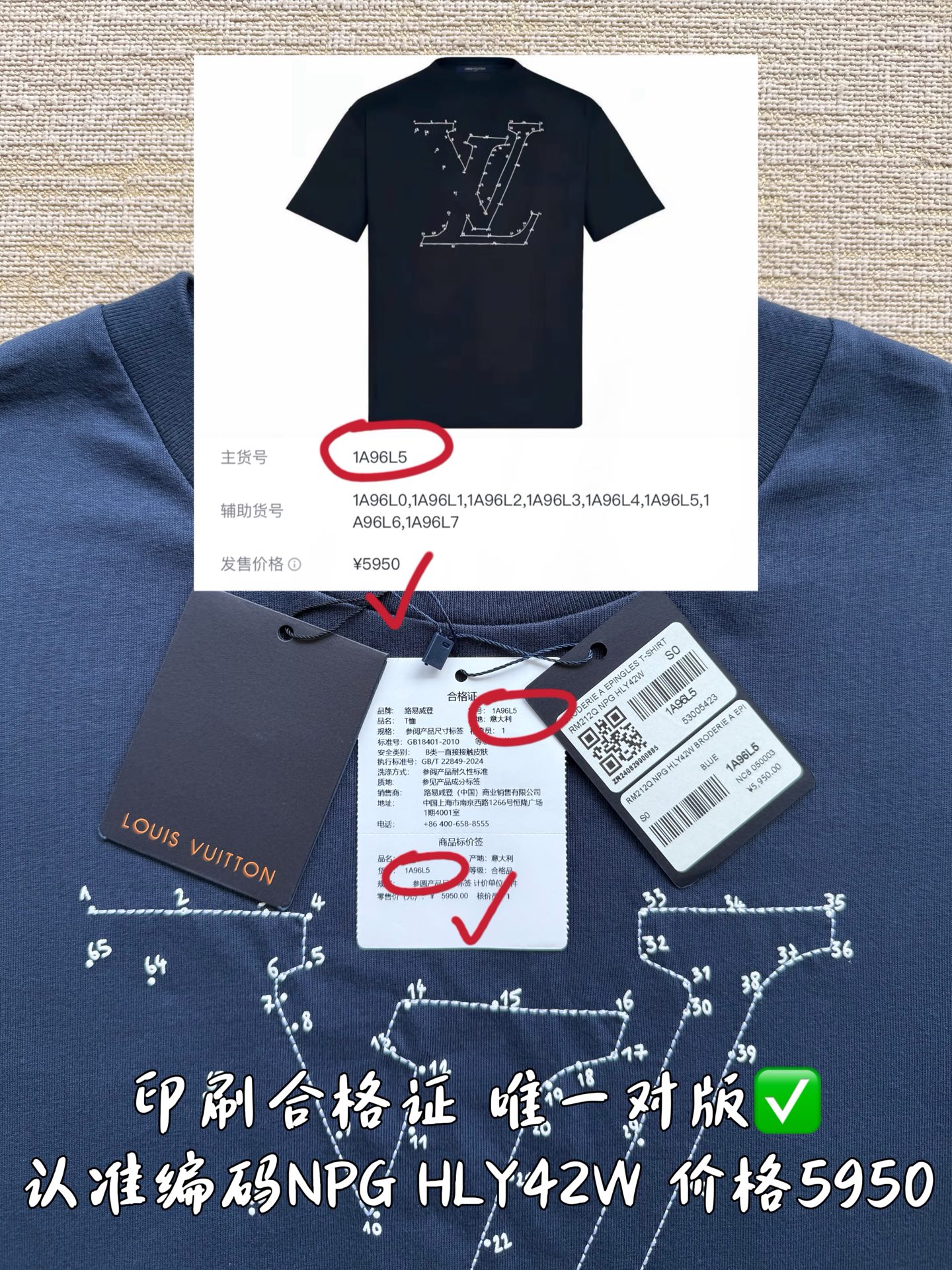 印刷合格证货号1A96L5 唯一对版✅ 洗水麦编码对应吊牌编码NPG HLY42W 合格证货号 吊牌编码 洗水麦编码做到跟原版一致‼️