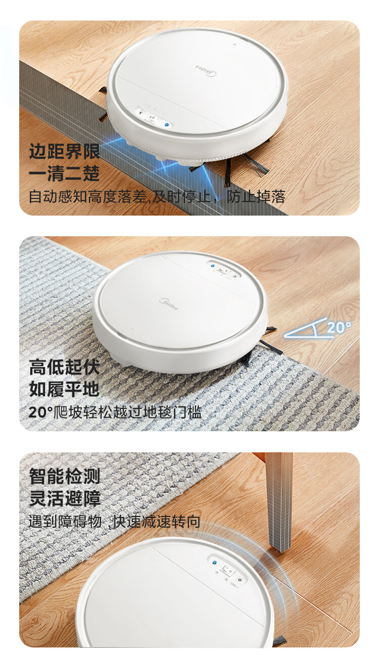 美的(Midea)扫地机器人 家用智能障碍检测扫吸一体 低躁运行 低耗长续航扫地机LJ-S8