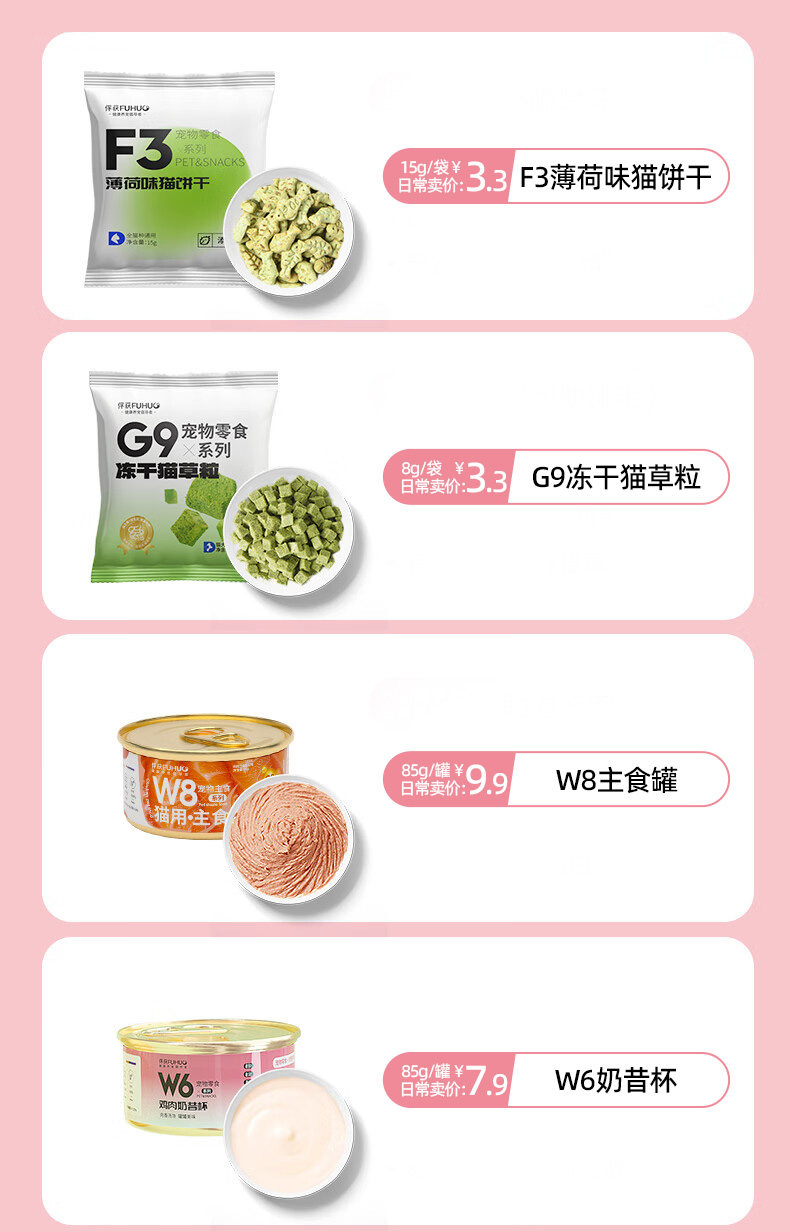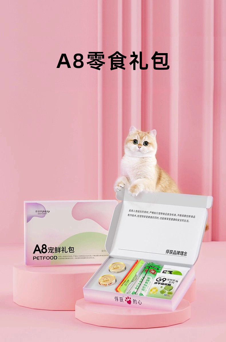 【俘获好礼】俘获A8猫咪零食宠物礼盒包 主食罐头试吃装猫条饼干冻干猫草粒