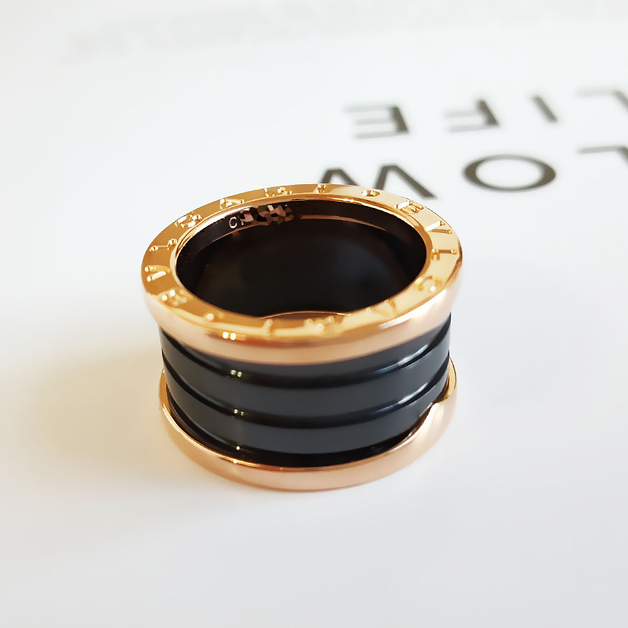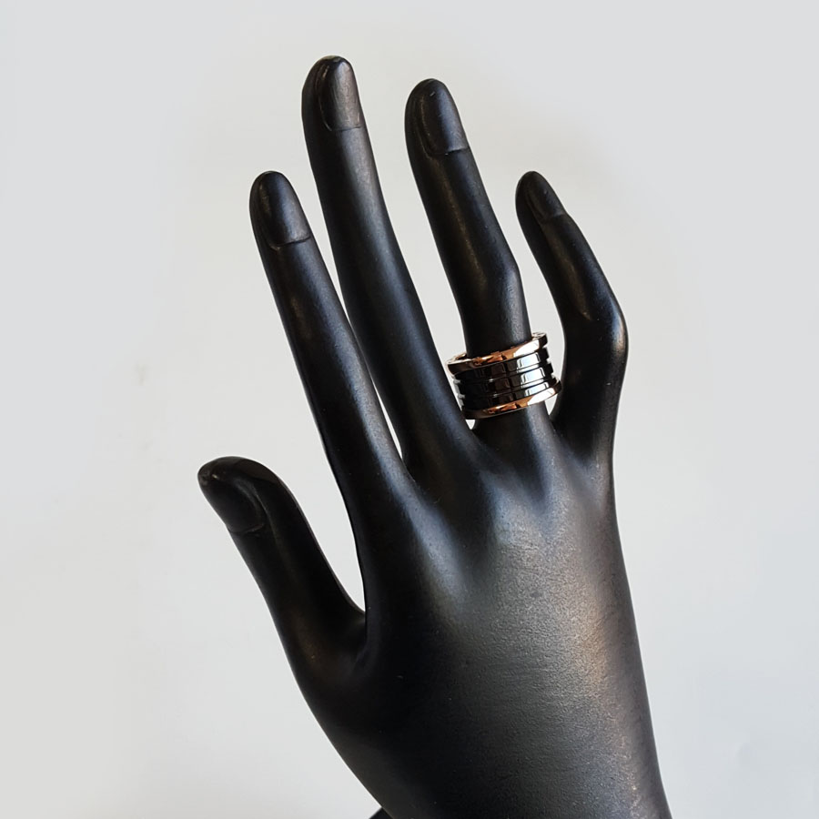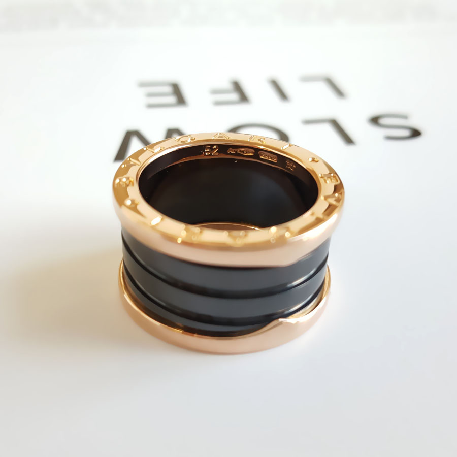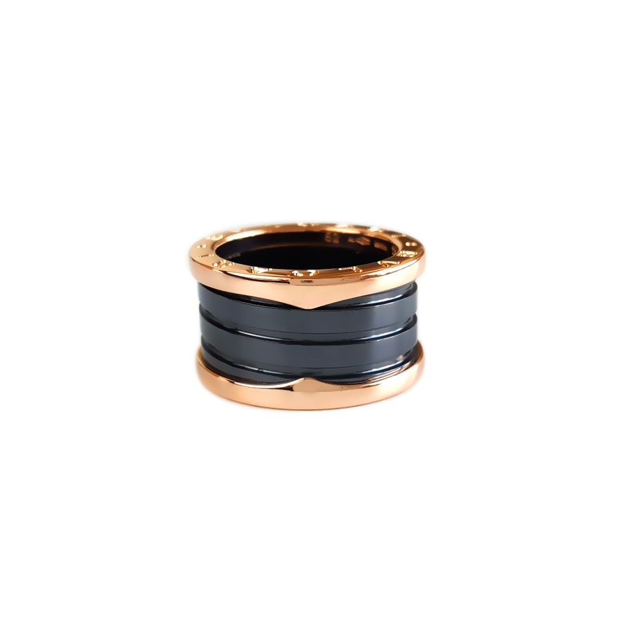 【95新】BVLGARI宝格丽B.ZERO1系列AN855563 18K玫瑰金黑陶瓷四环弹簧戒指52号101224NJS12 现售价:4700