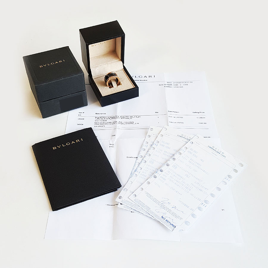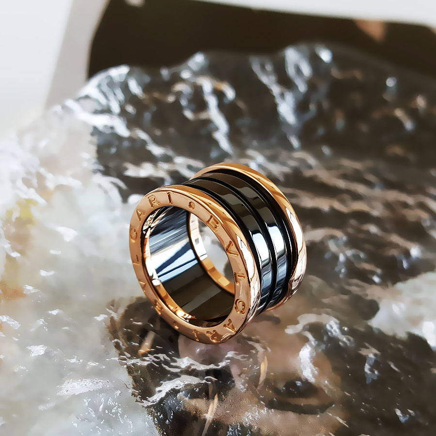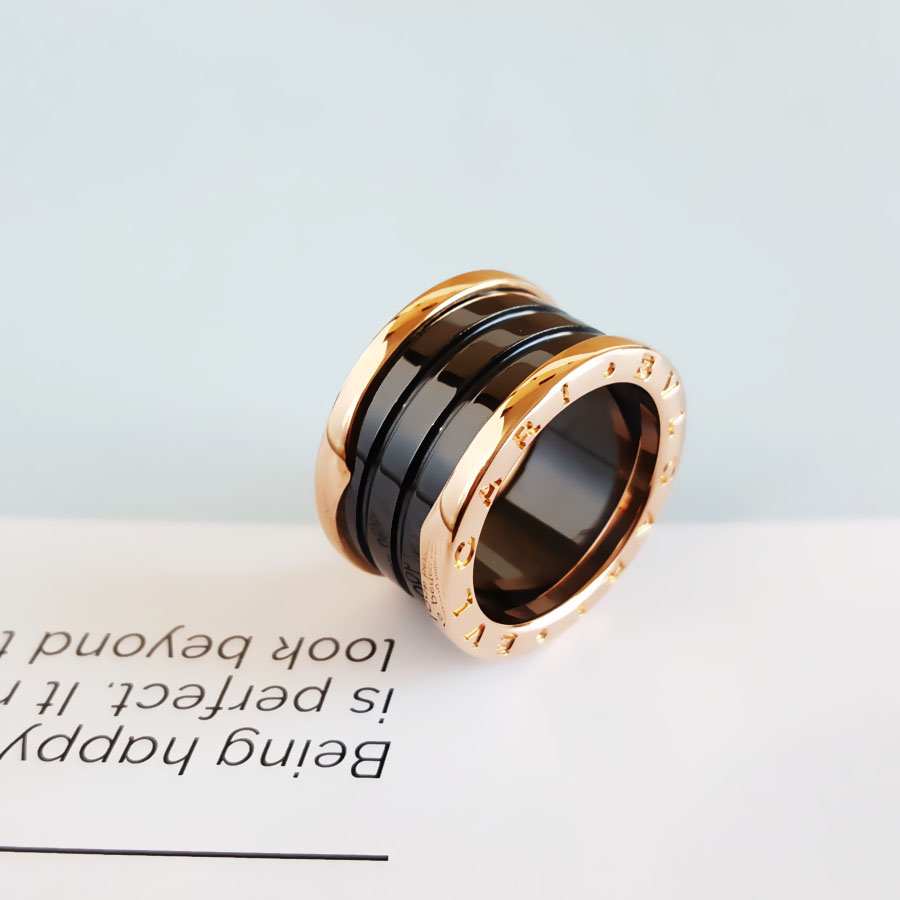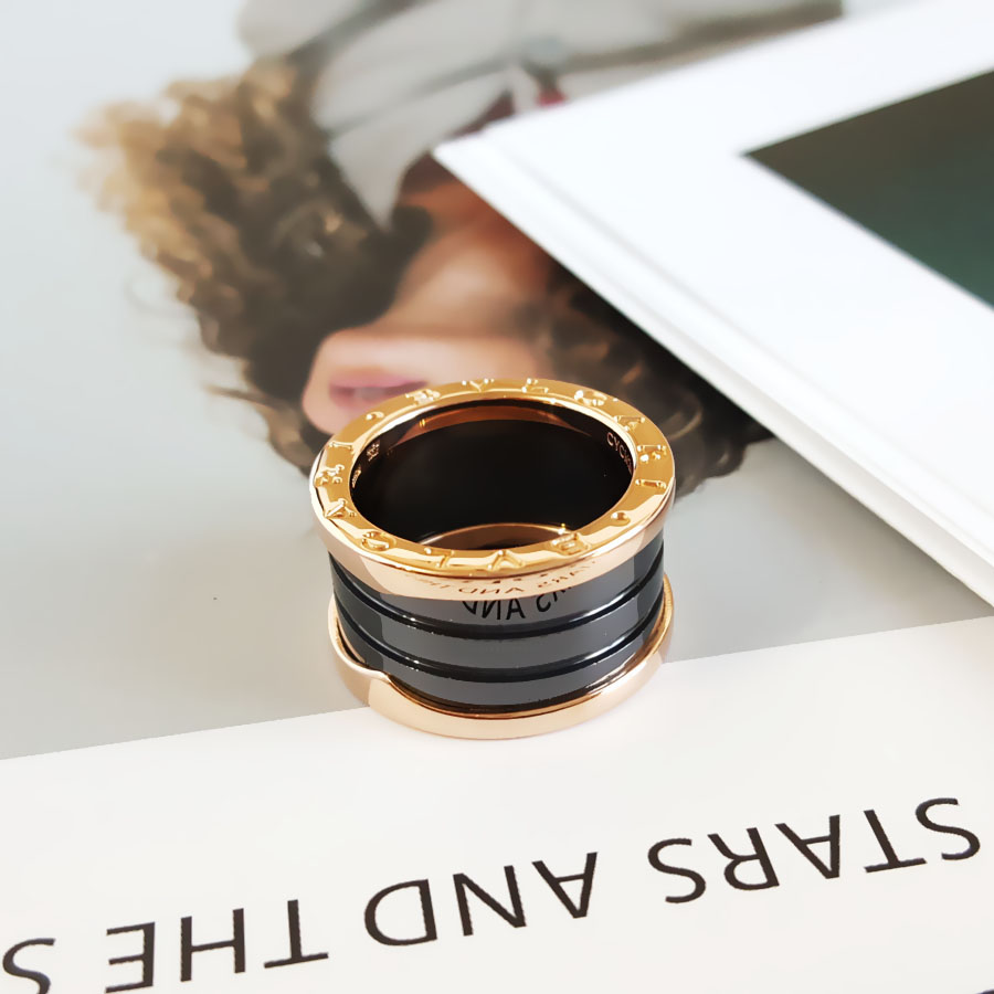 【95新】BVLGARI宝格丽B.ZERO1系列AN855563 18K玫瑰金黑陶瓷四环弹簧戒指52号101224NJS12 现售价:4700