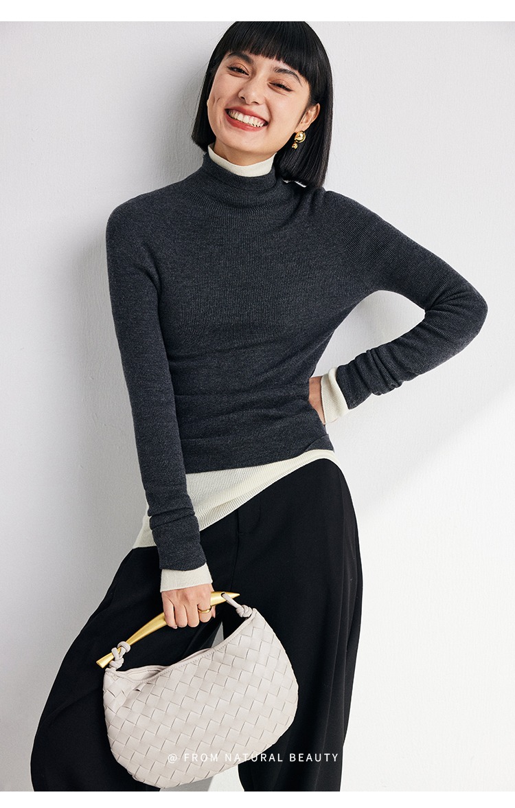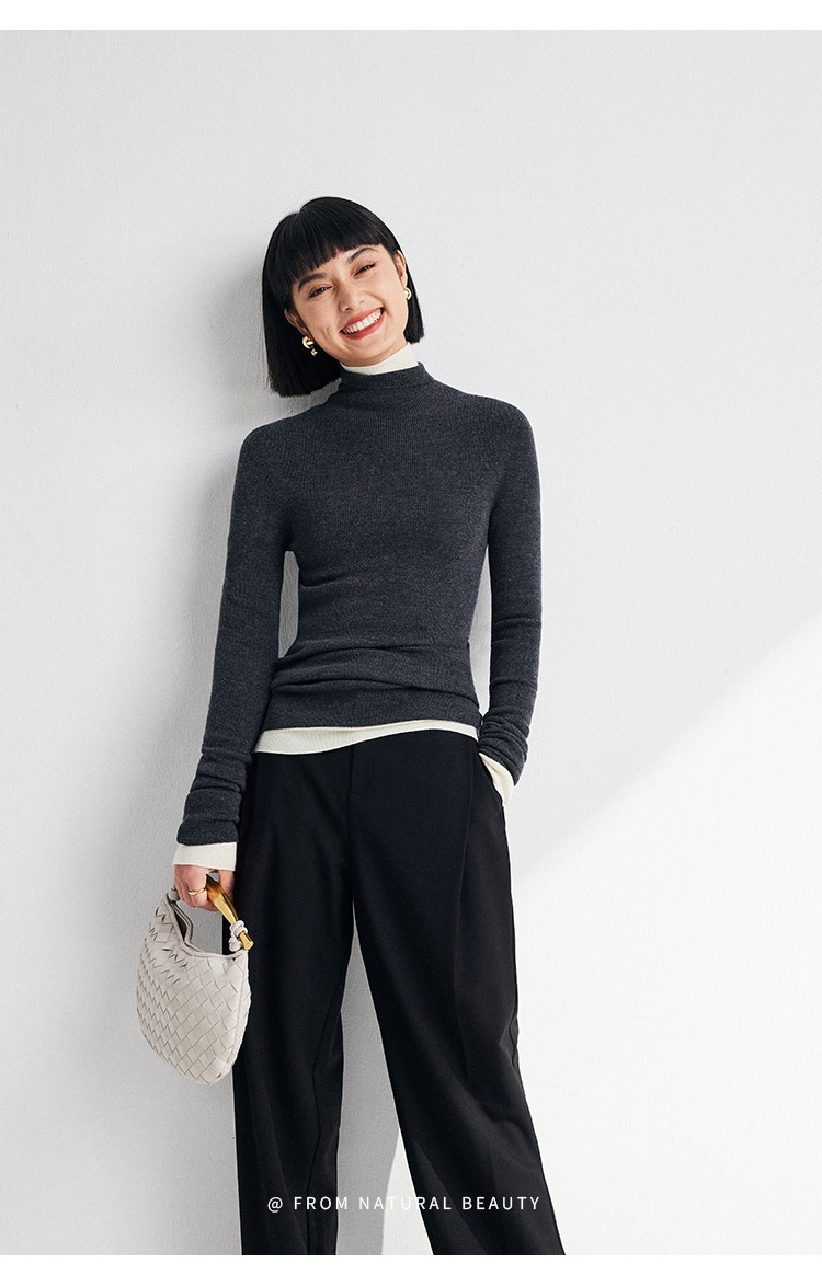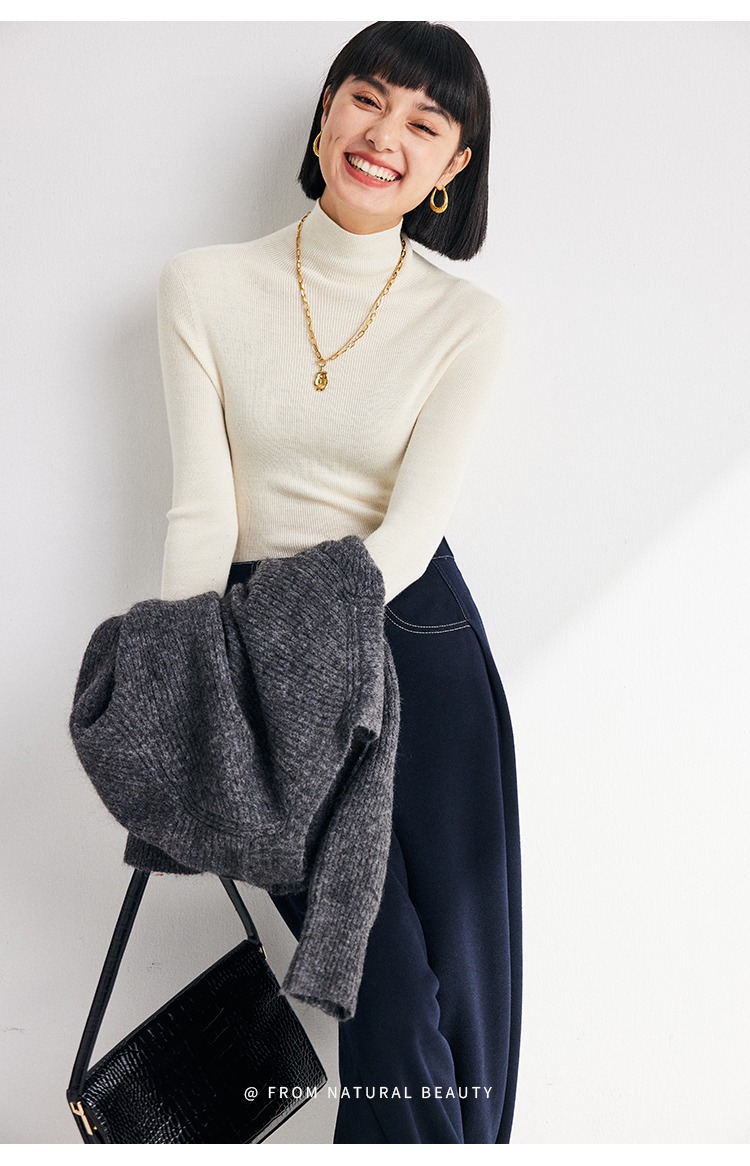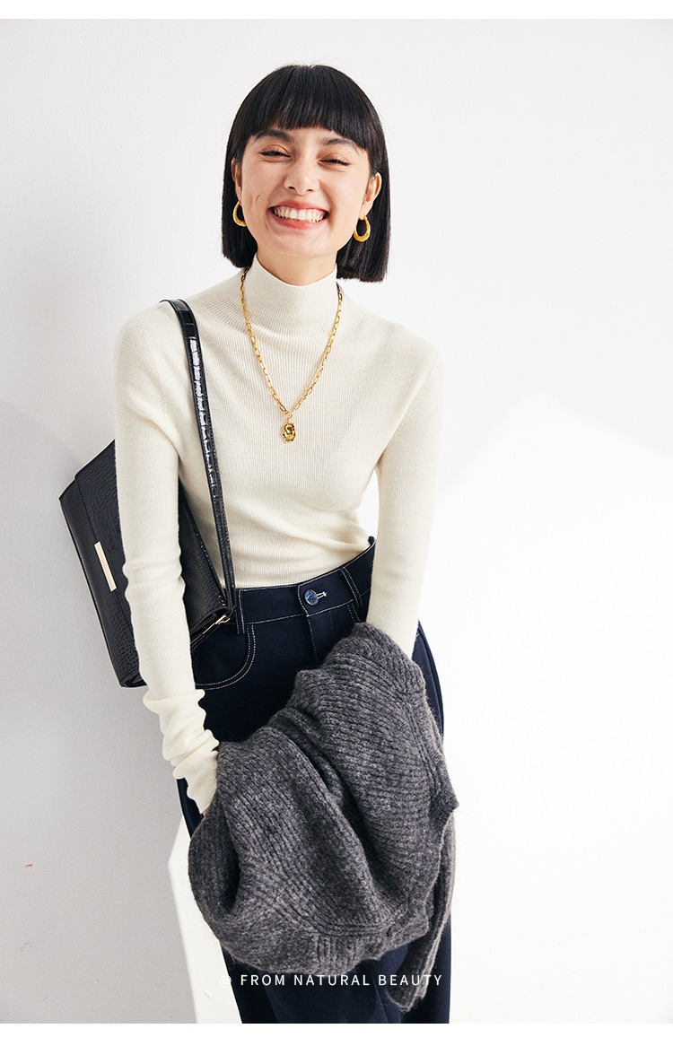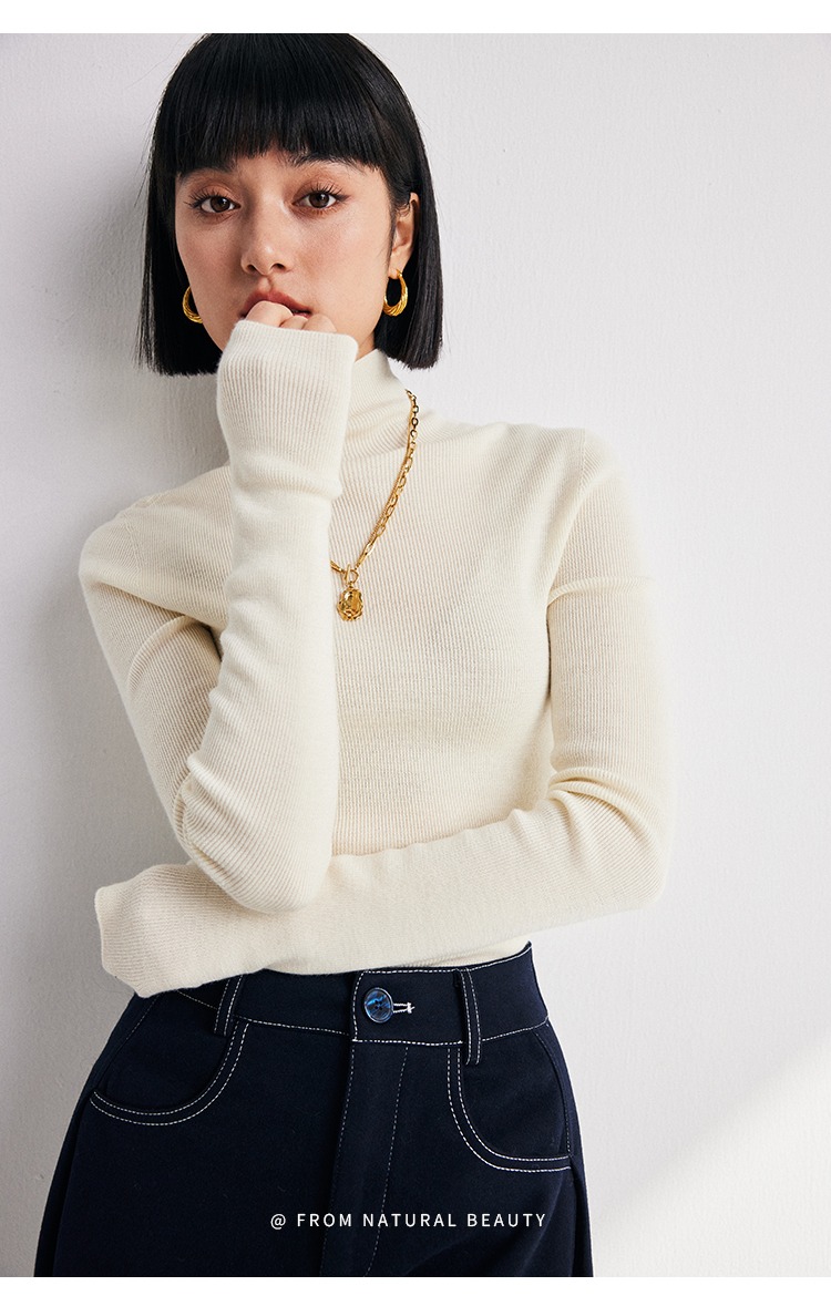 轻薄羊毛针织衫女打底衫2023秋冬新款半高领显瘦内搭针织毛衣
