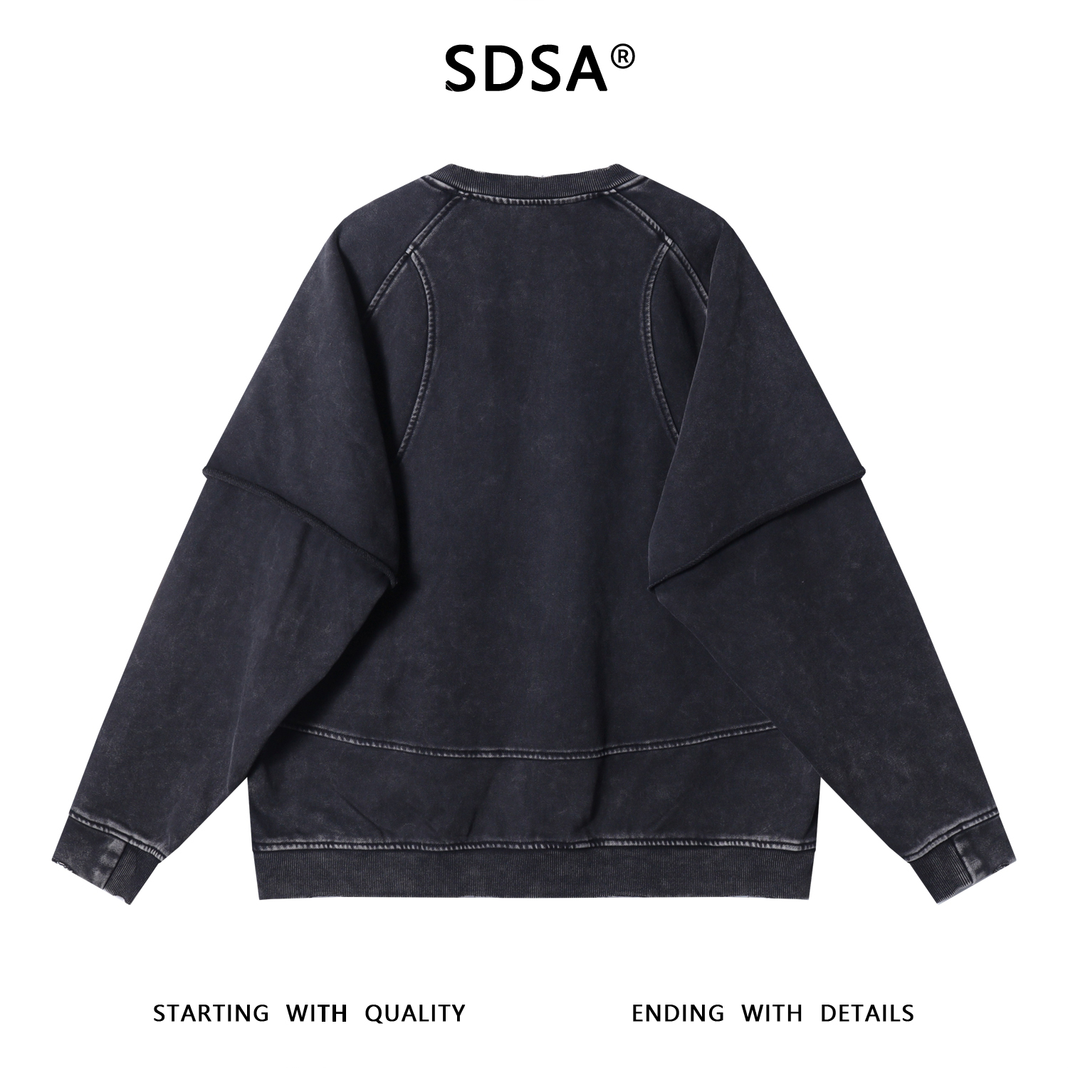 11357SDSA男士秋冬新款痞帅男装韩版磨白解构拉链口袋圆领卫衣百搭宽松