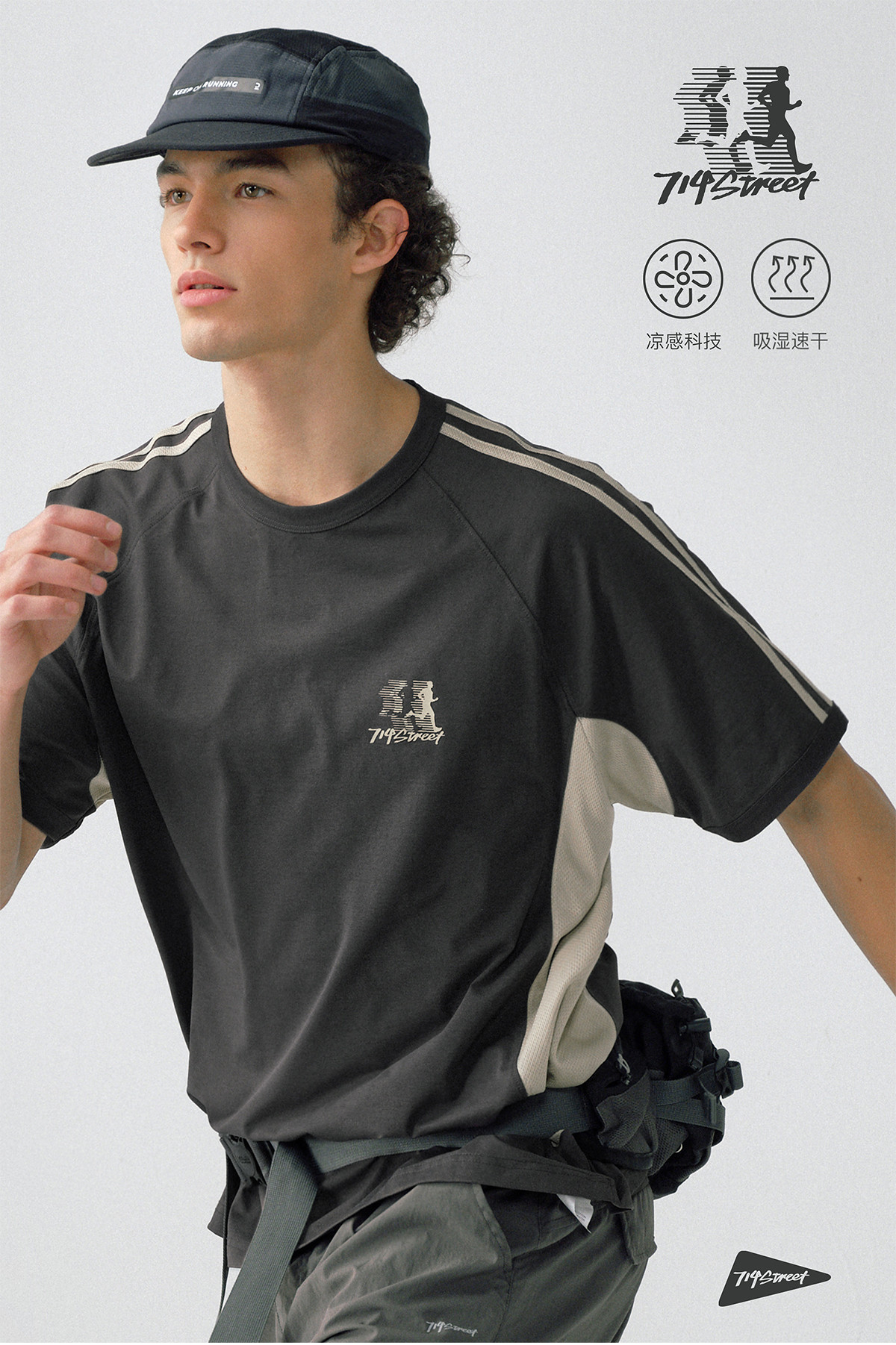 714street7A抗菌防晒速干几何印花长袖上衣2026新款圆领T恤男女