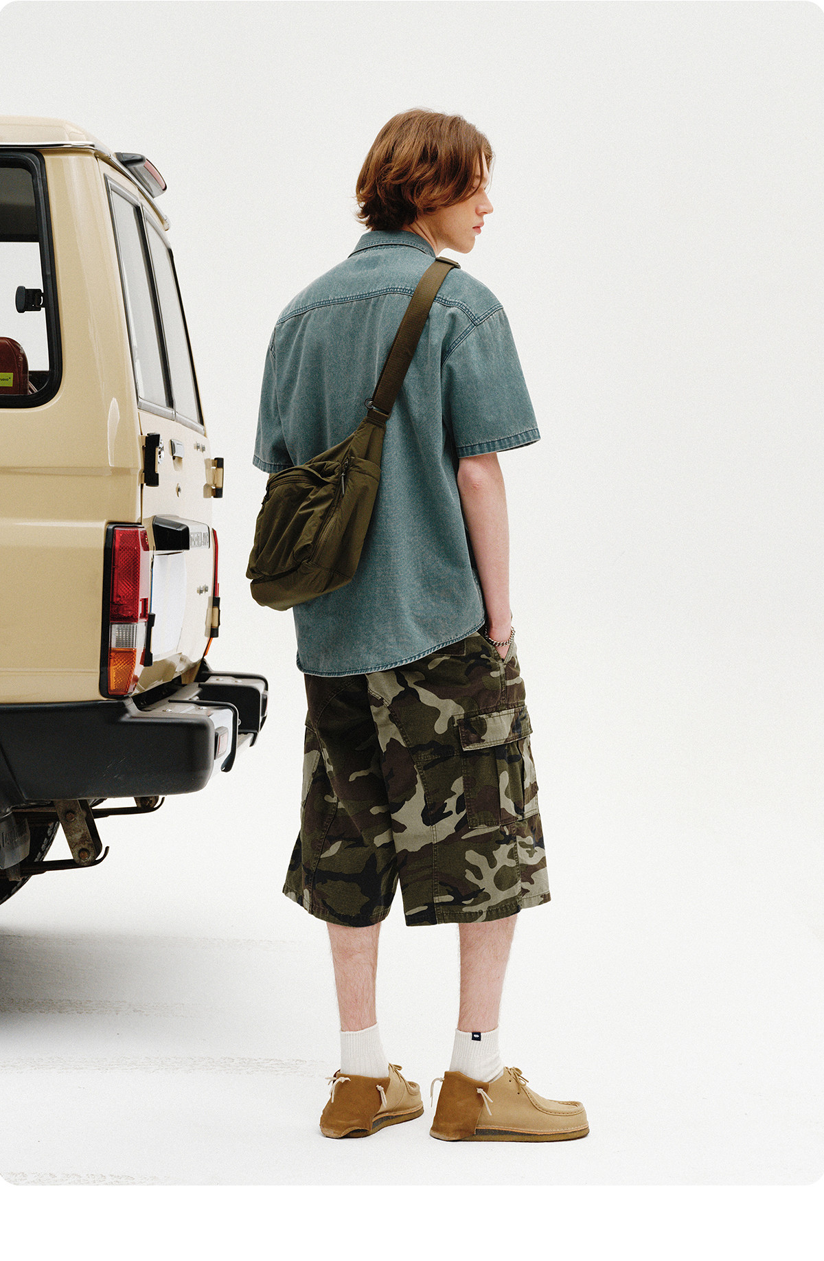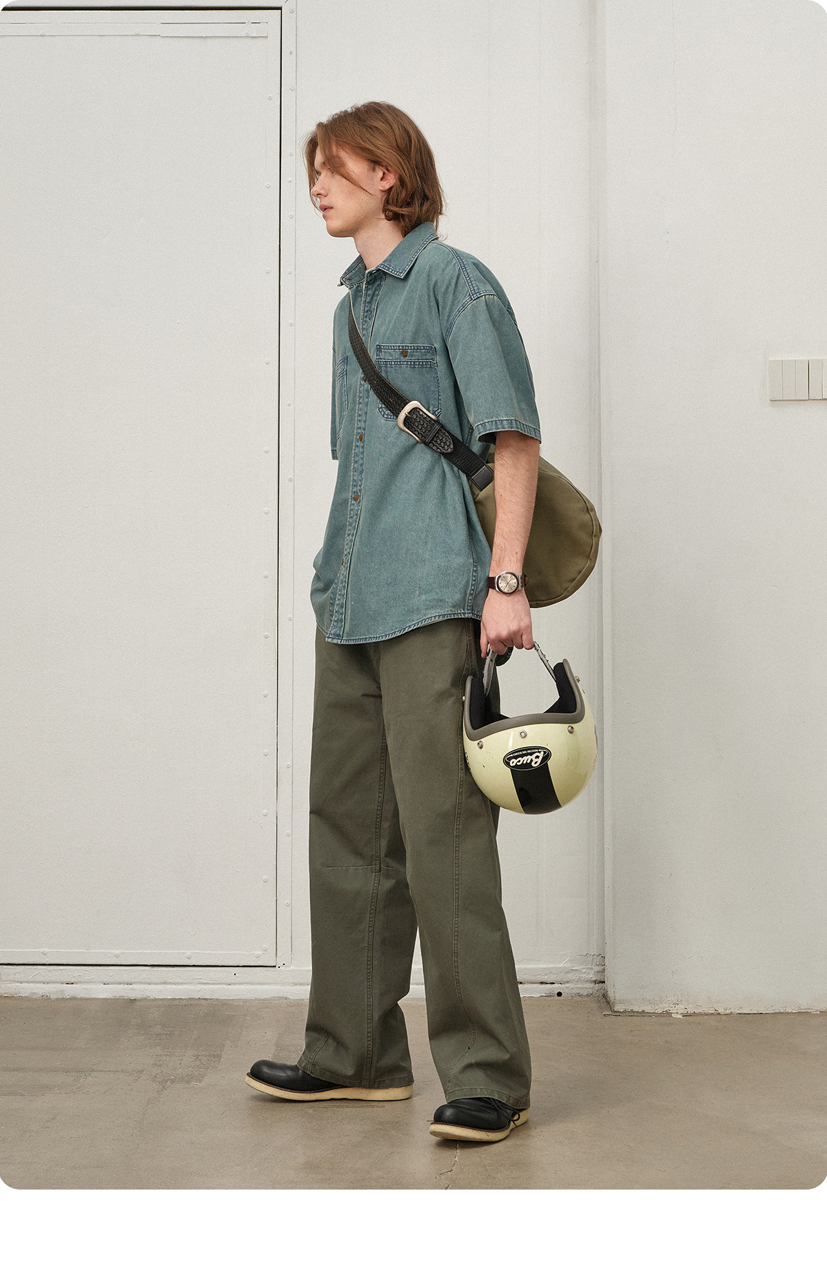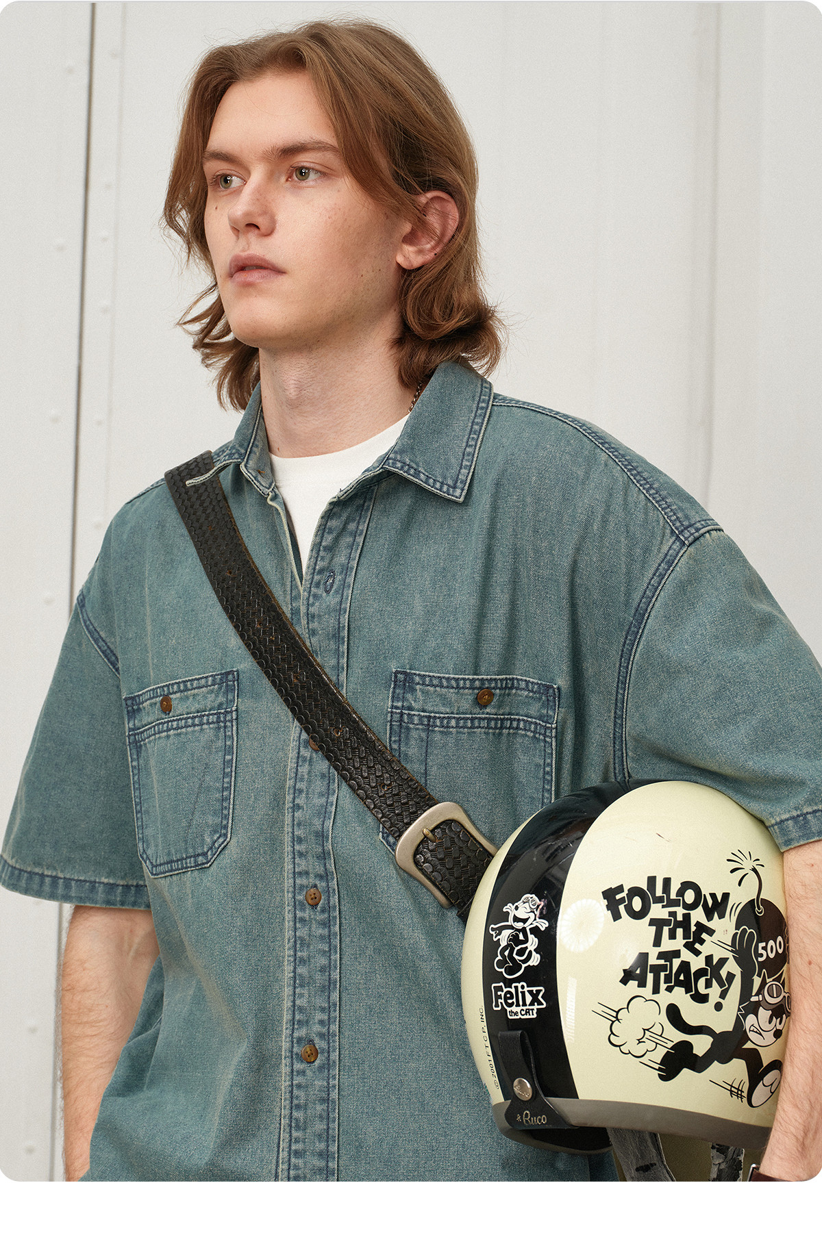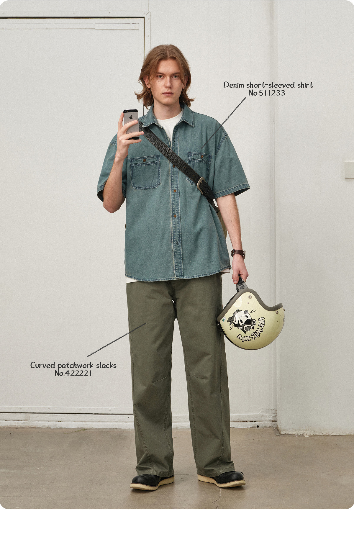 714street日系水洗做旧短袖牛仔衬衫25春夏新款美式复古宽松衬衣