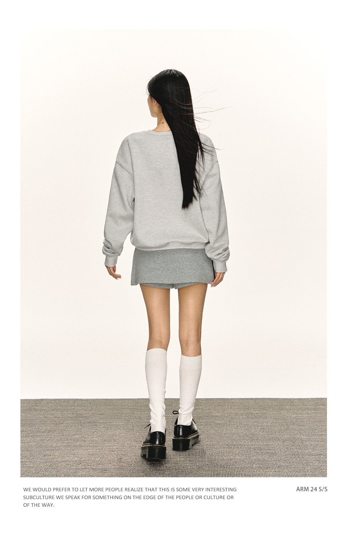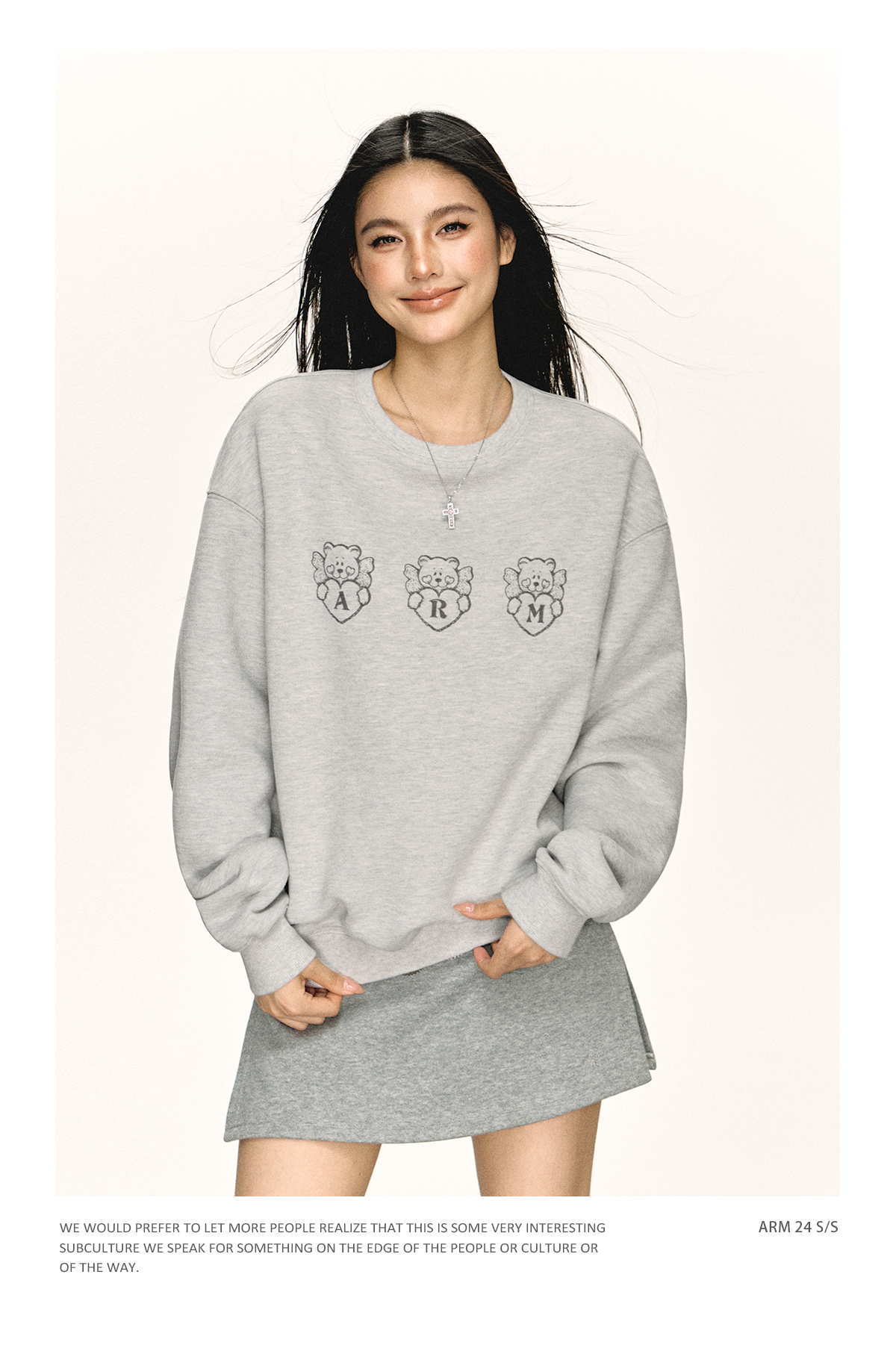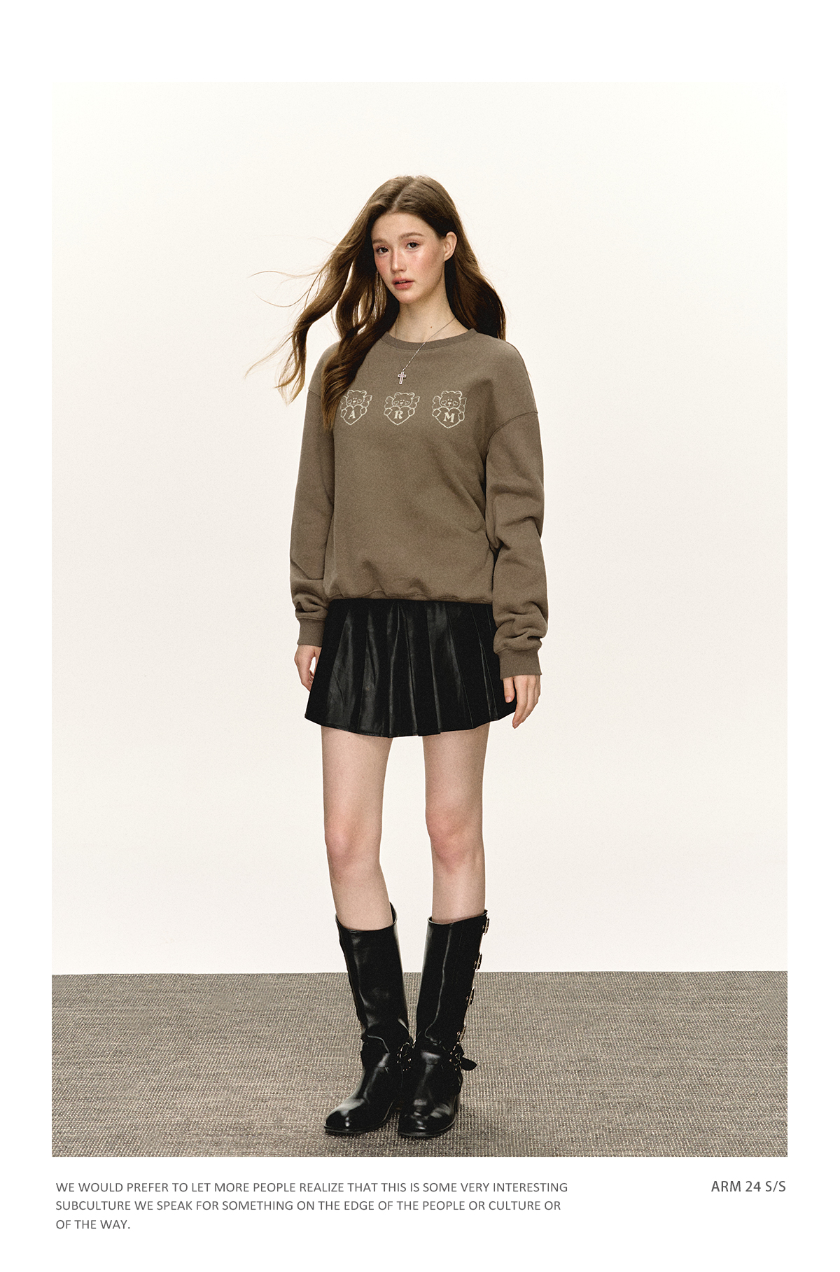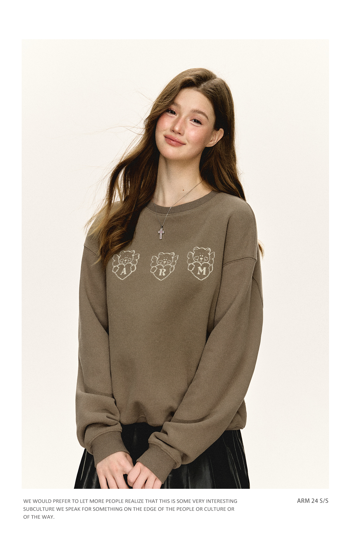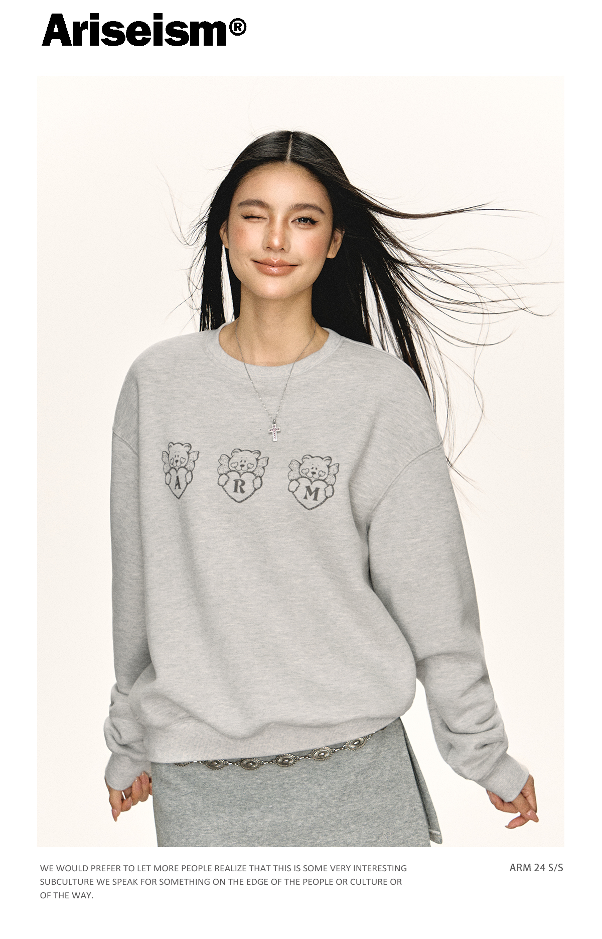 Ariseism 美式复古灰色印花宽松卫衣女春秋新款上衣