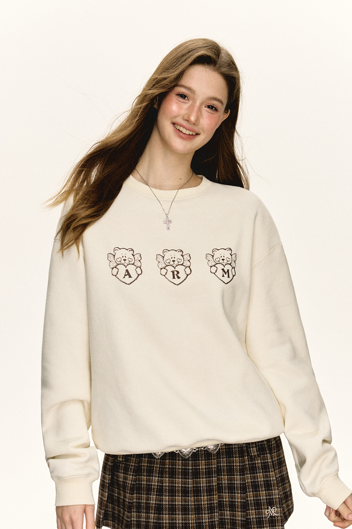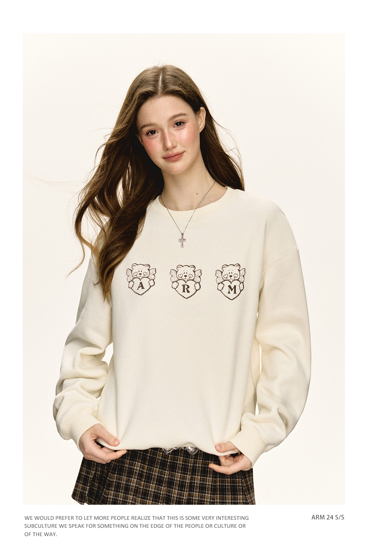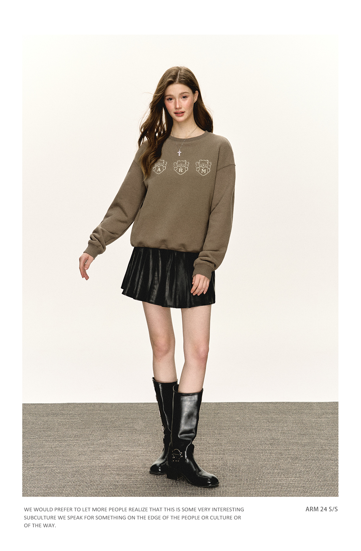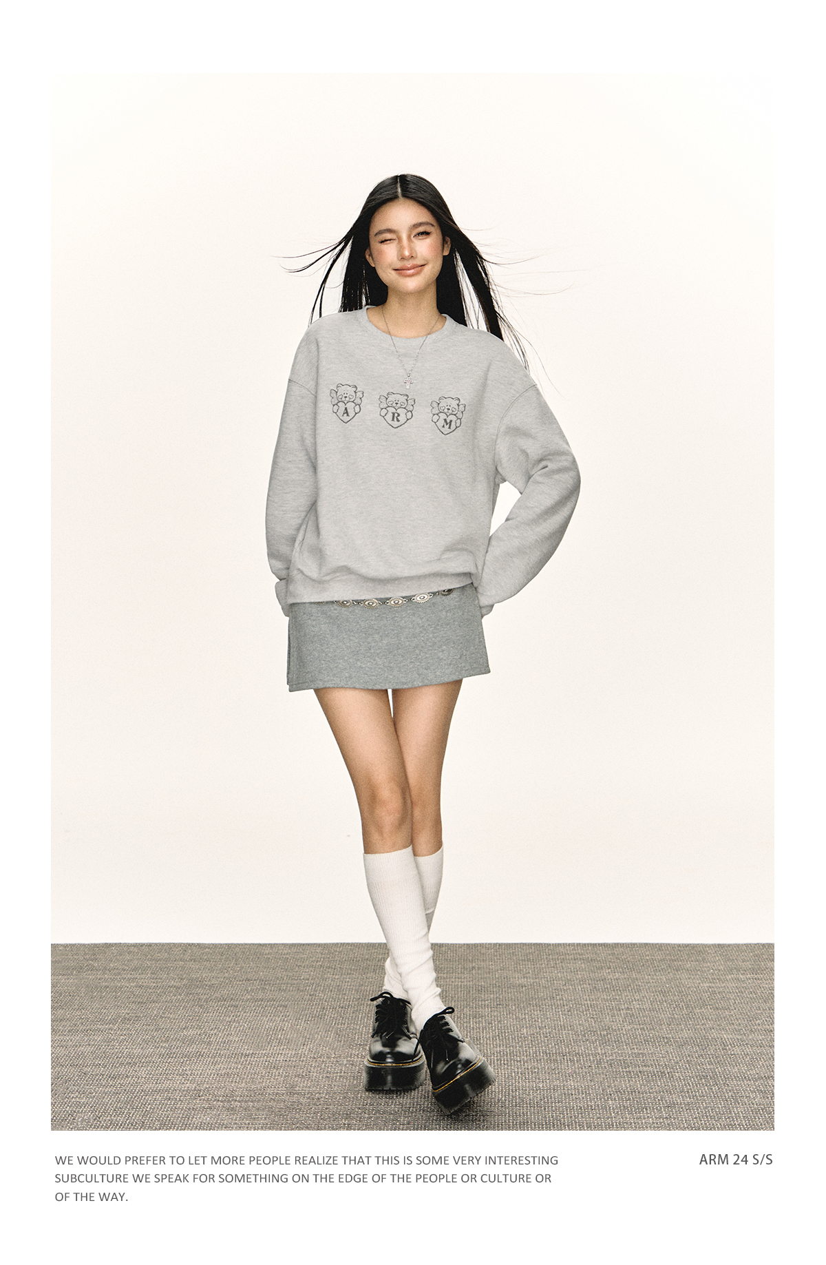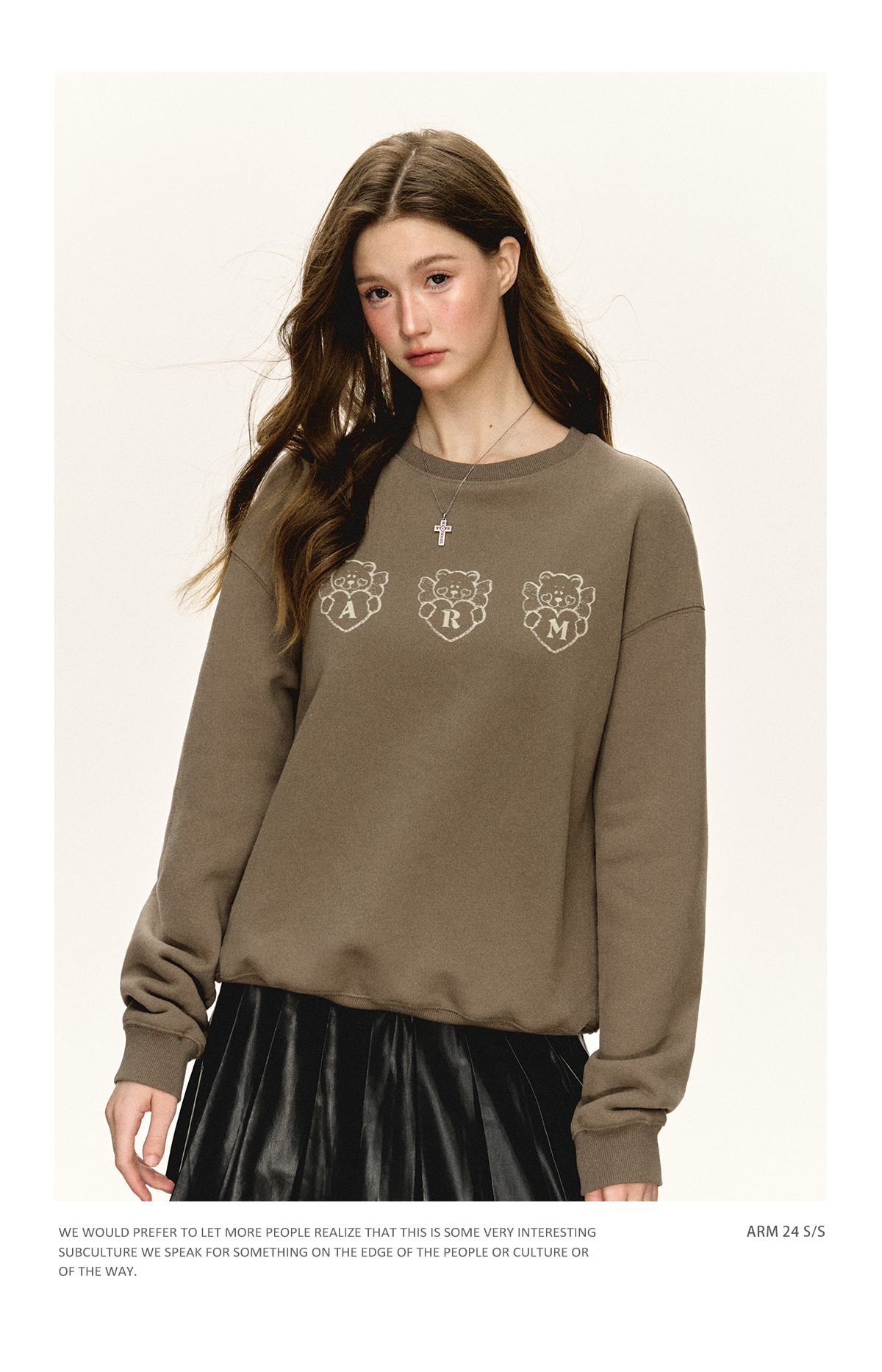 Ariseism 美式复古灰色印花宽松卫衣女春秋新款上衣