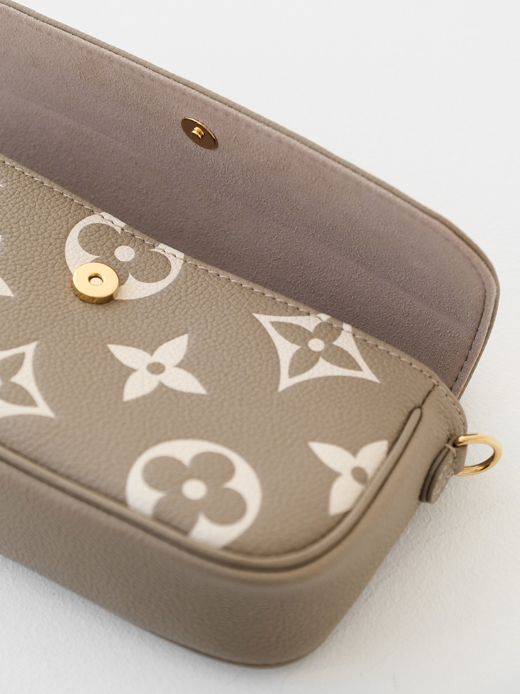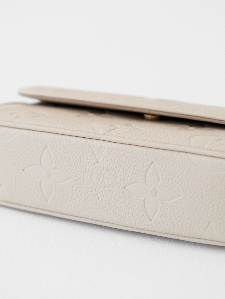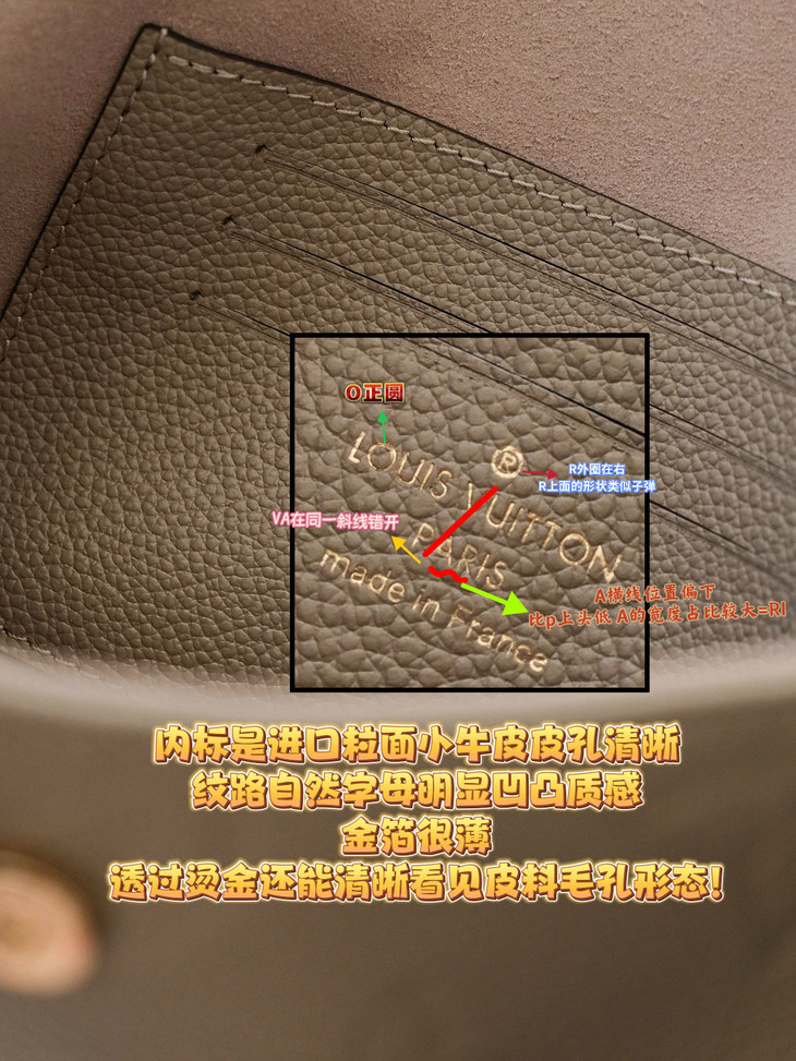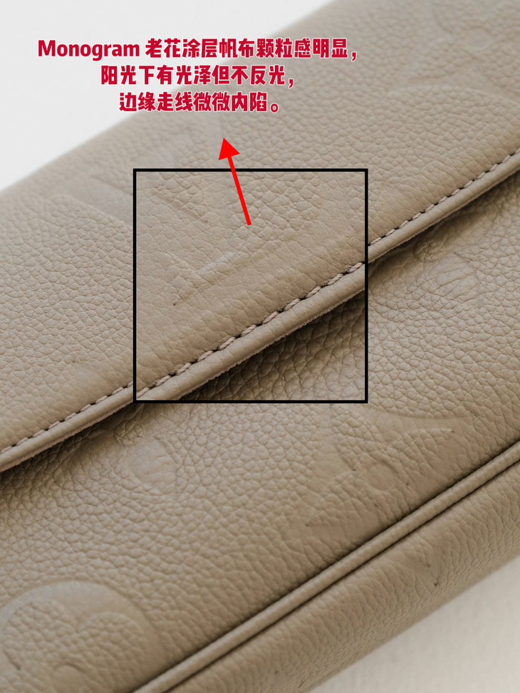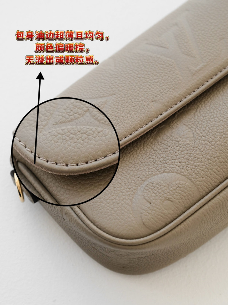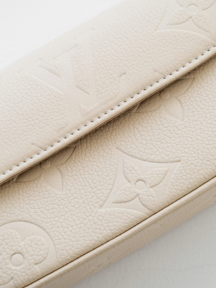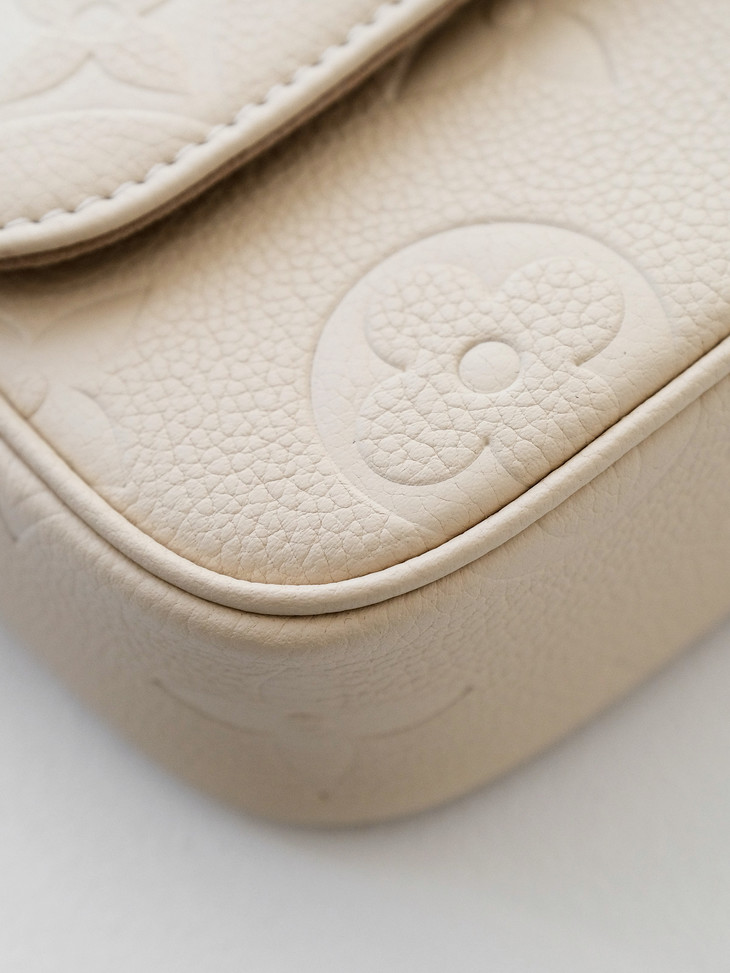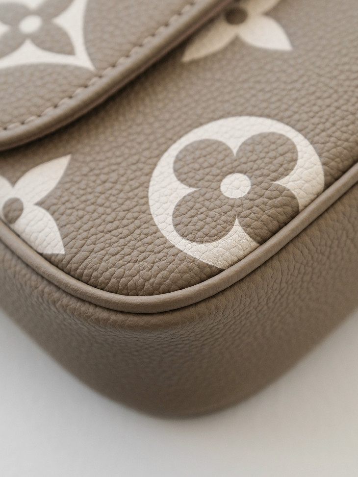 原版进口牛皮🔍 采用Empreinte Monogram压纹小牛皮,这种皮革质感细腻,在保持轻盈度的同时有一定挺括度,纹路清晰,耐造且不容易显旧,浮雕老花立体深邃,触感柔软却耐磨抗刮。