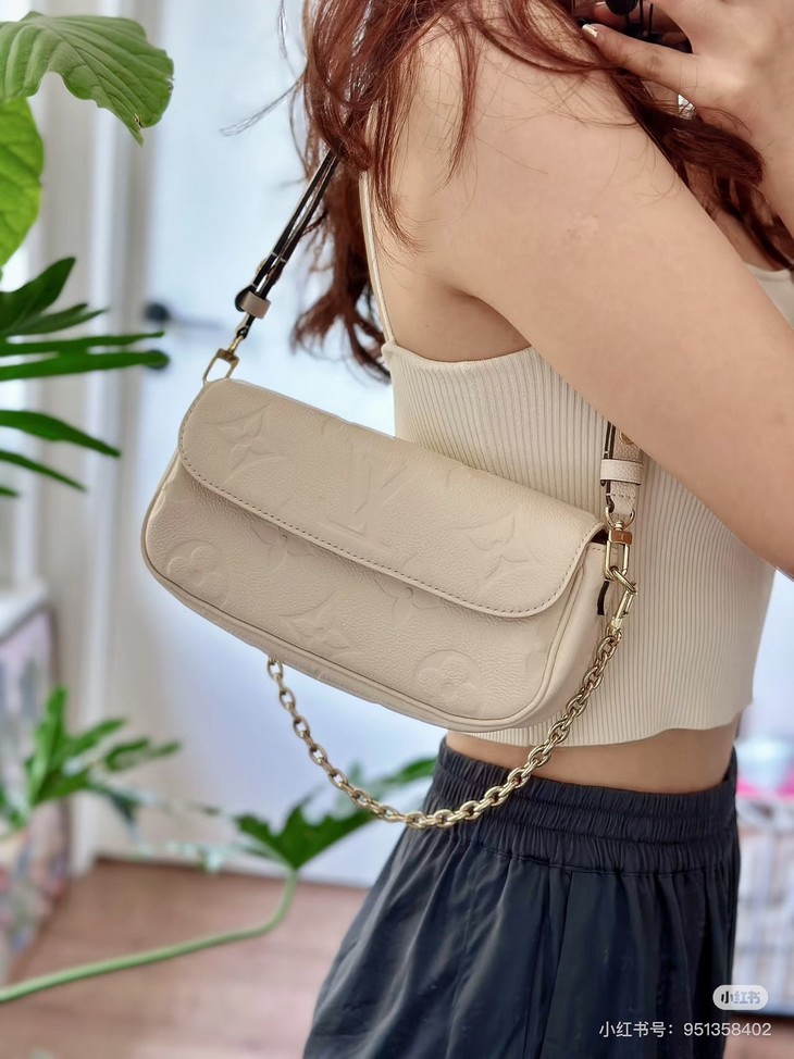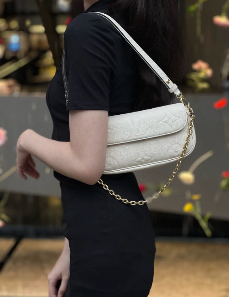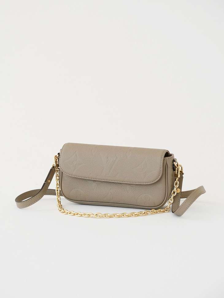 本款 Wallet On Chain Ivy手袋为Monogram Empreinte 粒面皮革压印大号Monogram 图案,成就昼夜皆宜的潮流之选。莹亮链条实现手拿和短肩背的随心切换,采用进口意大利牛皮~压印大号 Monogram 图案,包身通体全钢24k电镀五金材质~搭配短链条和可拆卸并调节的皮革肩带,手持、肩背、斜挎随心切换。