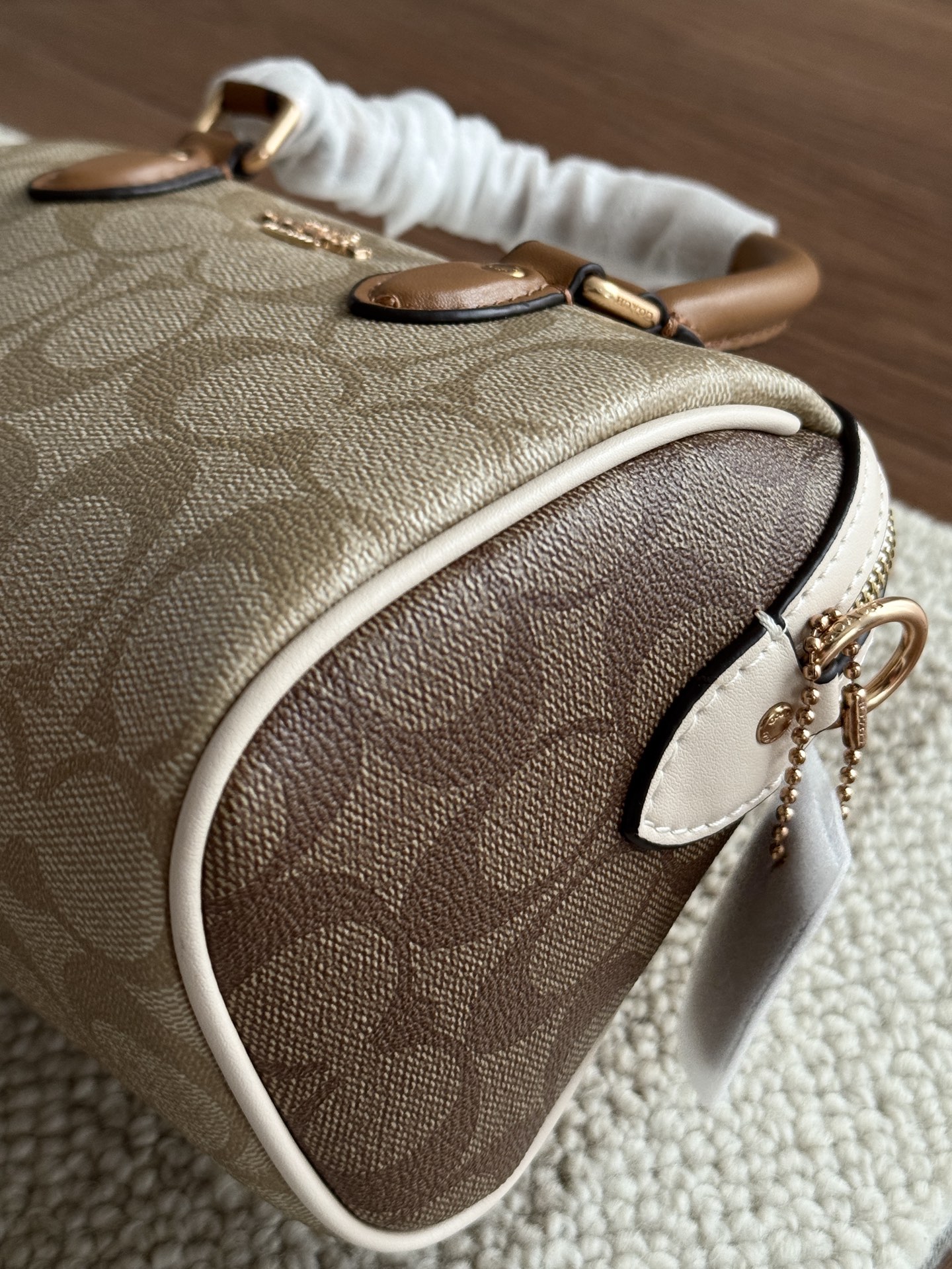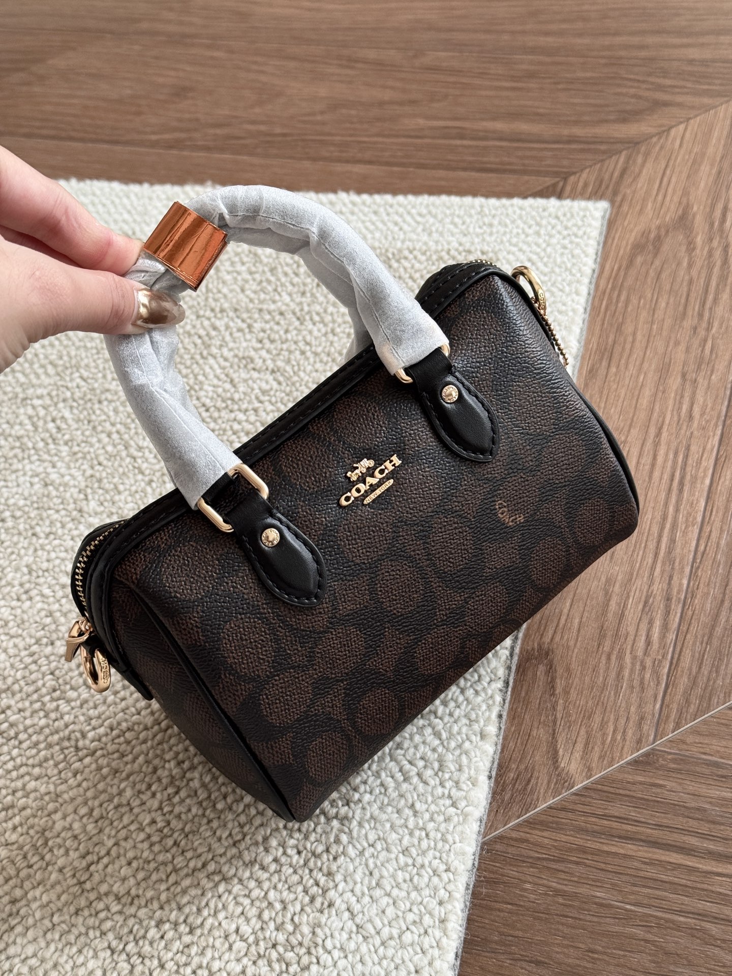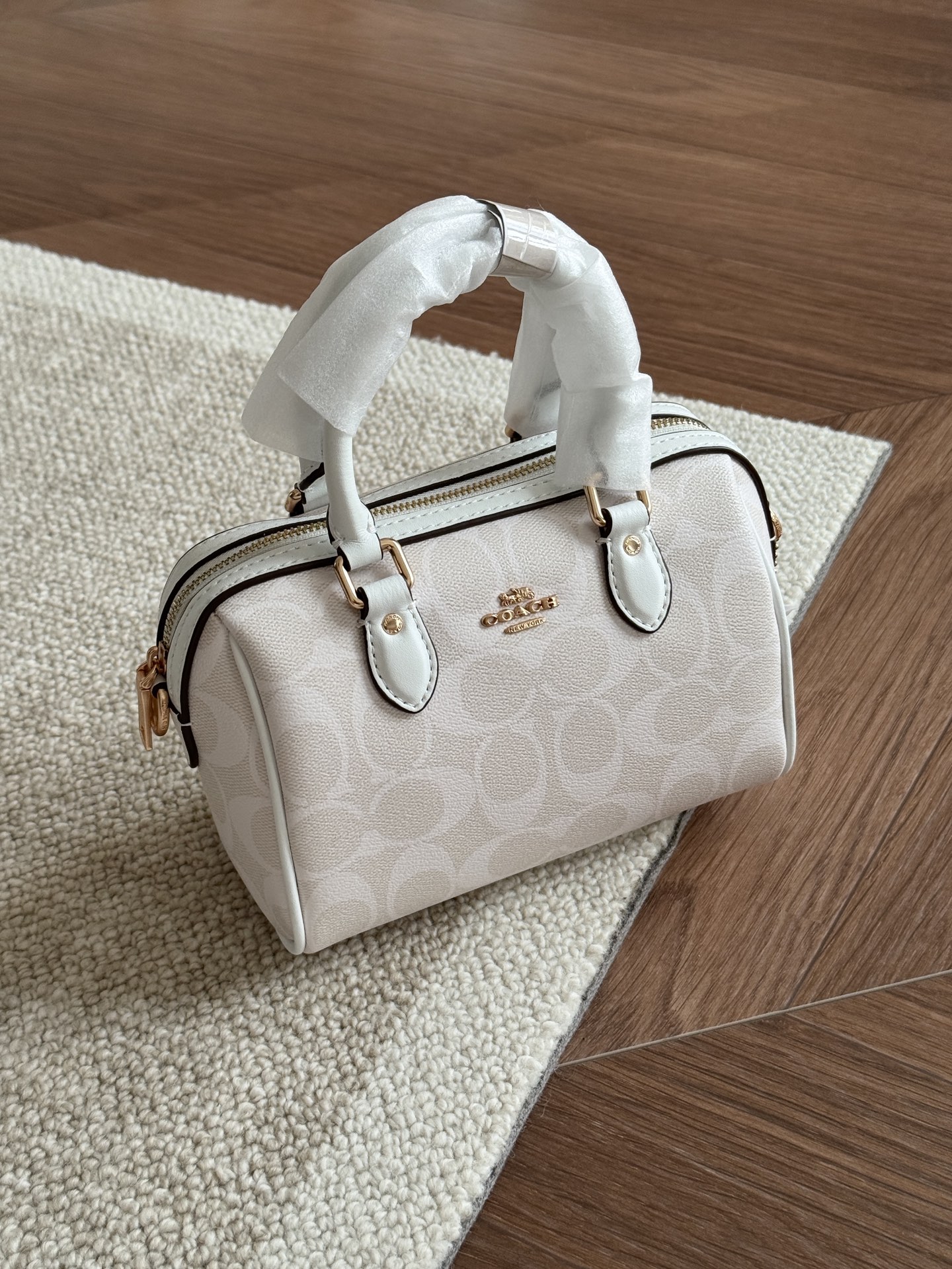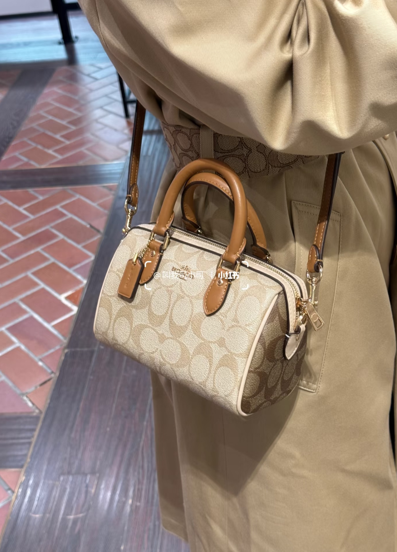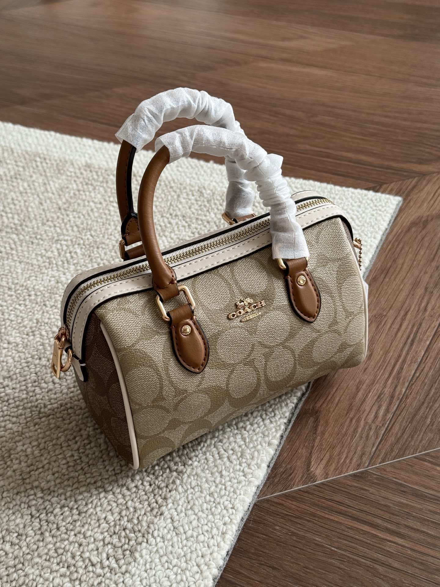 蔻驰迷你波士顿 Rowan mini枕头包 直接供给某平台的订单,经典枕头包版型,老花logo拼接 ,肩带可拆,斜挎手拎都可 ,拉链开合,配色很适合四季的颜色 ,小巧可爱,萌妹纸的最爱 尺寸:17.5*10*12.2cm