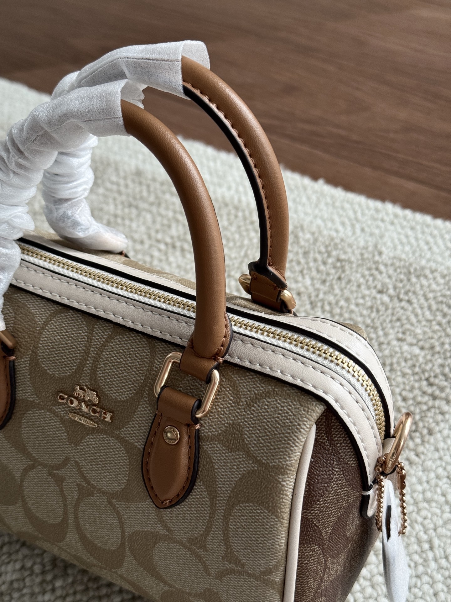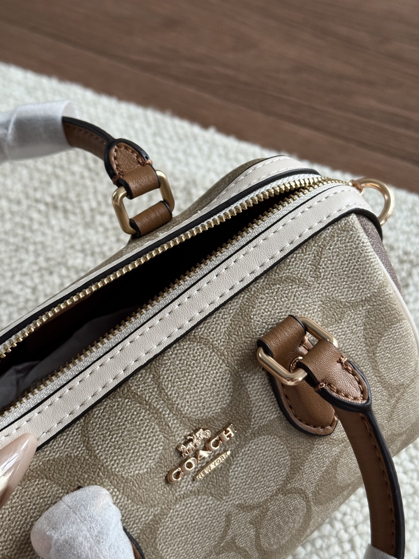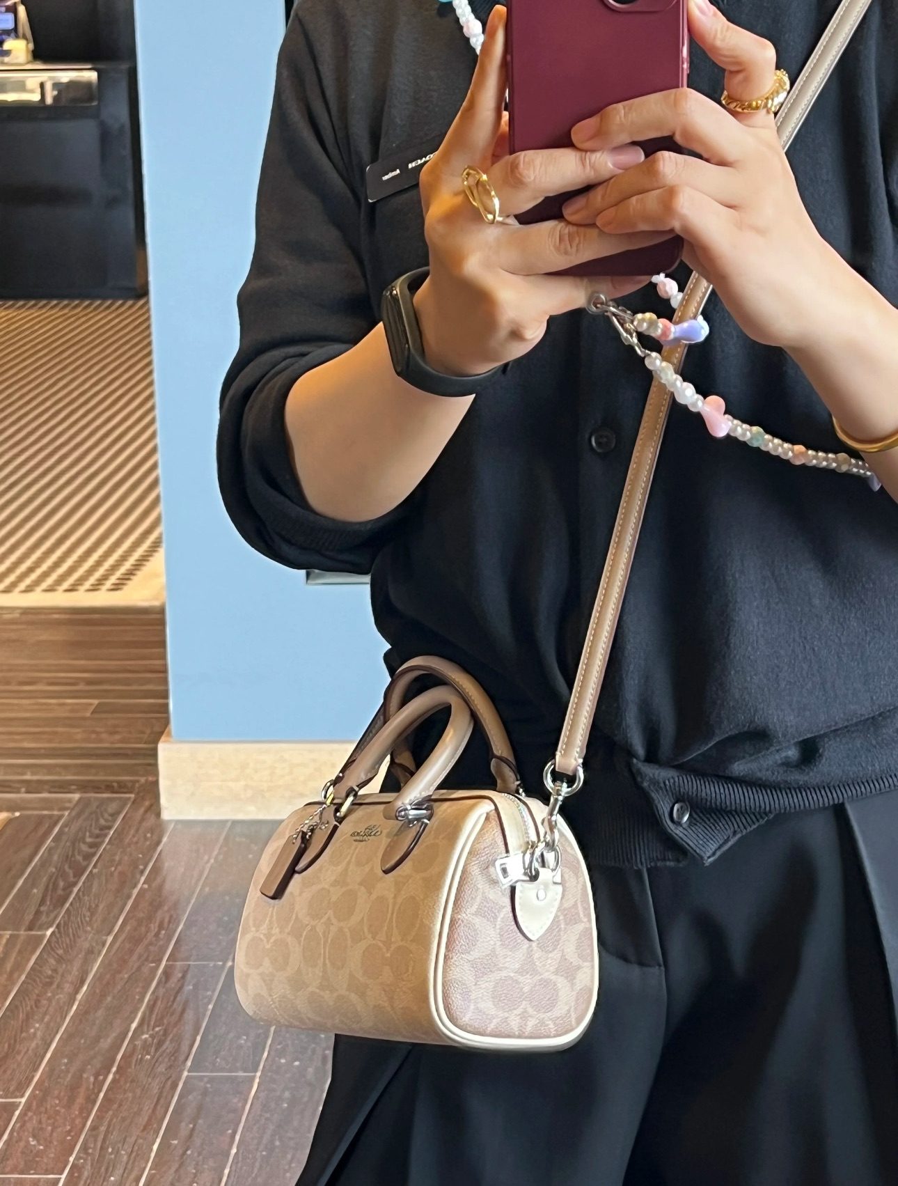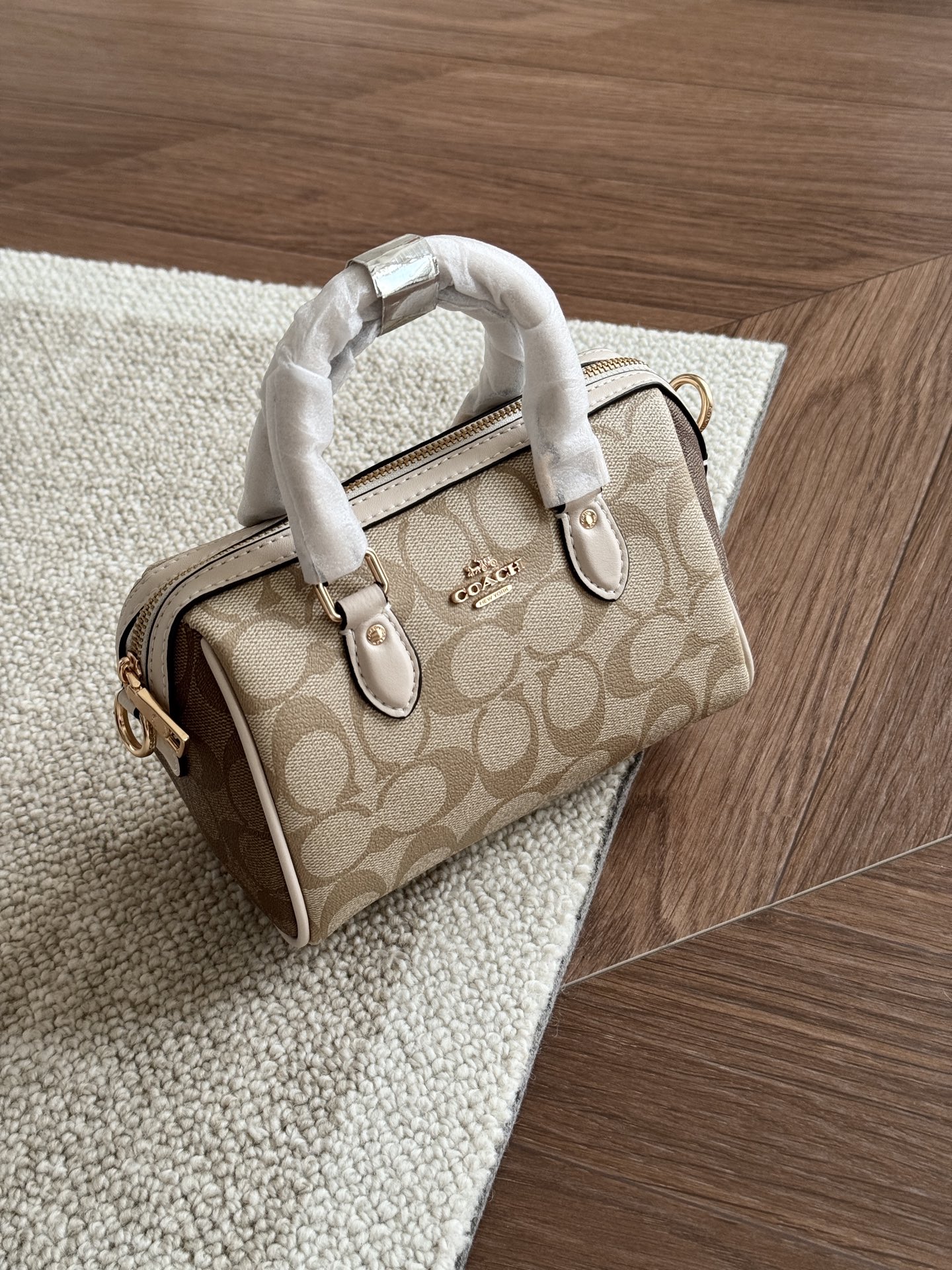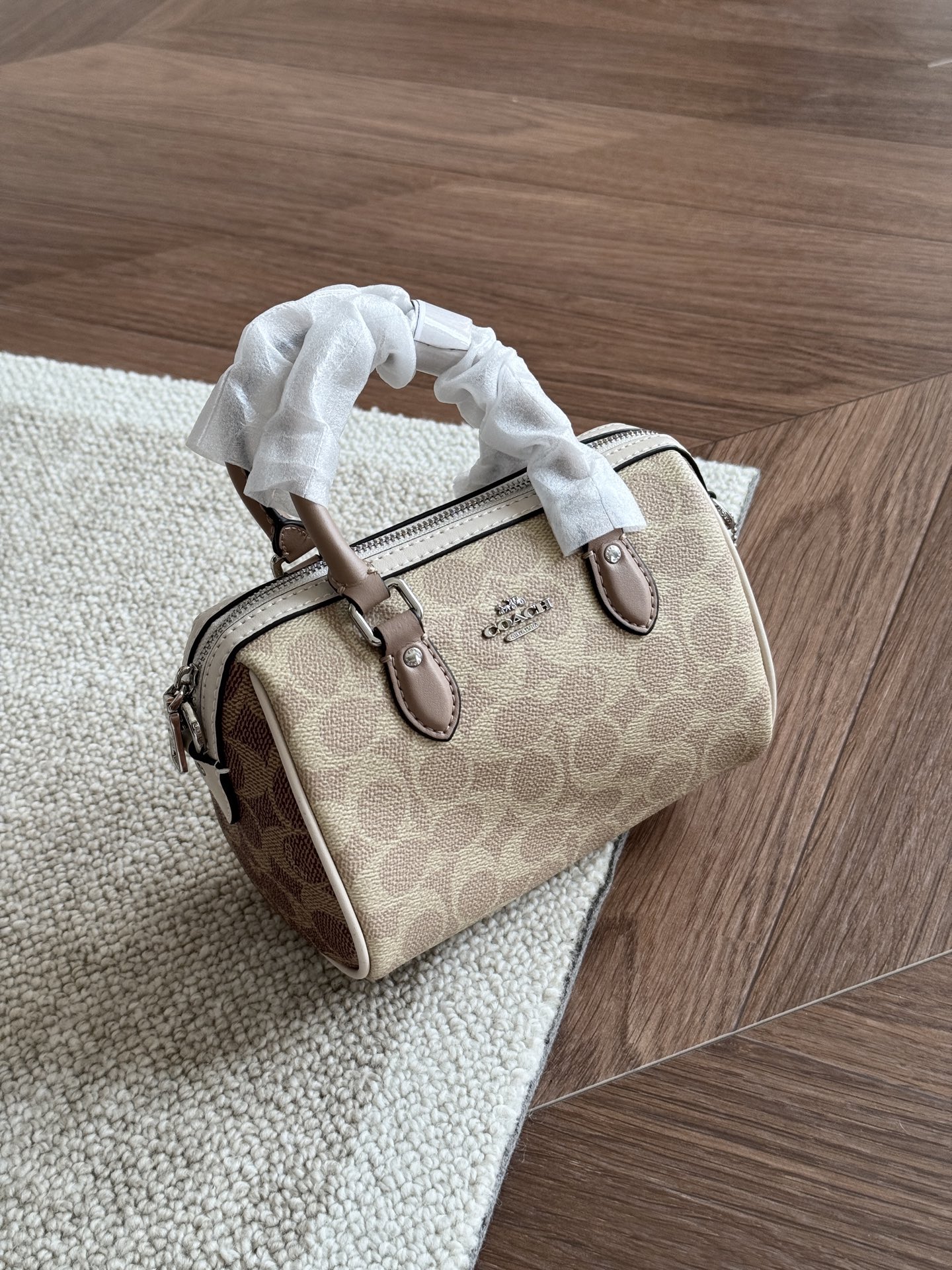 蔻驰迷你波士顿 Rowan mini枕头包 直接供给某平台的订单,经典枕头包版型,老花logo拼接 ,肩带可拆,斜挎手拎都可 ,拉链开合,配色很适合四季的颜色 ,小巧可爱,萌妹纸的最爱 尺寸:17.5*10*12.2cm