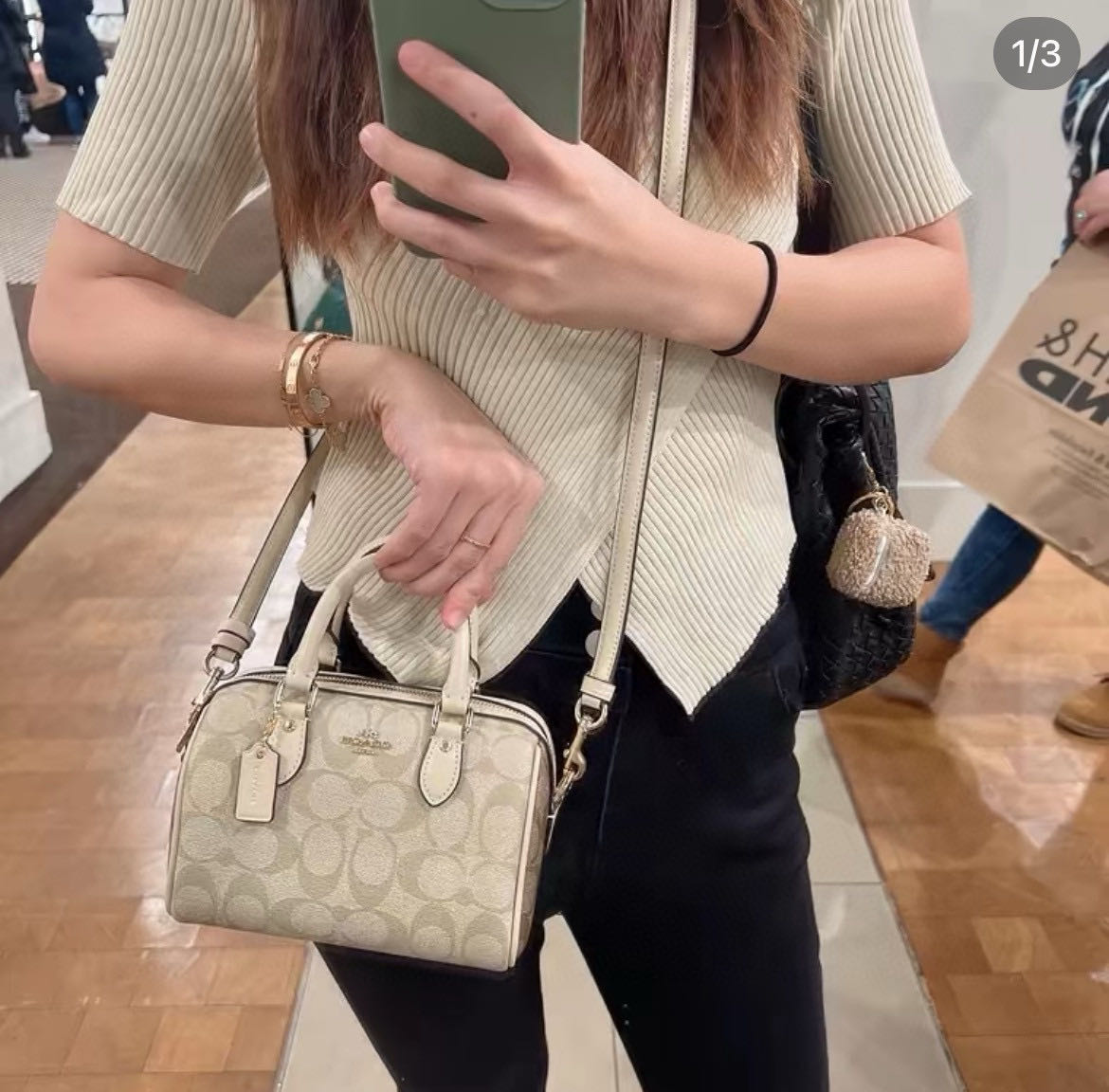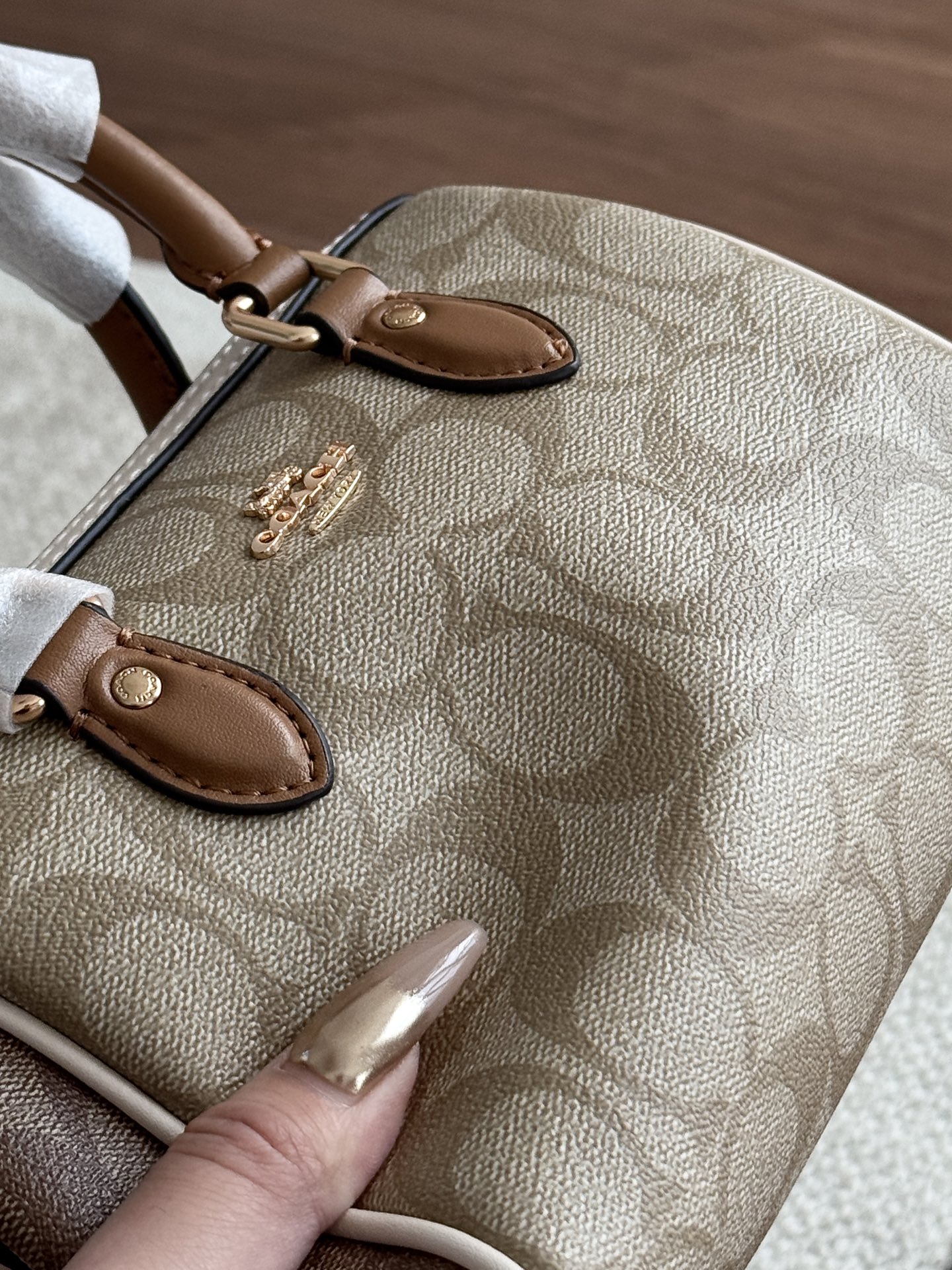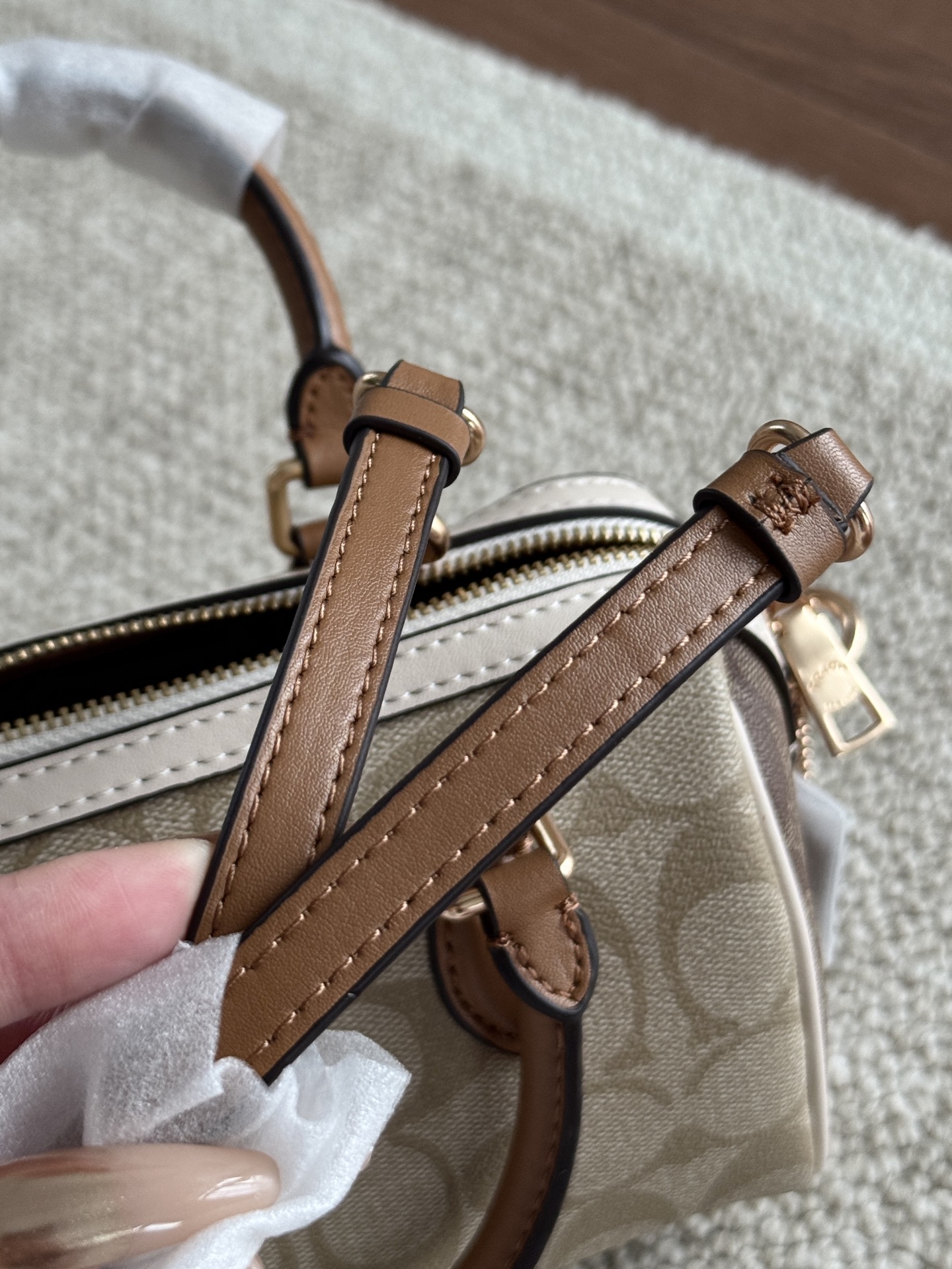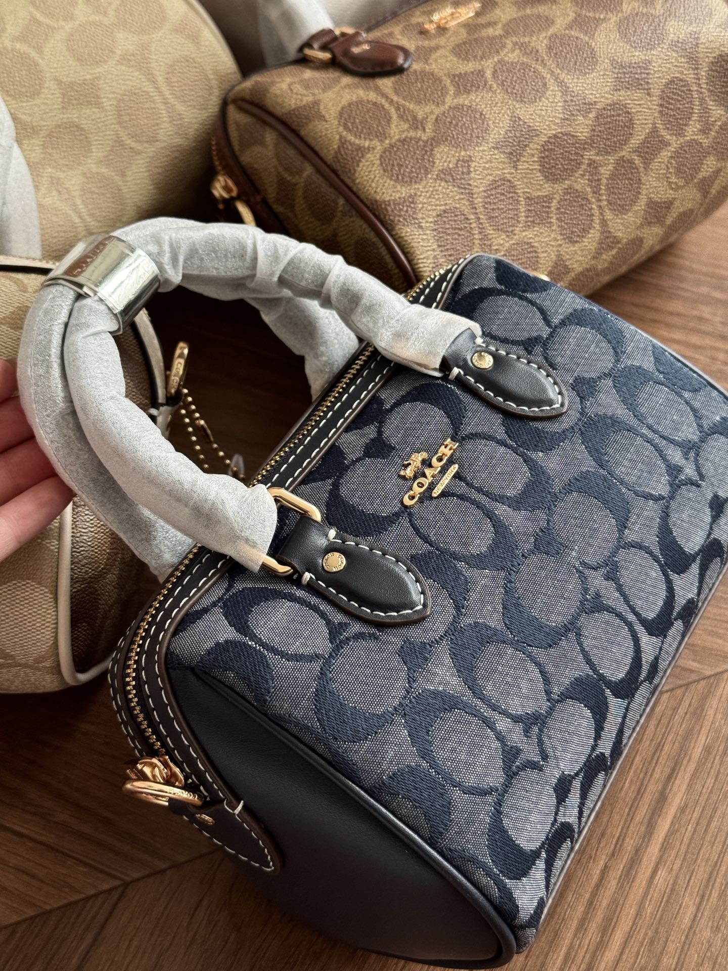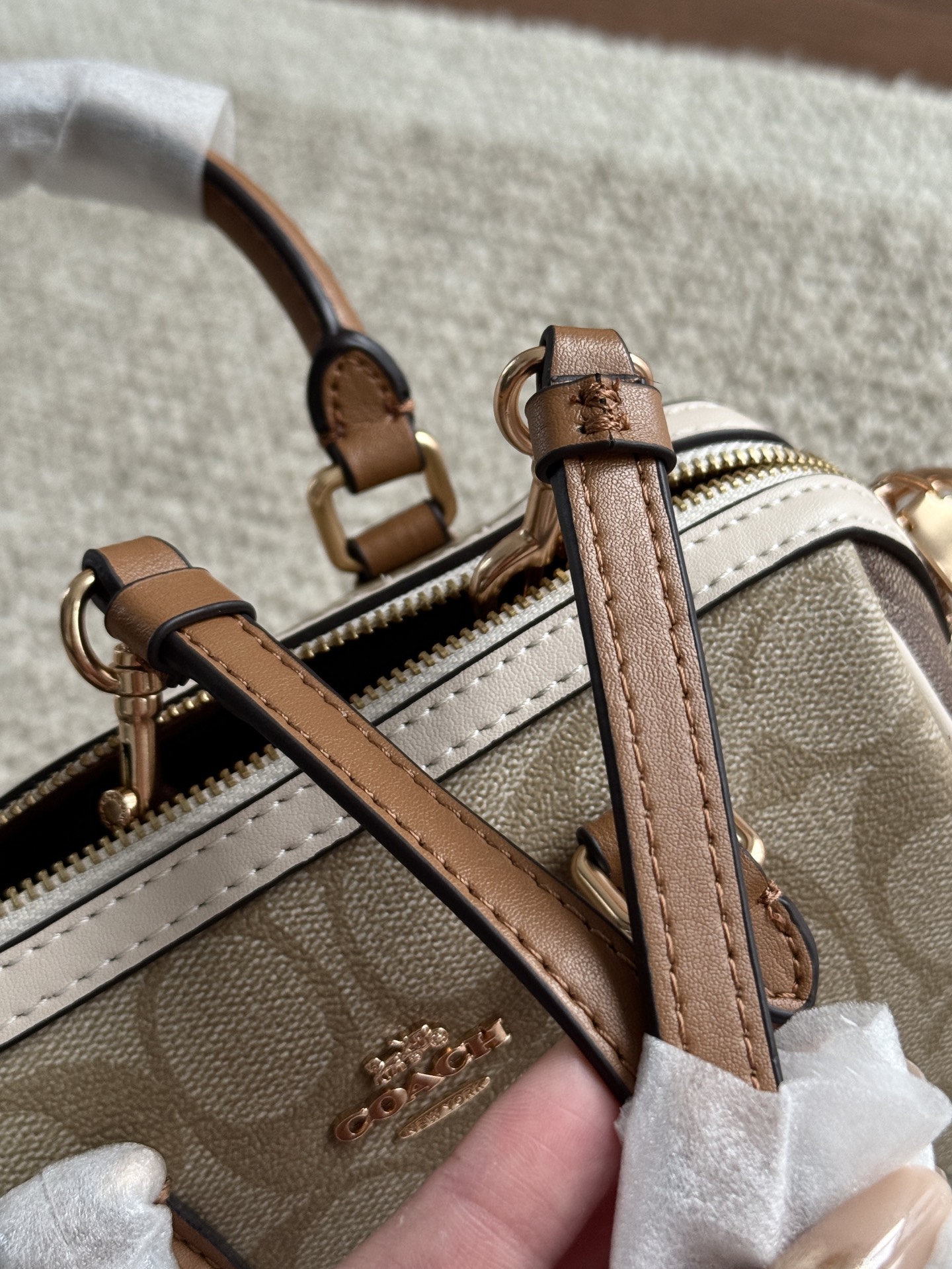 蔻驰迷你波士顿 Rowan mini枕头包 直接供给某平台的订单,经典枕头包版型,老花logo拼接 ,肩带可拆,斜挎手拎都可 ,拉链开合,配色很适合四季的颜色 ,小巧可爱,萌妹纸的最爱 尺寸:17.5*10*12.2cm
