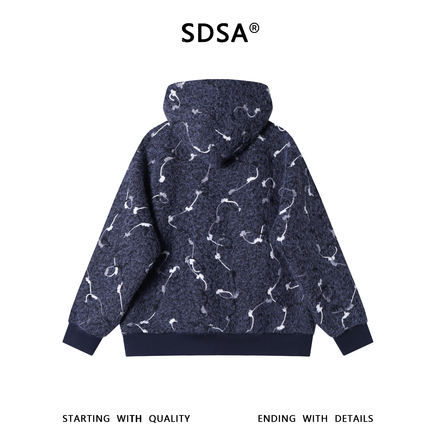 55139秋冬新款复古重工水洗几何图案潮流宽松连帽情侣休闲长袖