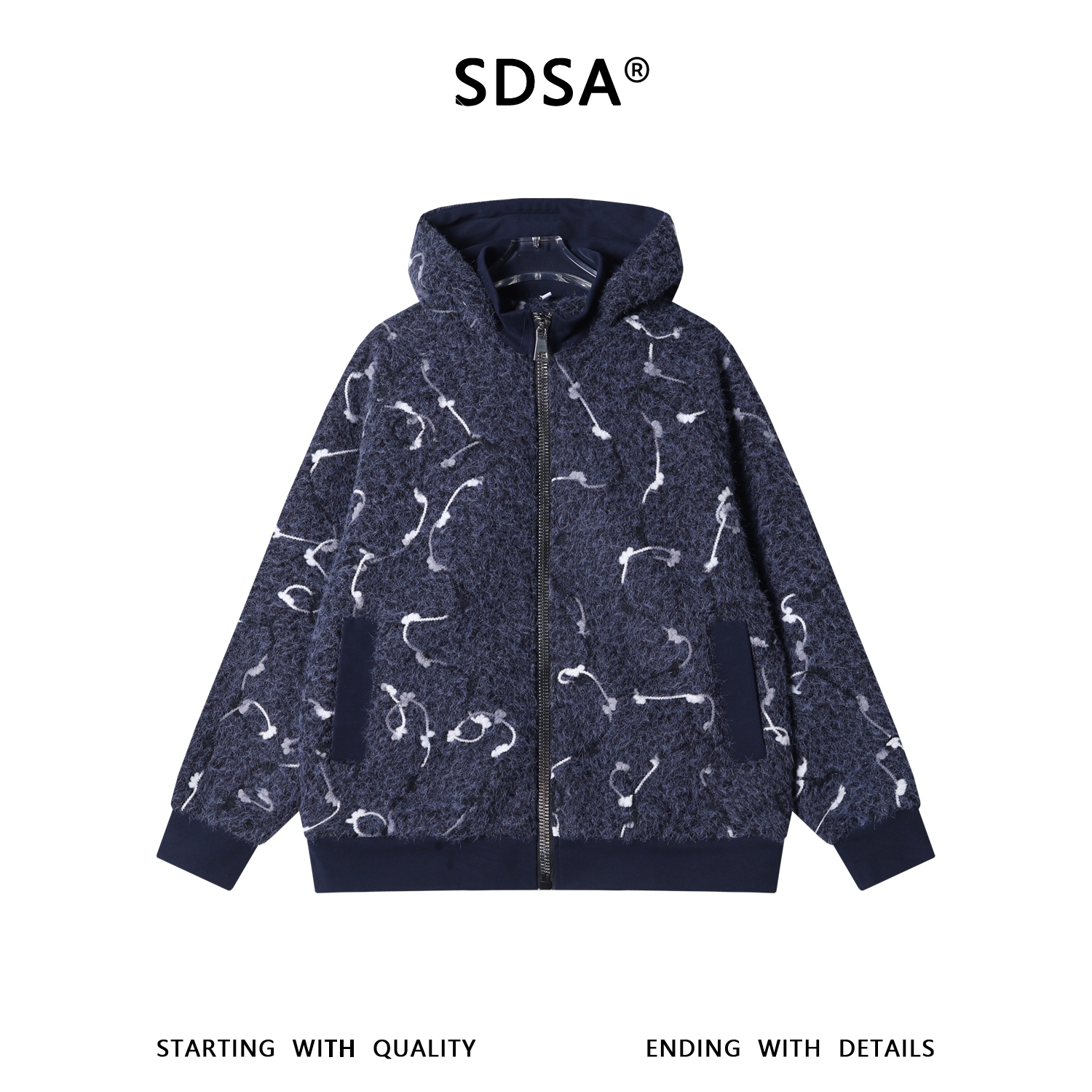 WT246SDSA男士秋冬新款痞帅男装重磅绒毛提花开衫拉链抽绳连帽卫衣百搭
