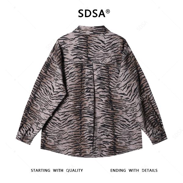 J9833SDSA男士秋冬新款痞帅男装撞色斑马纹翻领长袖衬衫复古百搭衬衣
