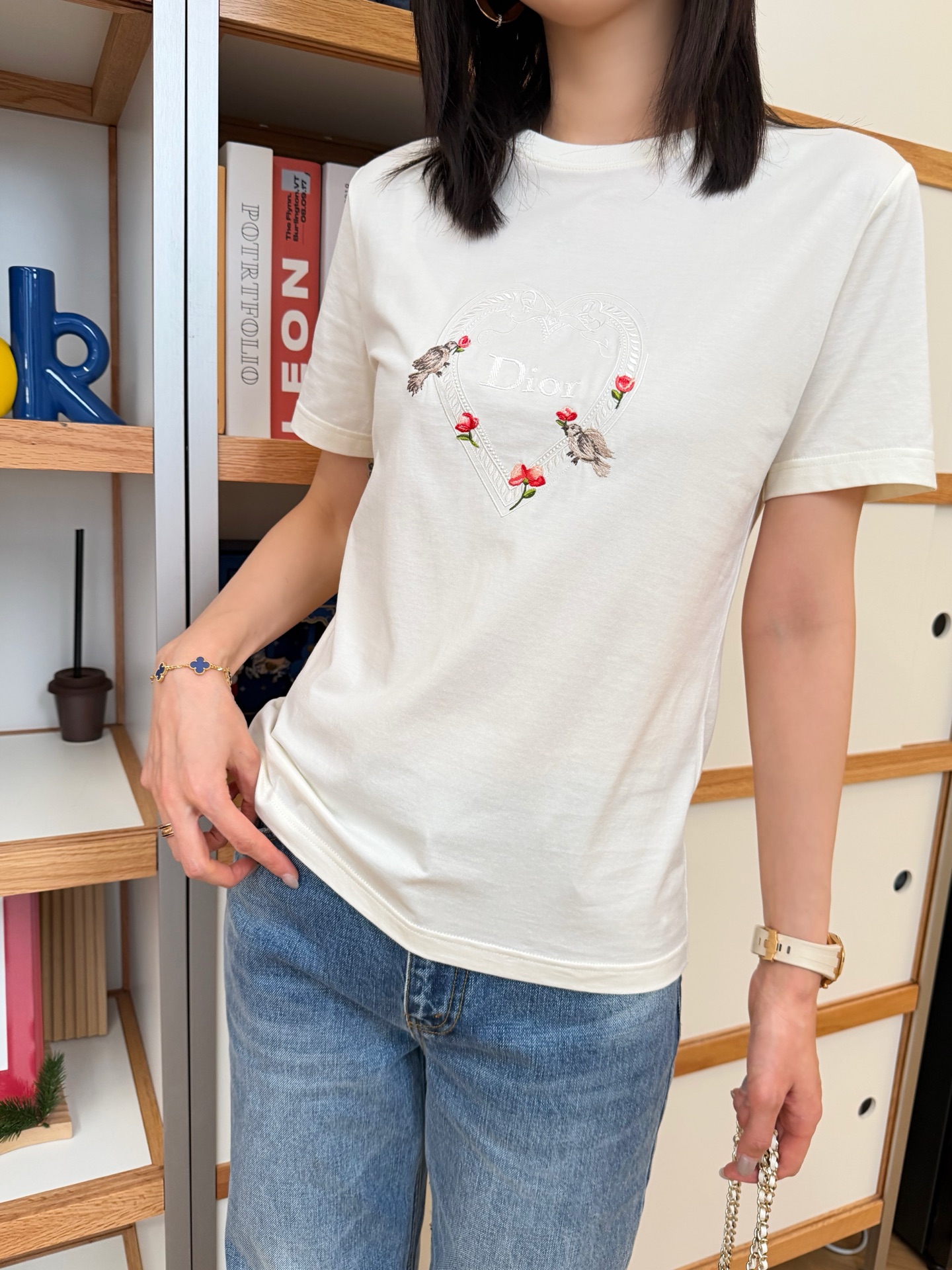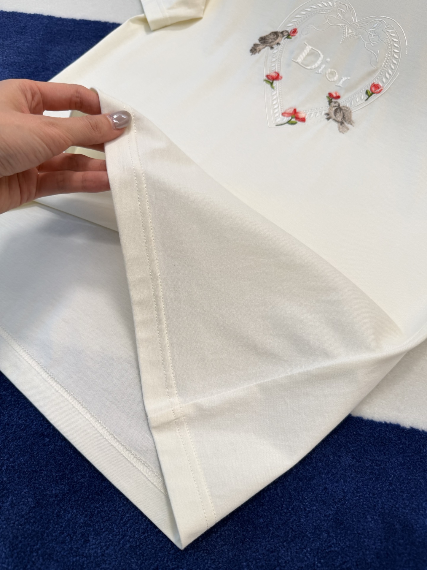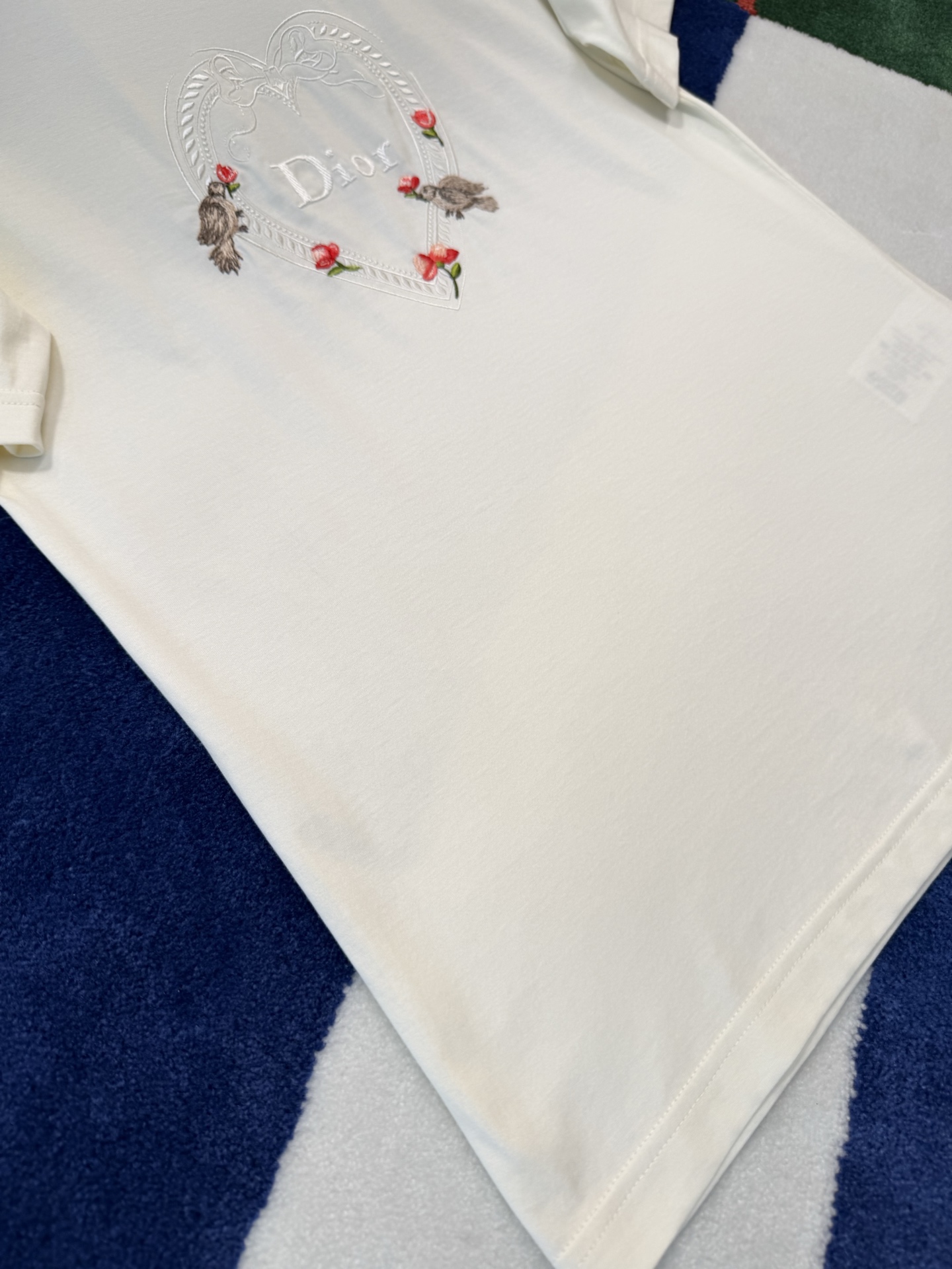 最新限定系列 T恤,这款立体爱心刺绣T恤,,真的太好看了叭‼️ 简直少女心爆棚,Doves & Roses 图案致敬普世之爱,质感细腻又精致,可爱又不失优雅,是很日常很好穿的百搭单品,个性又有时髦态度🫶🏻温柔智中透露着满满的高级感,真的可以闭眼入的百搭款T恤,妥妥的大爆款,姐妹们必入〰️码数SML