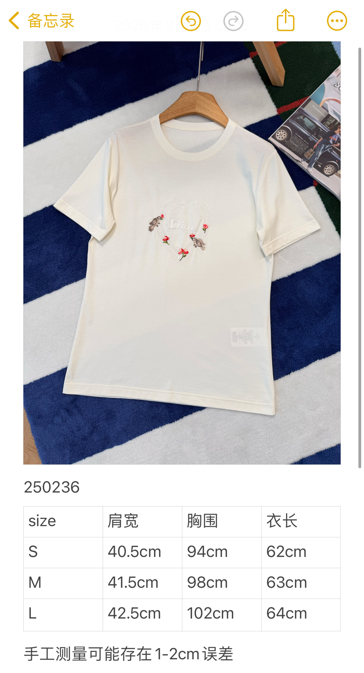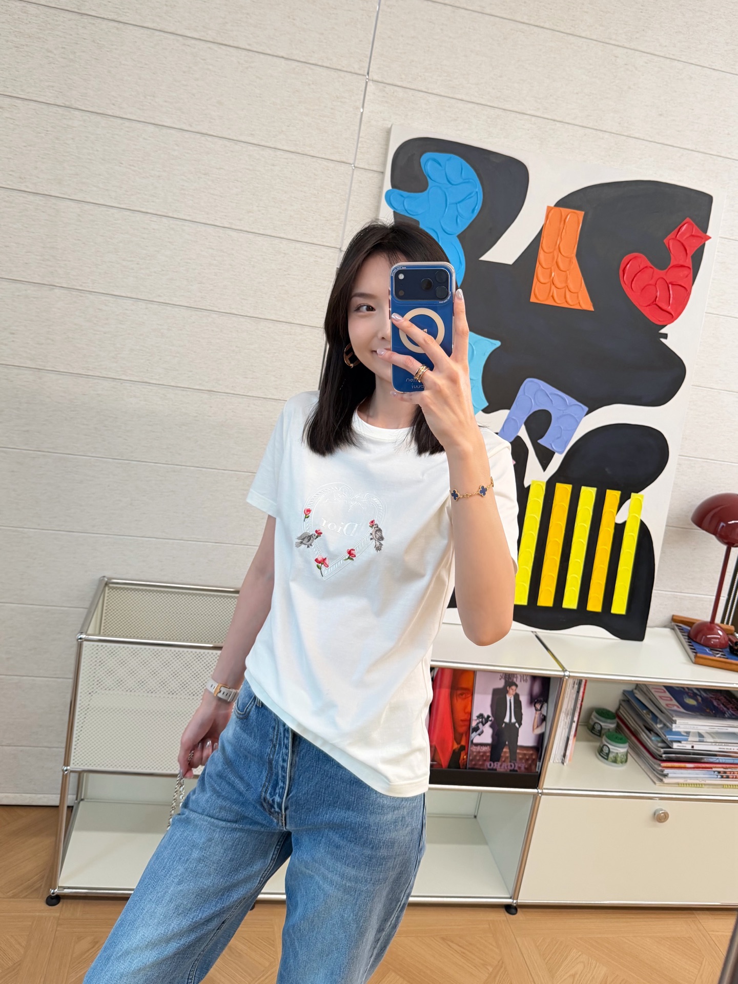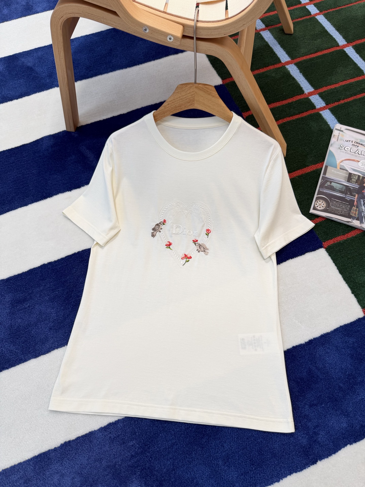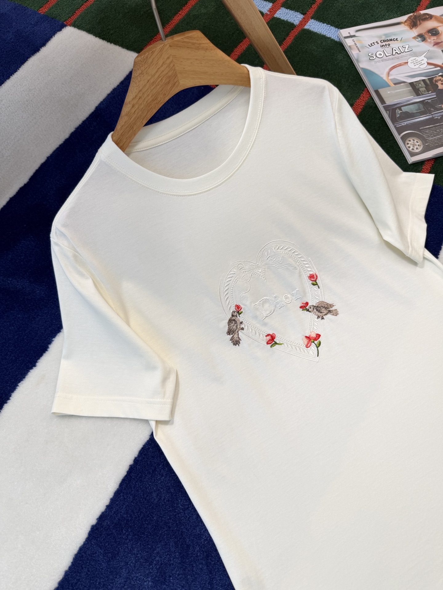 最新限定系列 T恤,这款立体爱心刺绣T恤,,真的太好看了叭‼️ 简直少女心爆棚,Doves & Roses 图案致敬普世之爱,质感细腻又精致,可爱又不失优雅,是很日常很好穿的百搭单品,个性又有时髦态度🫶🏻温柔智中透露着满满的高级感,真的可以闭眼入的百搭款T恤,妥妥的大爆款,姐妹们必入〰️码数SML