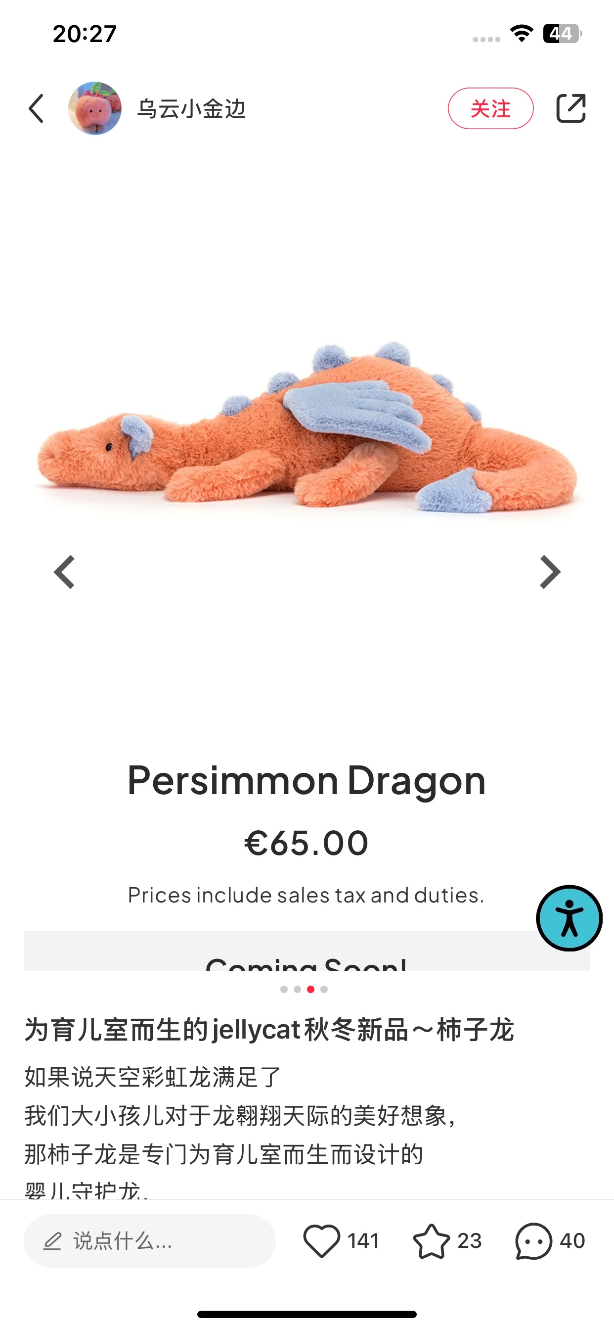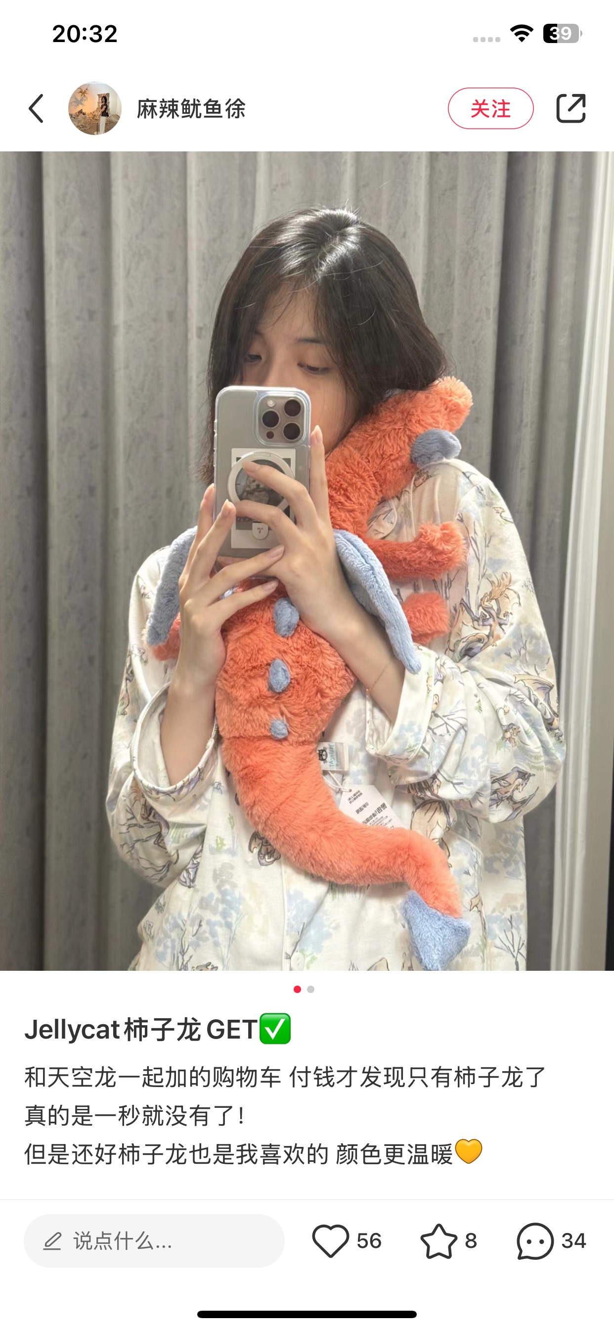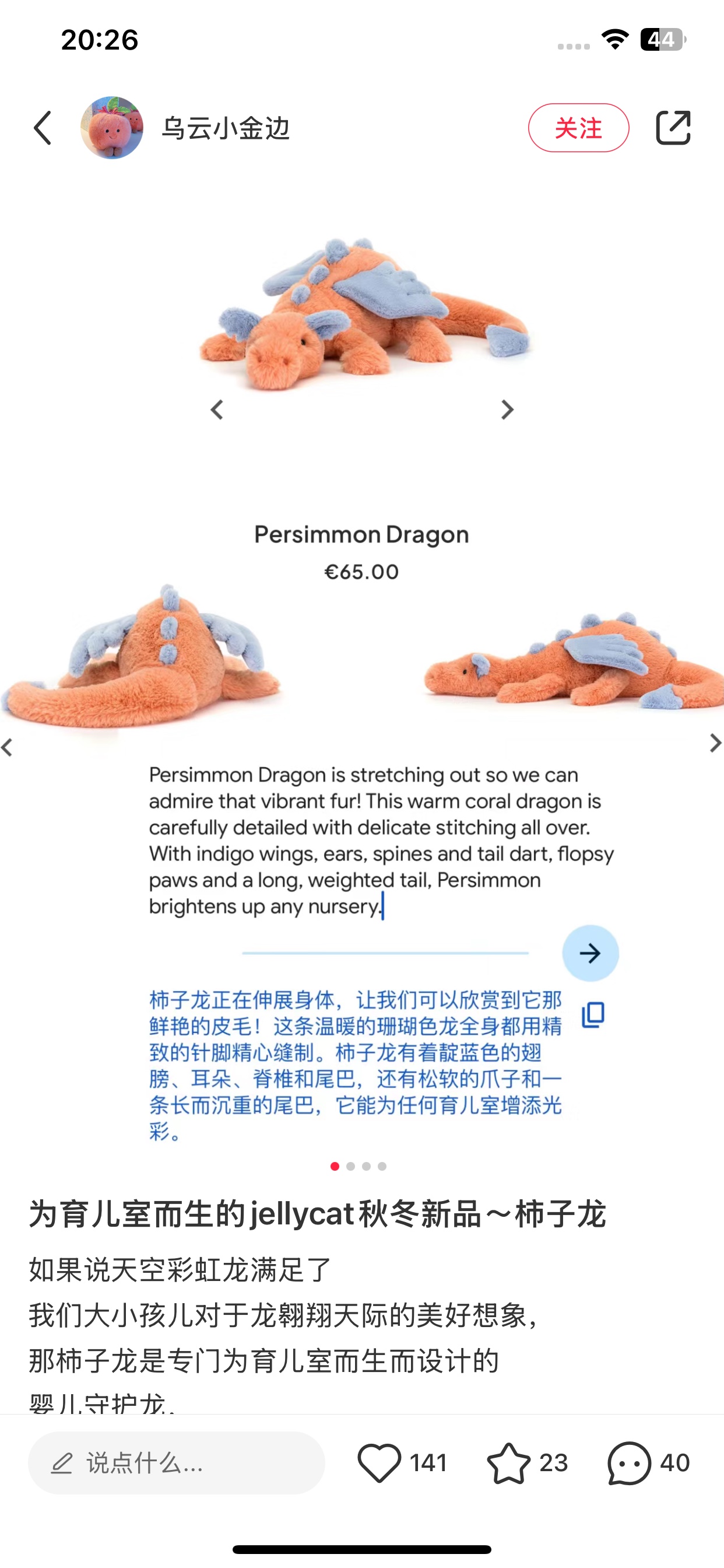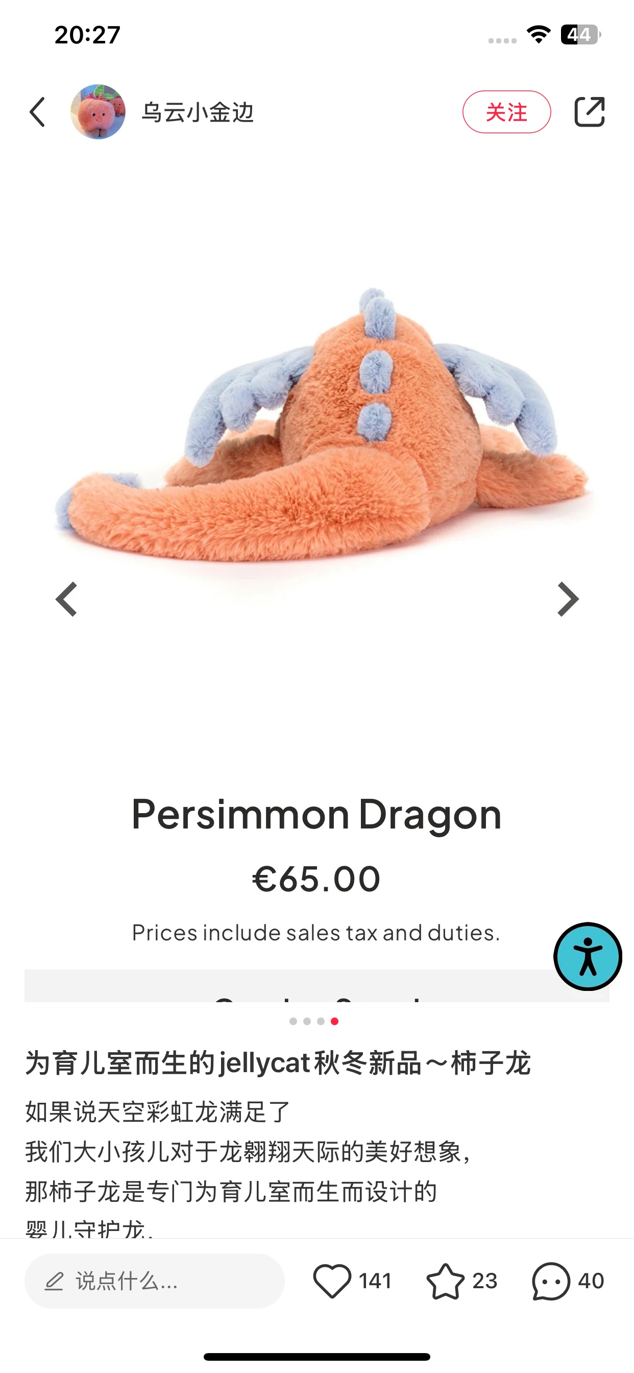 Jellycat 雪龙系列柿子龙 超火 的一款