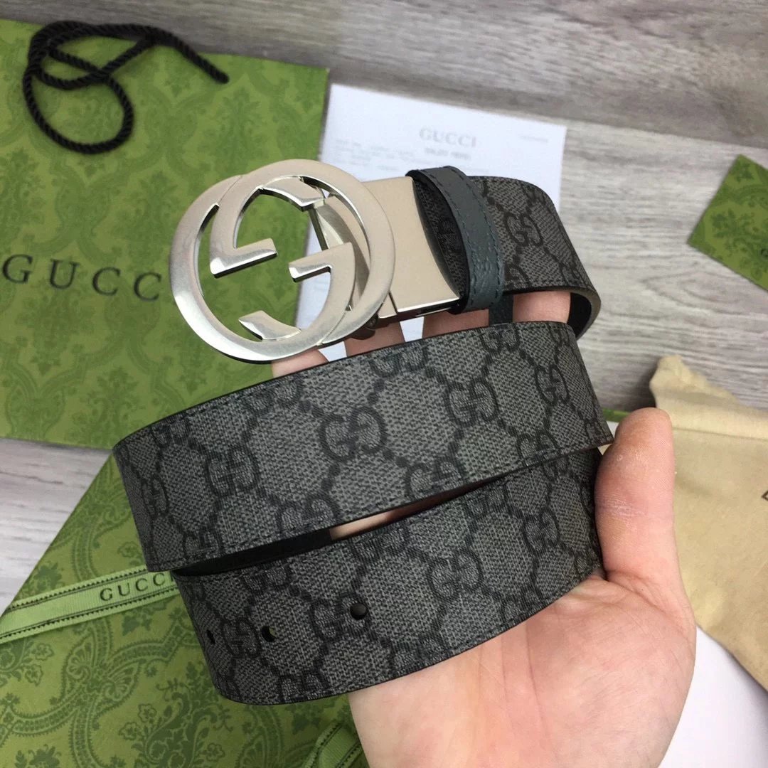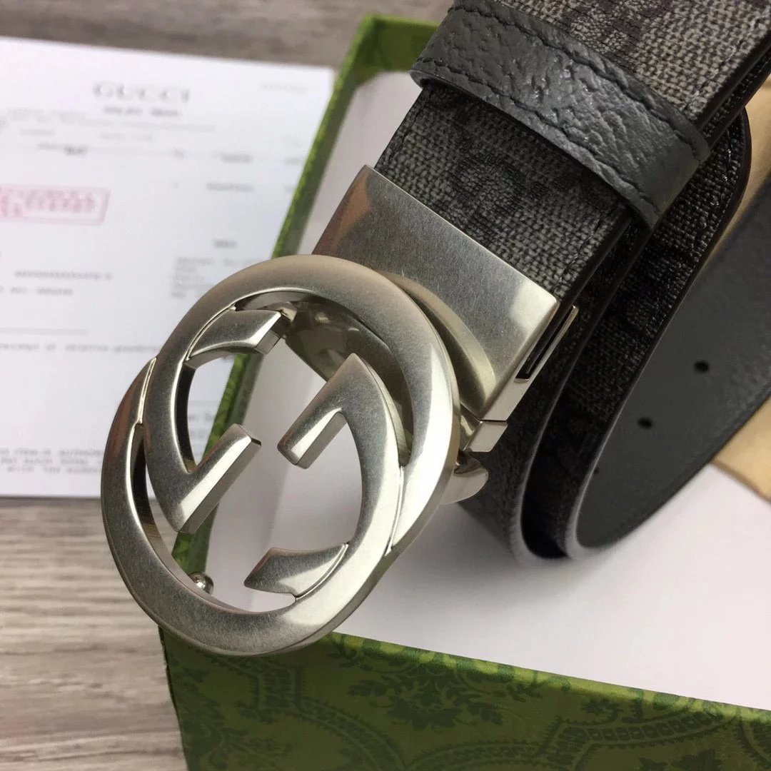 古家|23新款3.7cm老花GG搭扣双面腰带皮带|gz p專櫃在售 3.7cm 品牌定制帆布灰色面料色系 衬托原厂猪皮纹灰色底 经典GG搭扣 双面 用