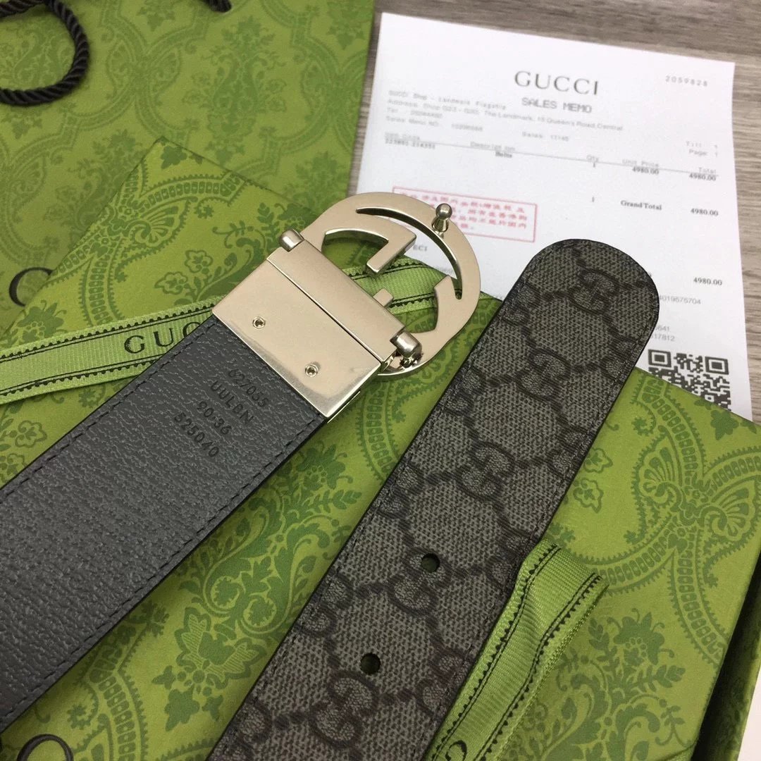 古家|23新款3.7cm老花GG搭扣双面腰带皮带|gz(CB)