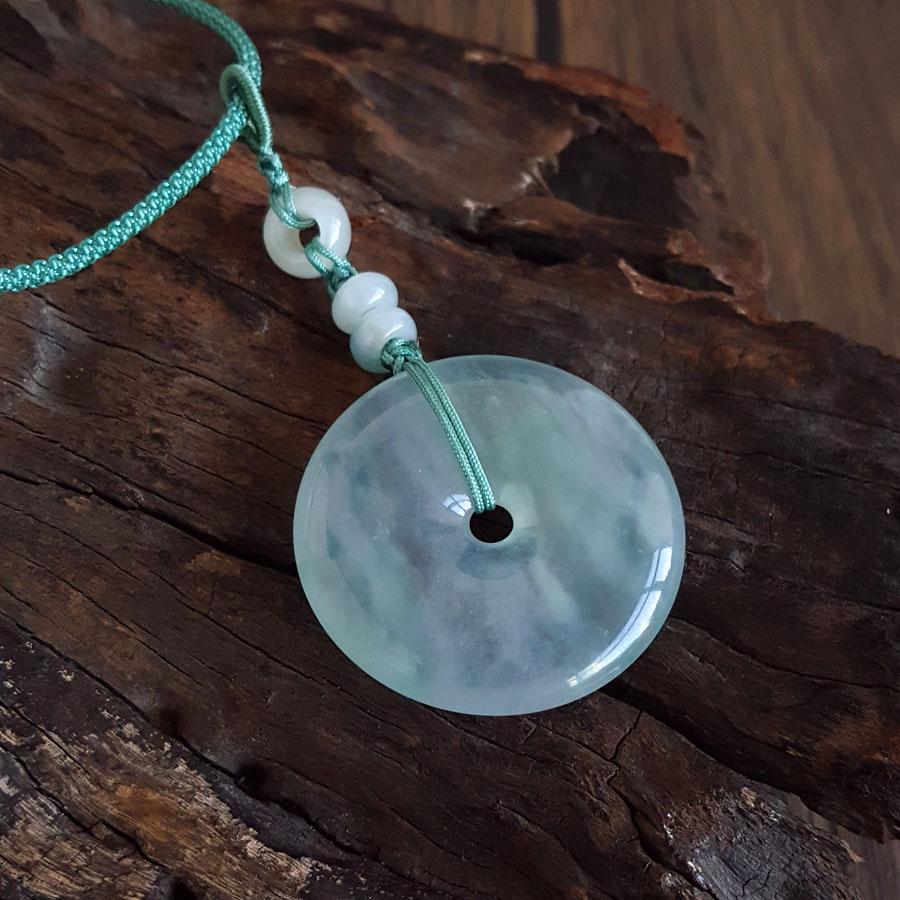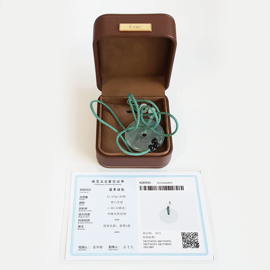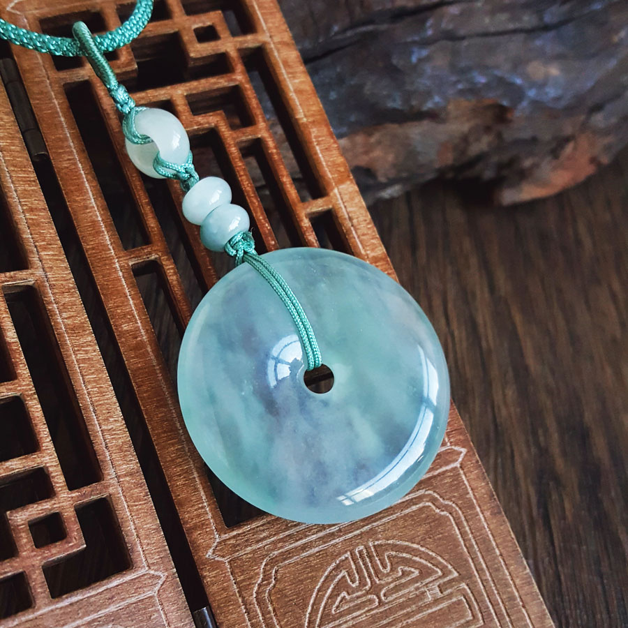 名称 | 天然收藏级细腻起荧老坑冰种飘蓝花平安扣翡翠吊坠项链 |