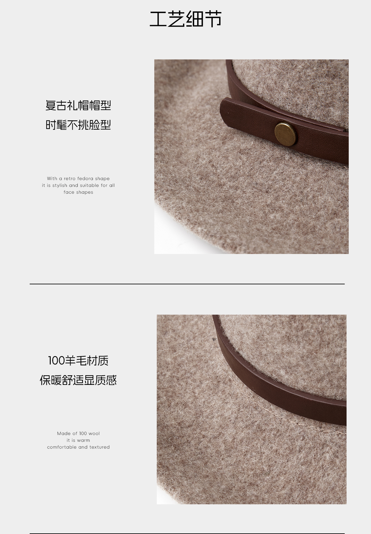 ROMI STUDIO“英伦爵士”100%羊毛高温定型挺括宽檐礼帽 RWCWP34960