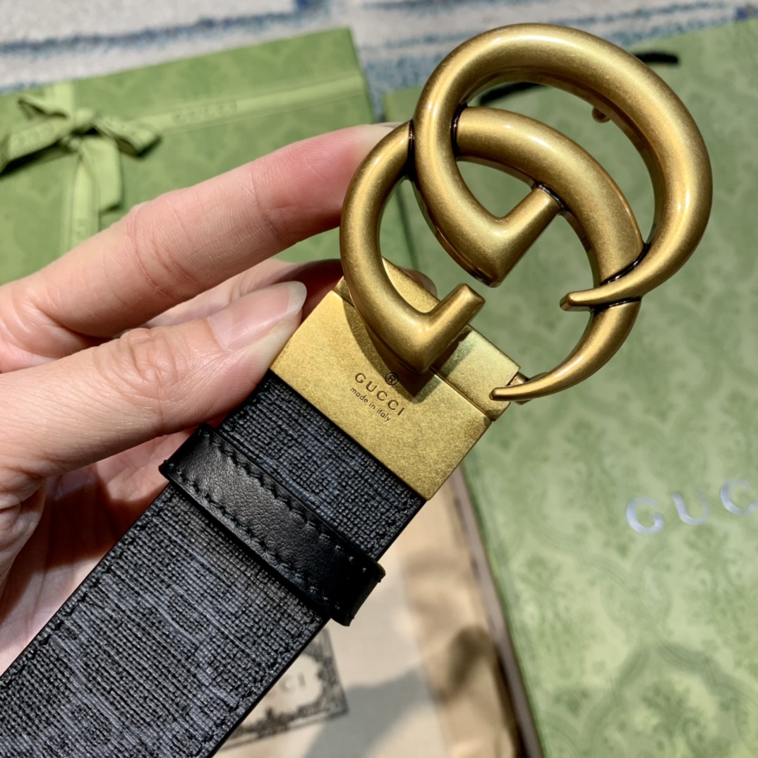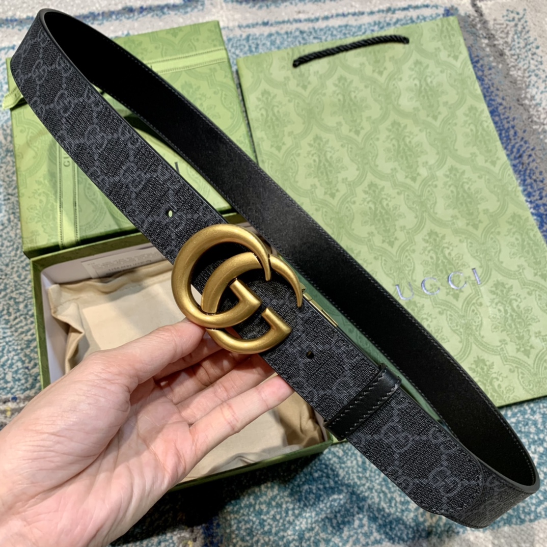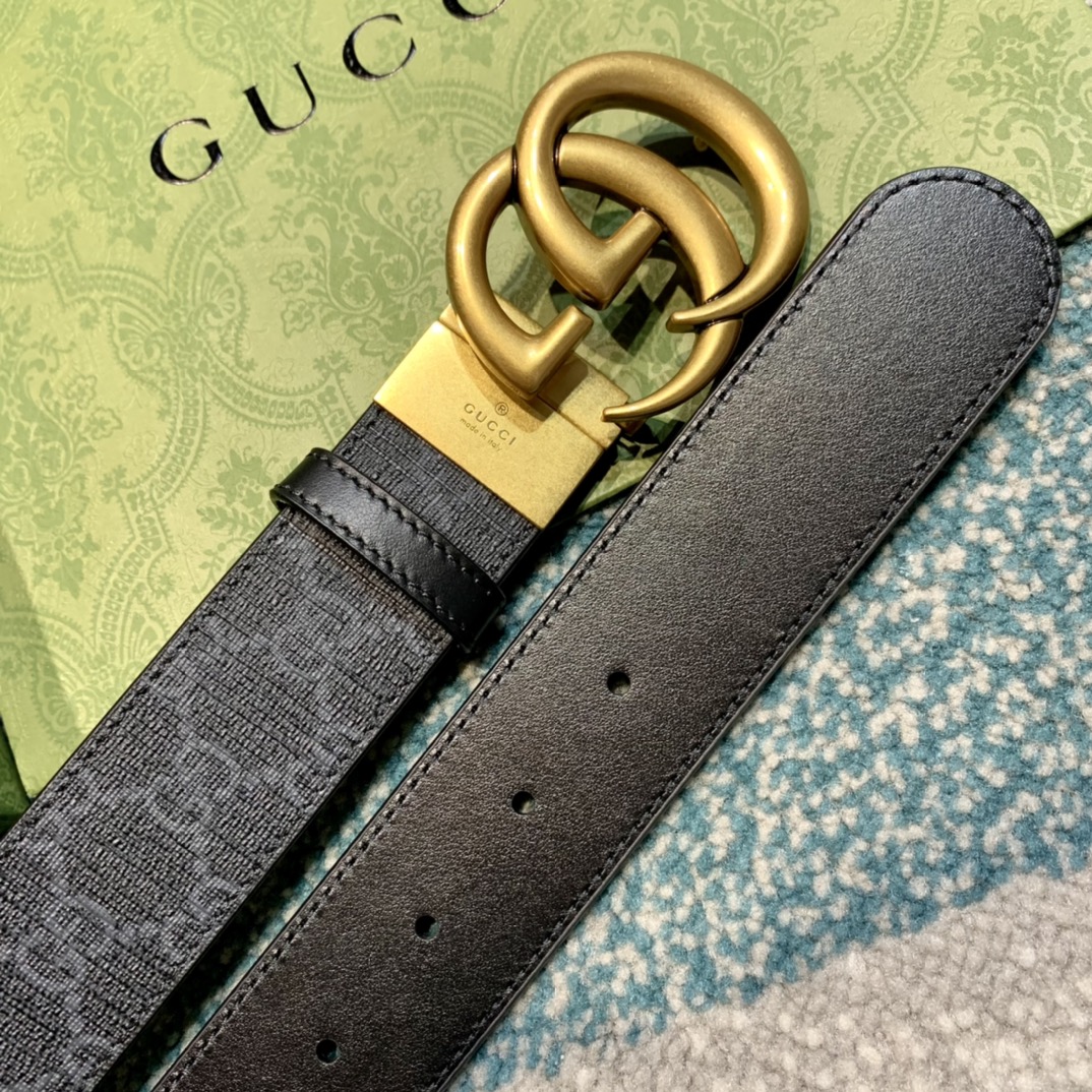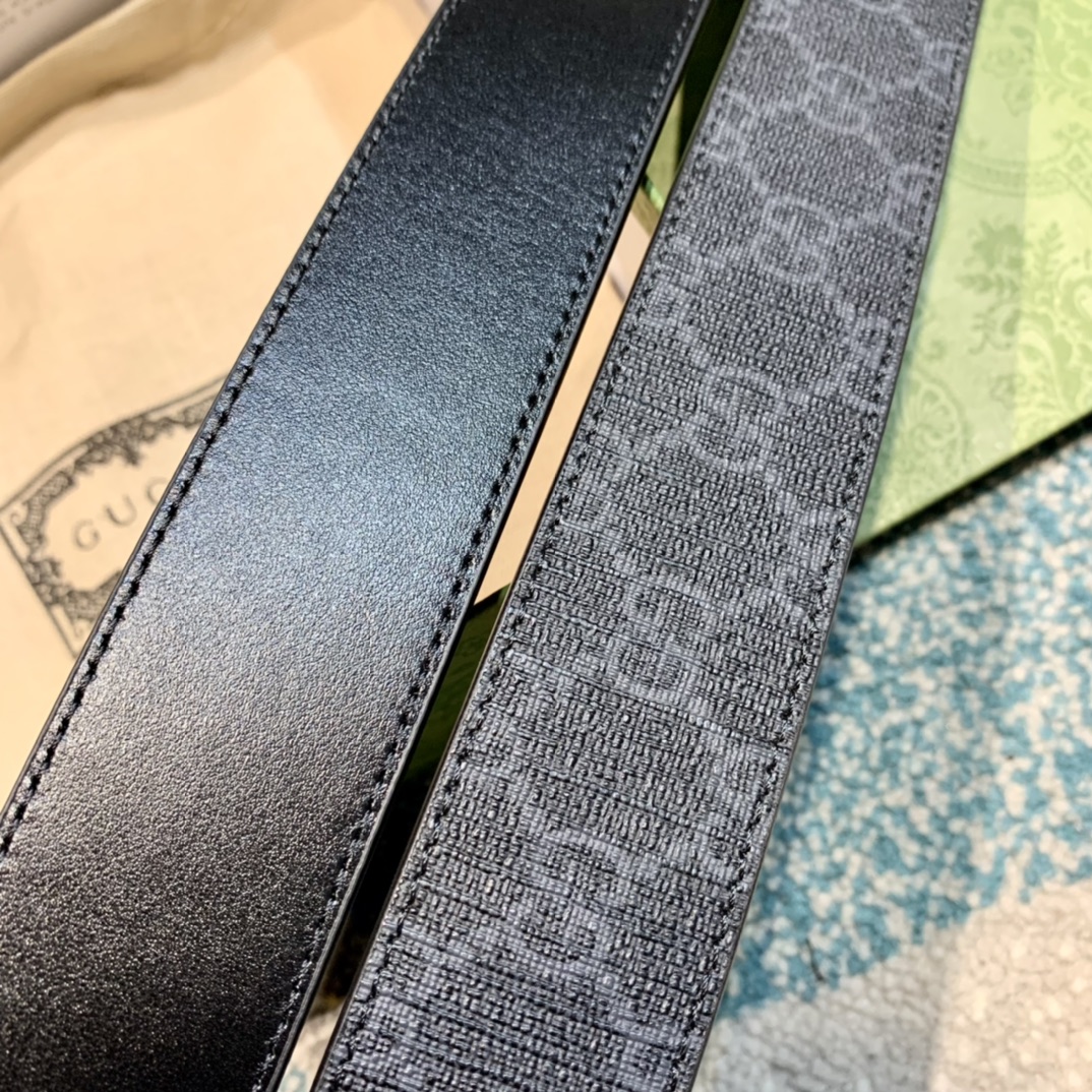 GU 情侣💏腰带 经典GG压印帆布面料 搭配黑色牛皮,旋转五金扣头 ,双面自由切换使用,时尚魅力大气上档次 🎁全套专柜包装