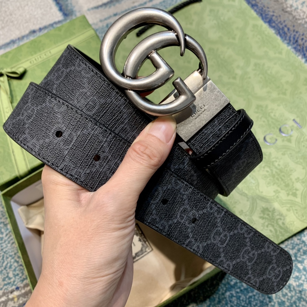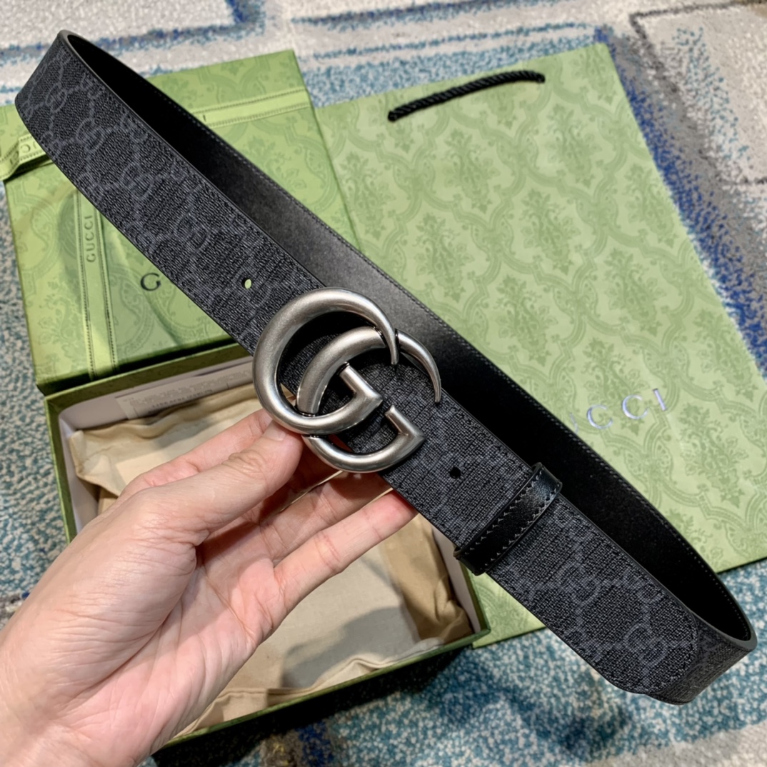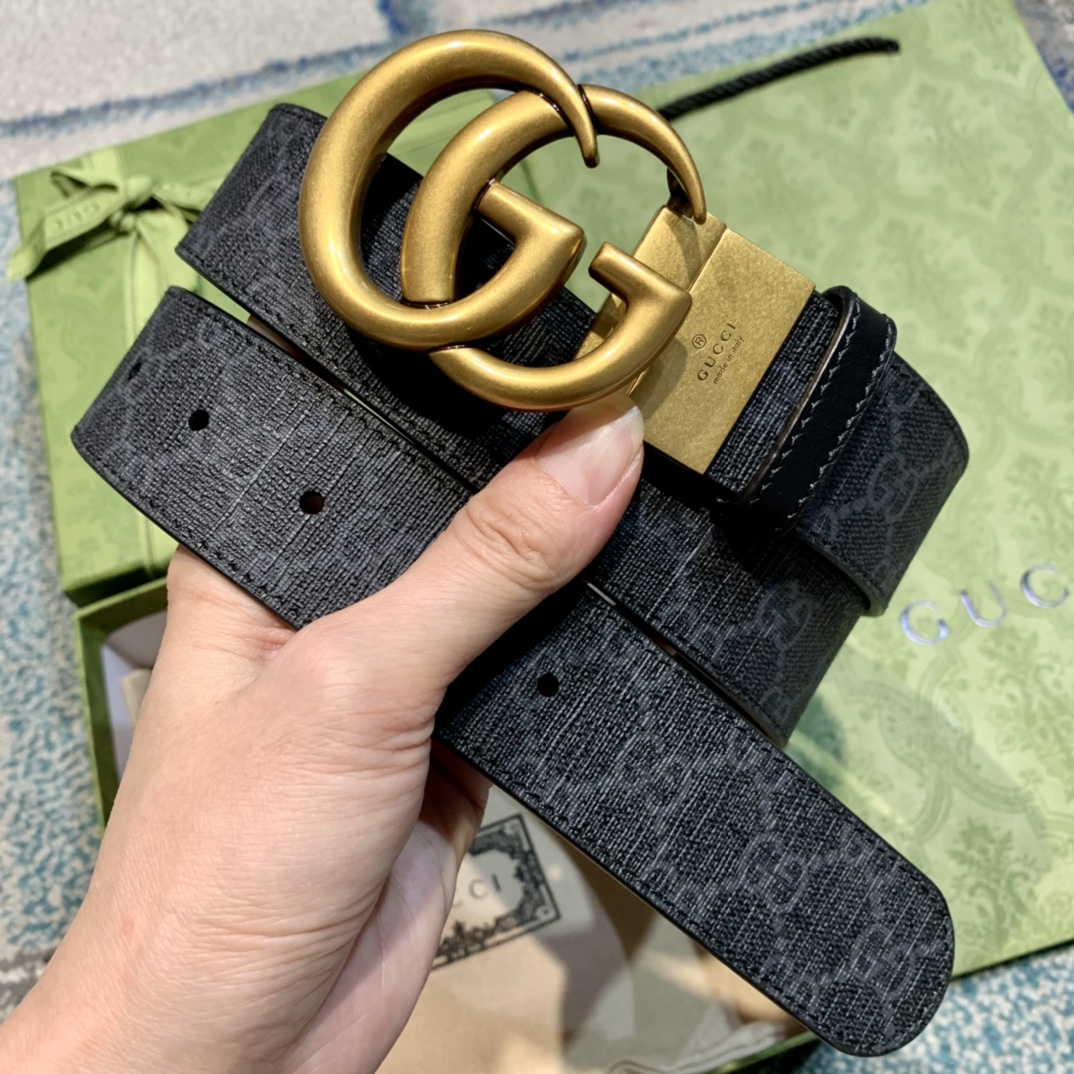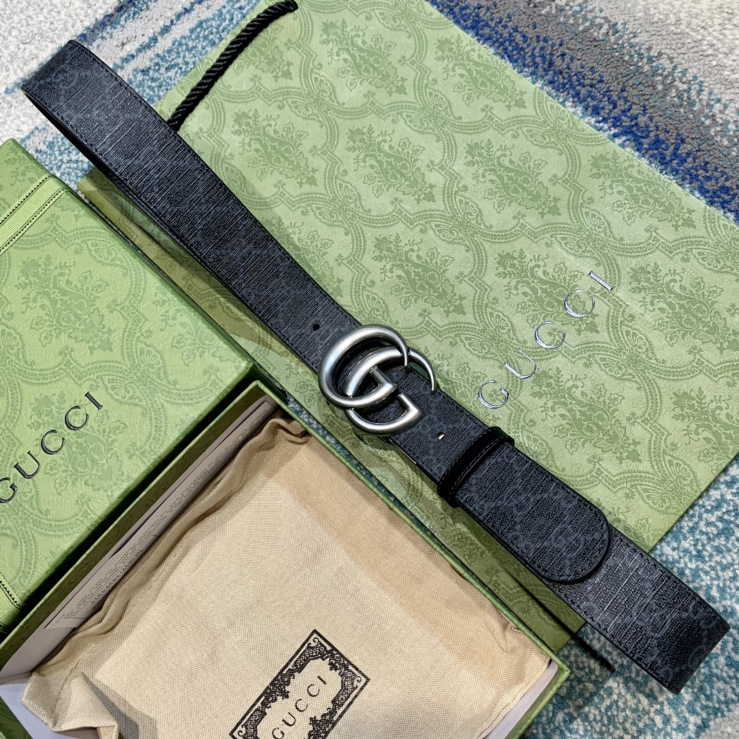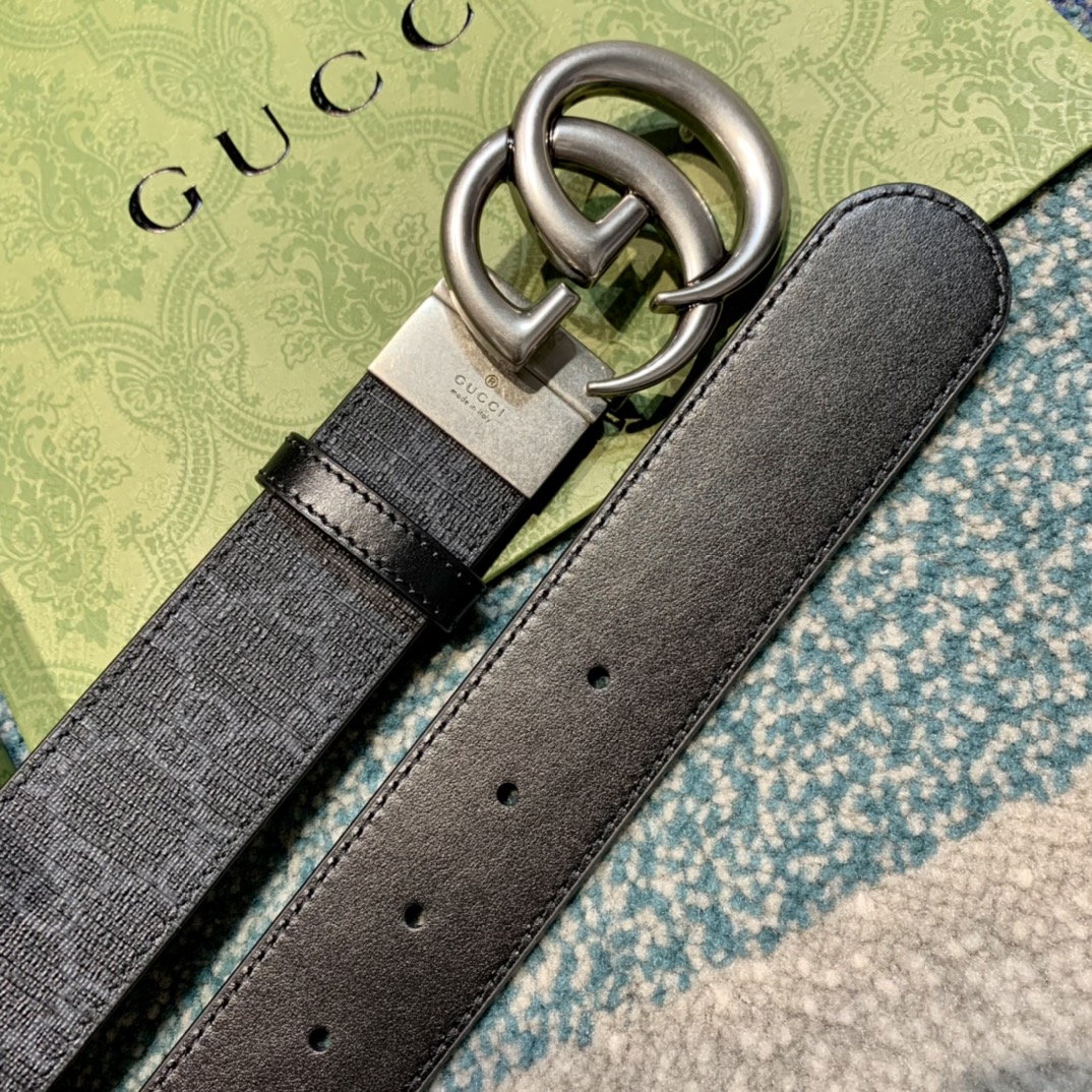 GU 情侣💏腰带 经典GG压印帆布面料 搭配黑色牛皮,旋转五金扣头 ,双面自由切换使用,时尚魅力大气上档次 🎁全套专柜包装