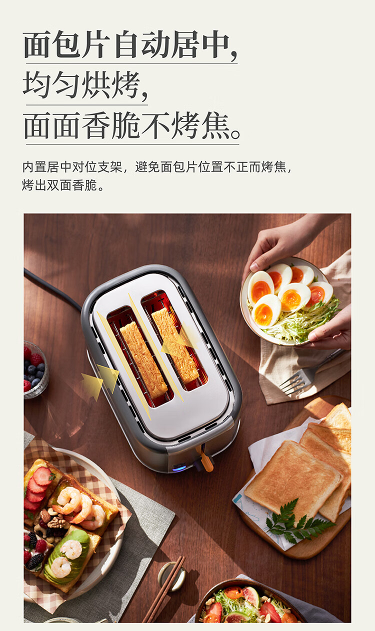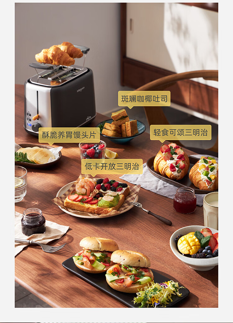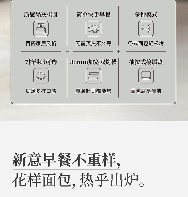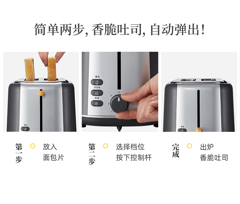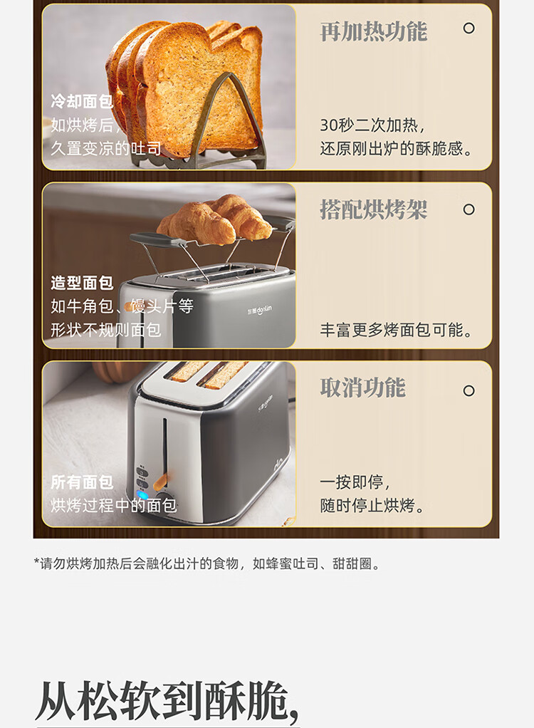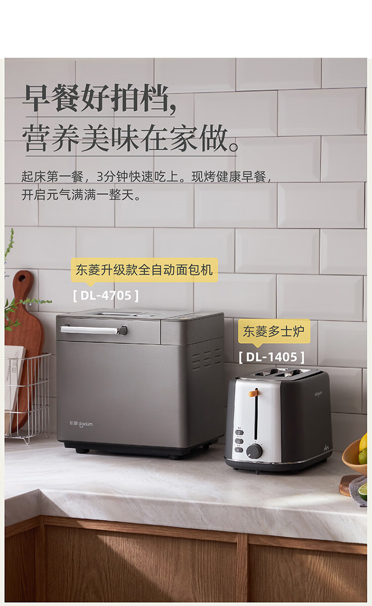 东菱(Donlim)烤面包片家用料理早餐机 2片宿舍小功率多士炉烤吐司神器DL-1405 7档烘烤百搭墨灰色