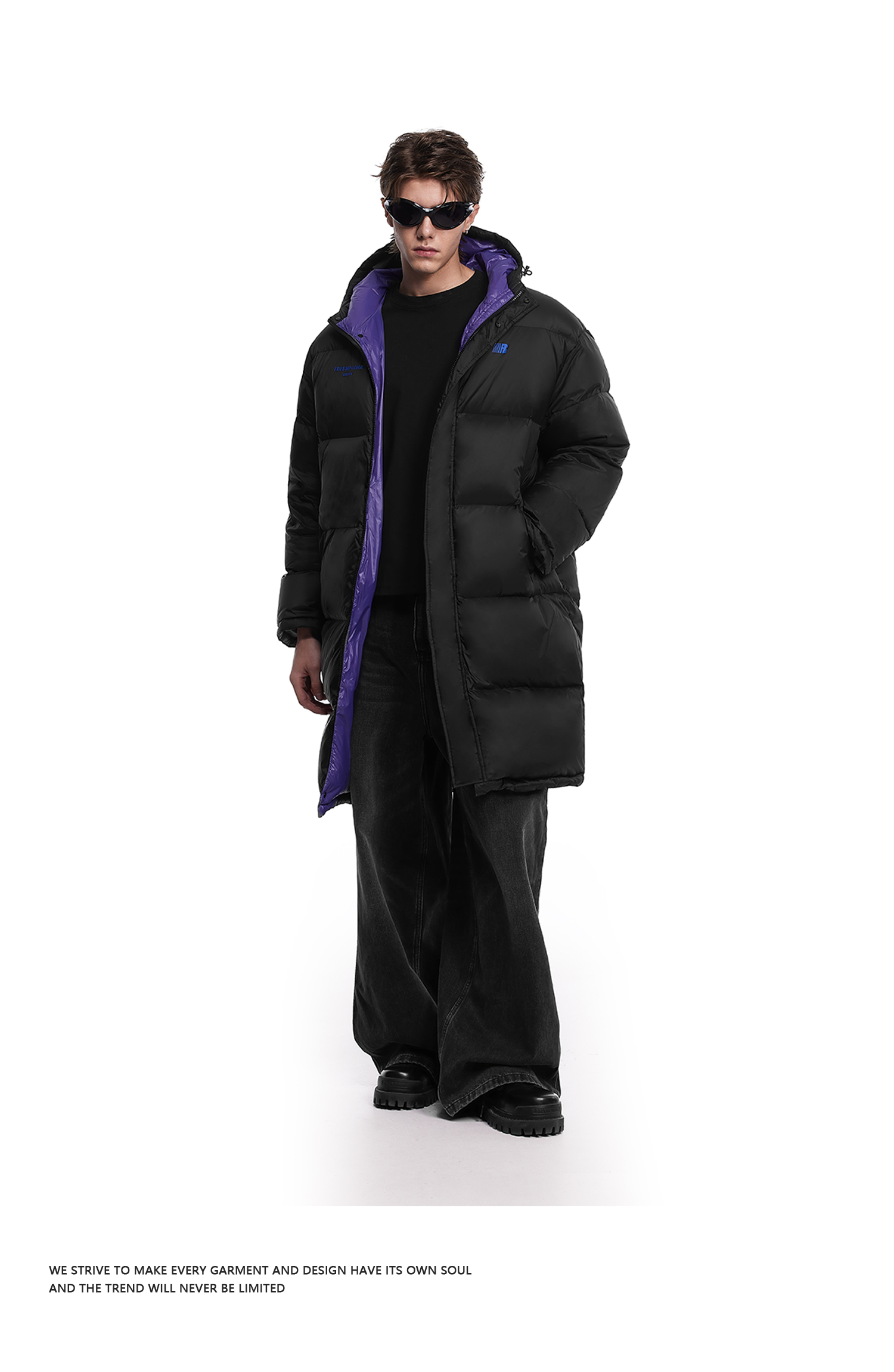 FDR官方店 R字撞色长款羽绒服男女冬季加厚连帽情侣装防寒服外套