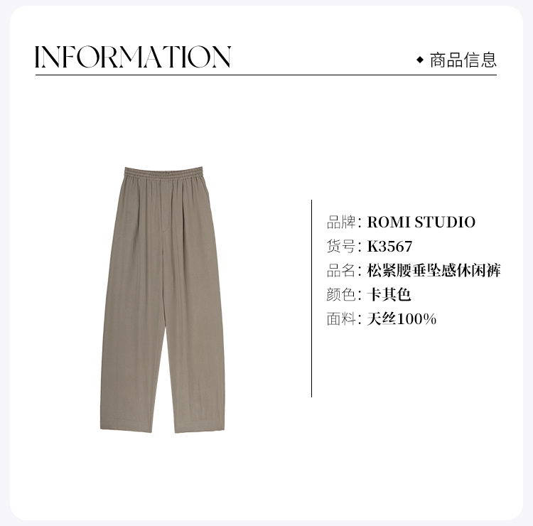 ROMI STUDIO“夏日旅行箱”系列100%天丝松紧腰垂坠感休闲裤K3567