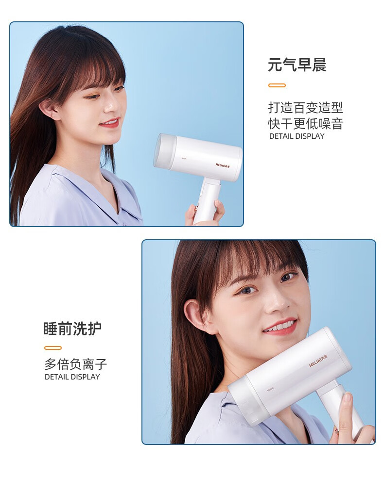美菱(MeLng) 吹风机护发 大功率大风力吹风筒 宿舍学生便携迷你小型 MI-C25A朱雀红 商用