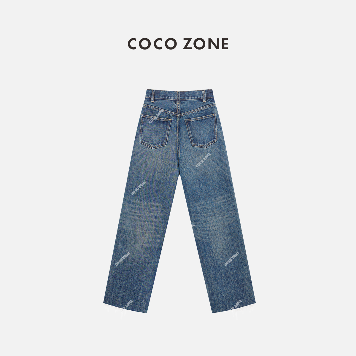 COCO ZONE美式复古爪纹牛仔修身百搭显瘦直筒裤24C10052