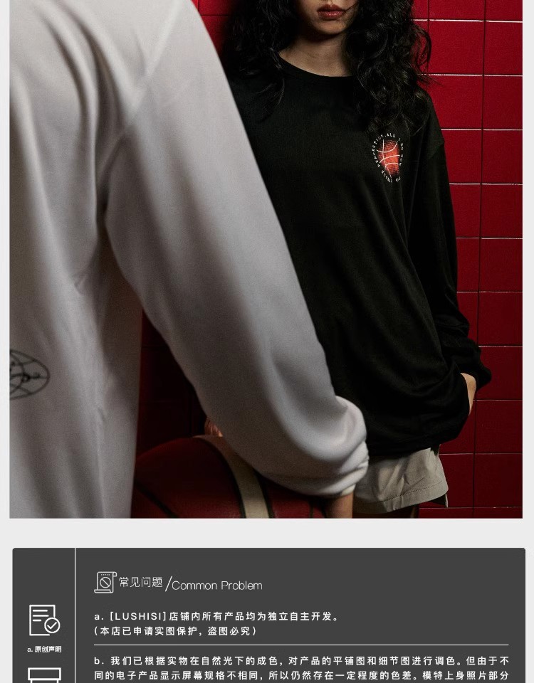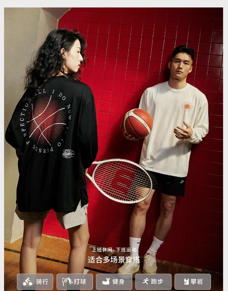 录士LUSHISI向阳而生主题休闲运动潮流圆领t恤投篮服美式长袖透气