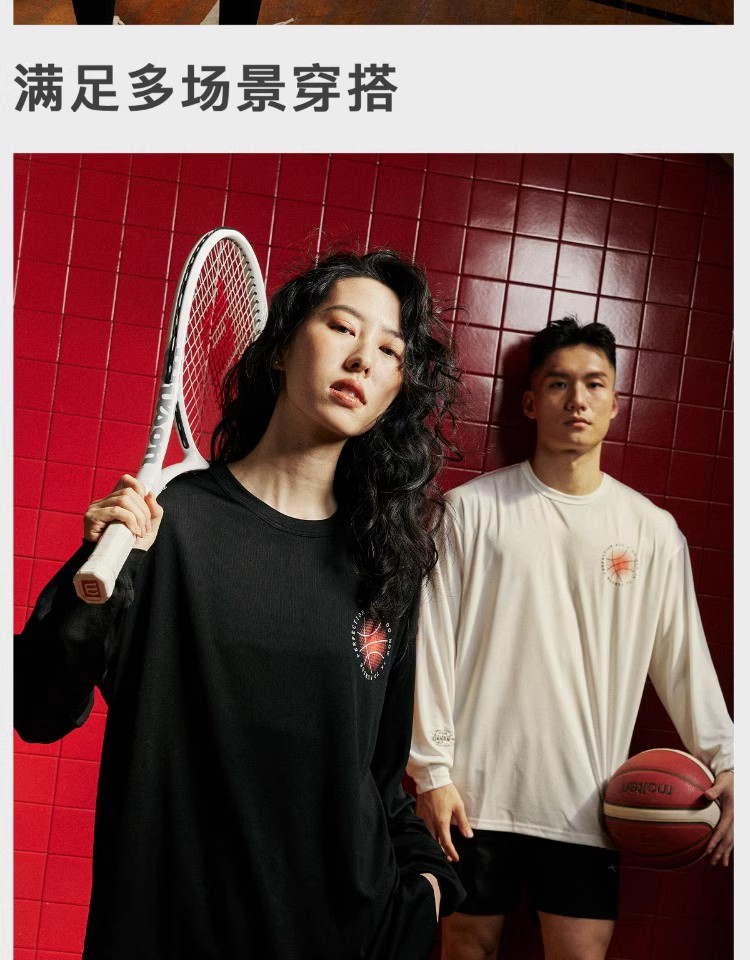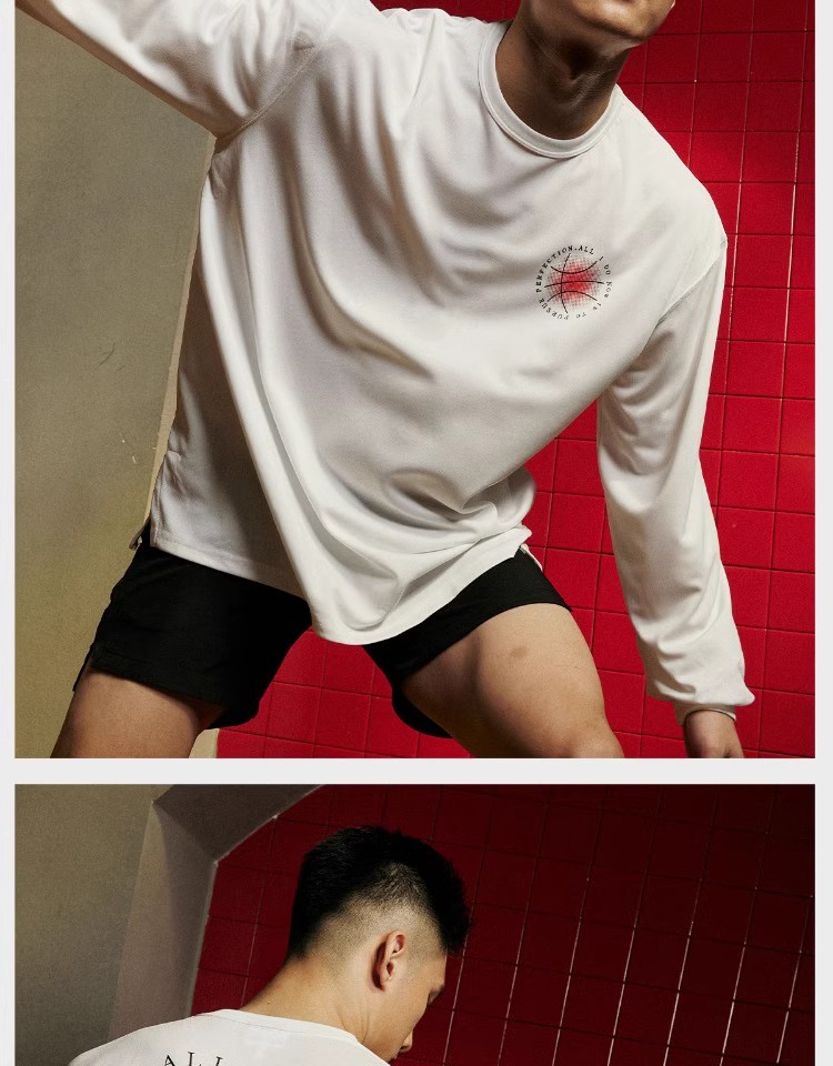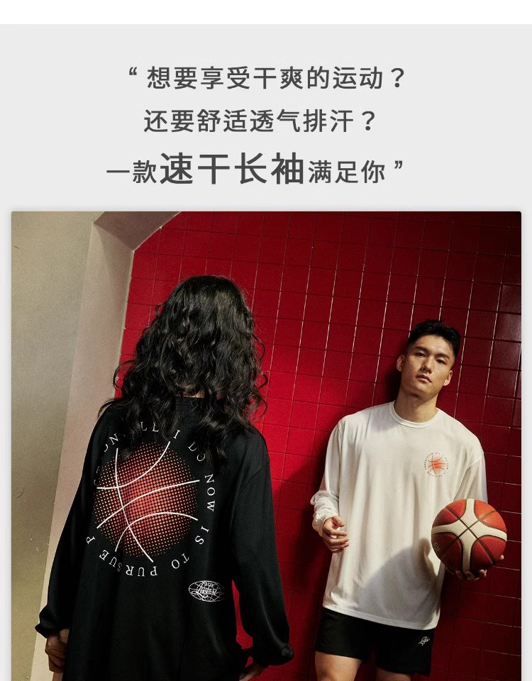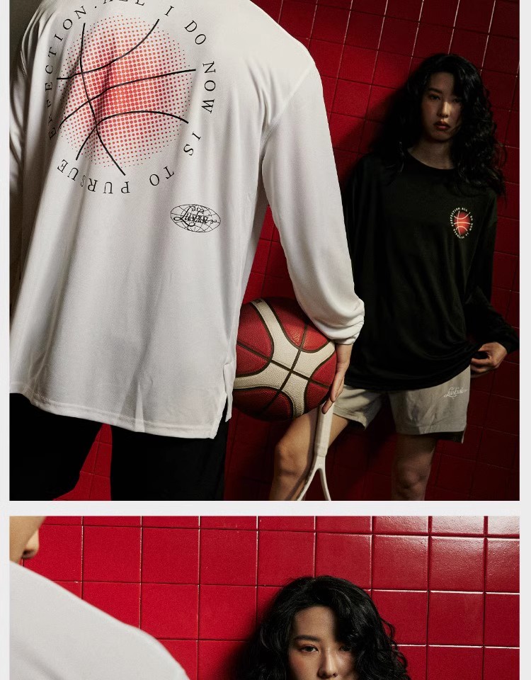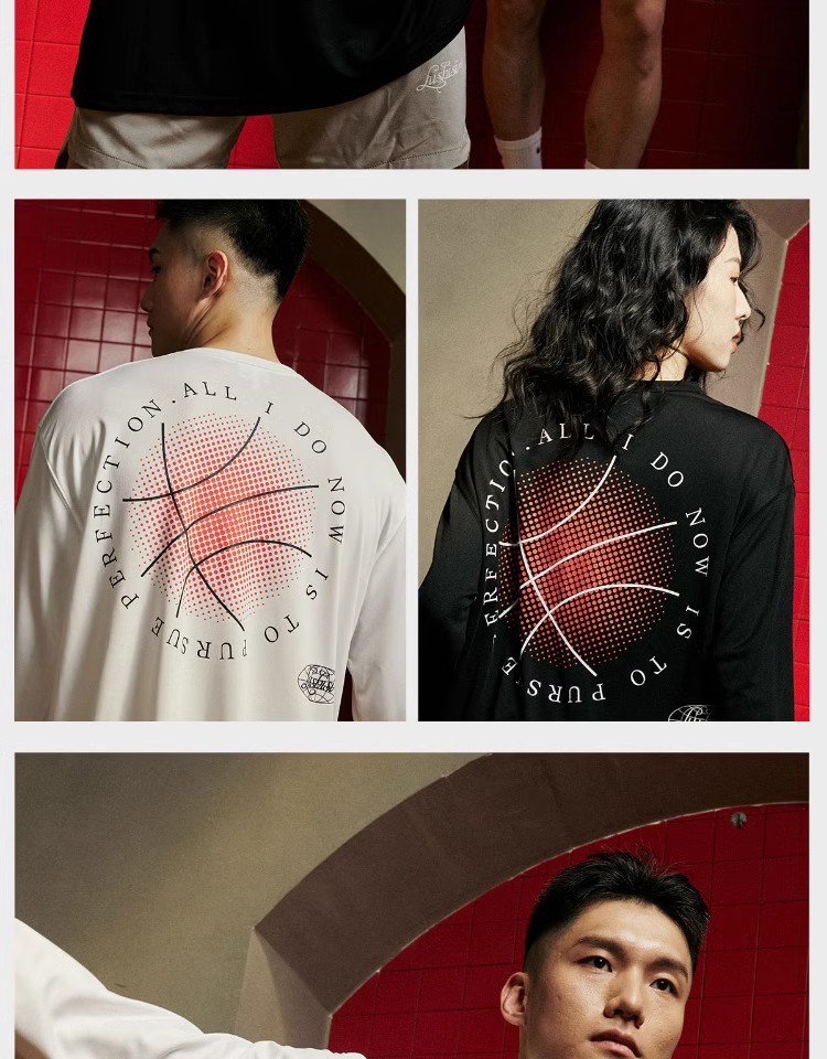 LUSHISI秋季[日落篮球]网眼速干运动长袖t恤男训练投篮服美式街头
