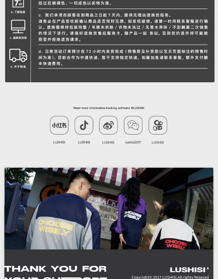 LUSHISI积分兑换自选短袖/短裤 自选码数!备注款式
