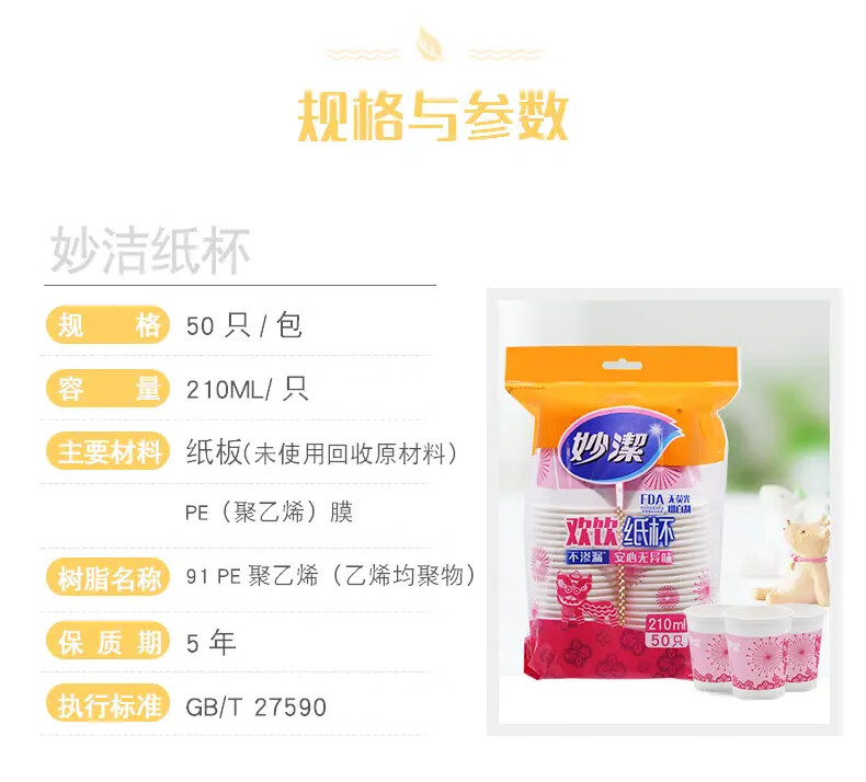 【小店自提】妙洁一次性纸杯7盎司50只装